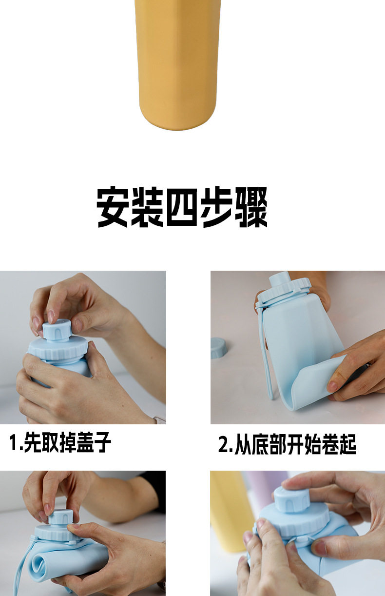 圓柱形折疊水壺大容量戶外旅行運動可攜式食品級折疊水杯