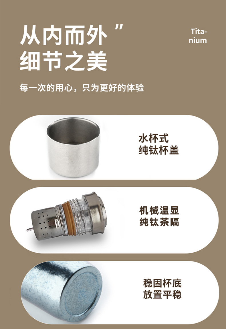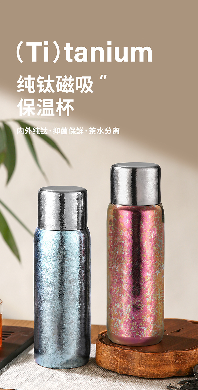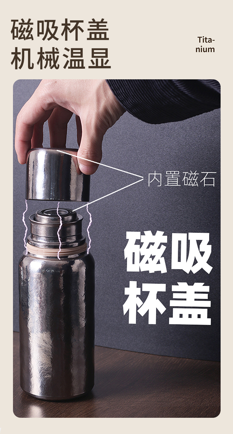 新款純鈦保溫杯燜泡茶杯雙層磁吸鈦杯純鈦杯子大容量機械溫顯內蓋