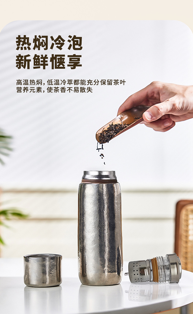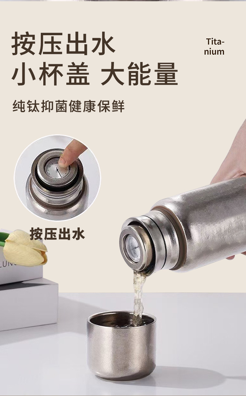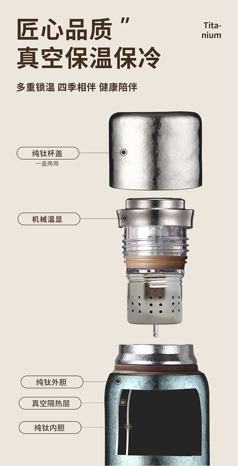 新款純鈦保溫杯燜泡茶杯雙層磁吸鈦杯純鈦杯子大容量機械溫顯內蓋