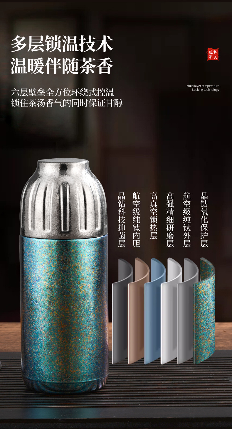 高級感純鈦保溫杯磁吸蓋高級茶水分離鈦杯燜茶可攜式泡茶杯商務水杯