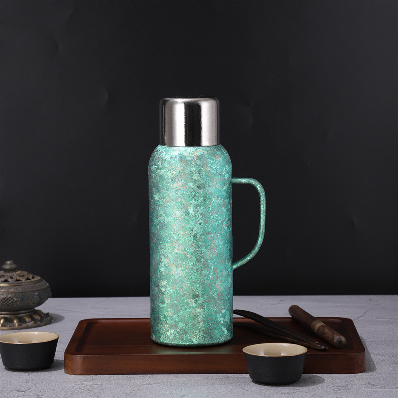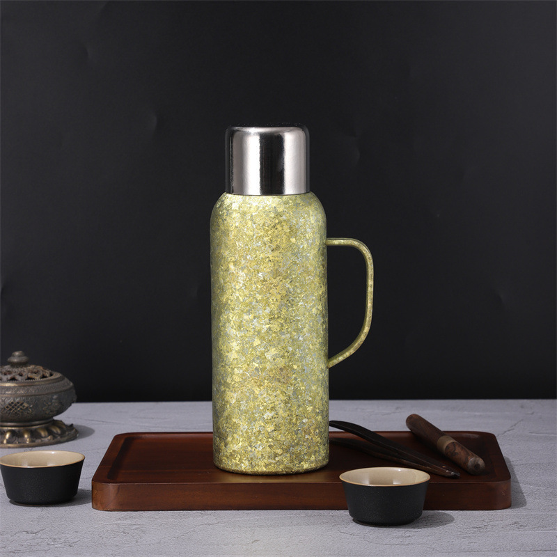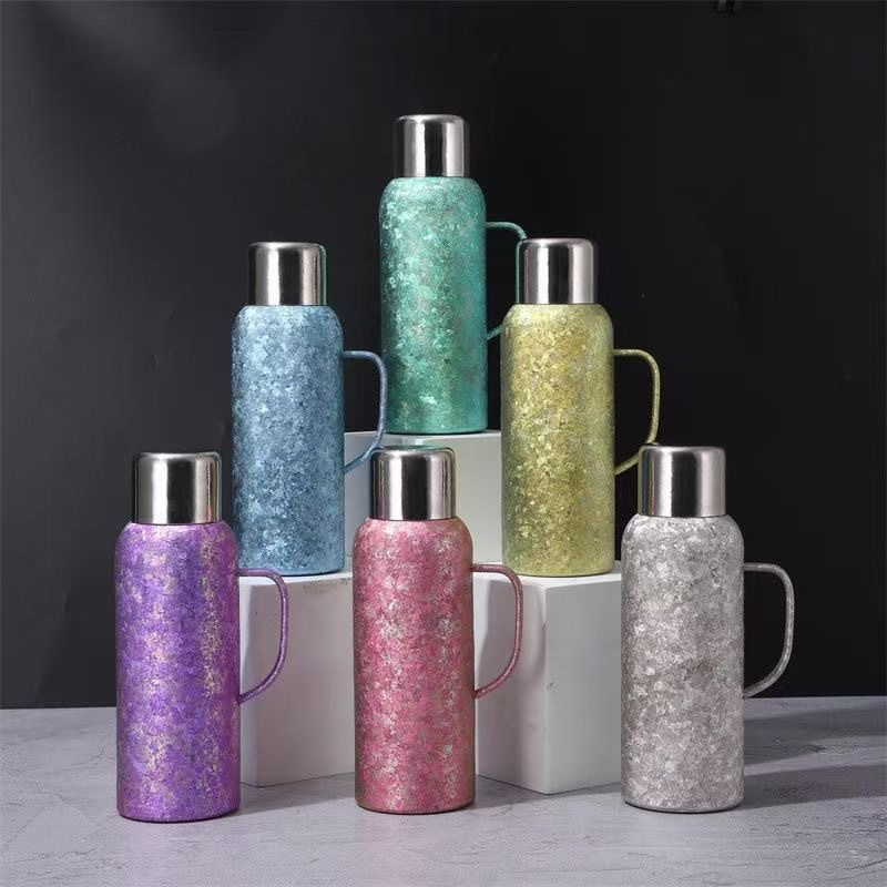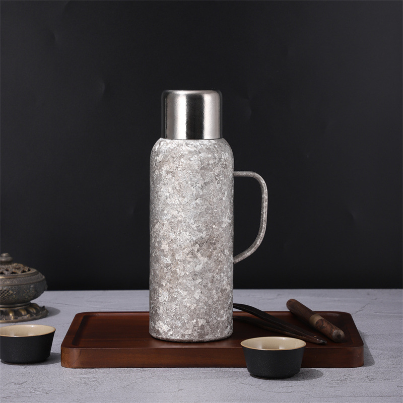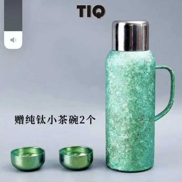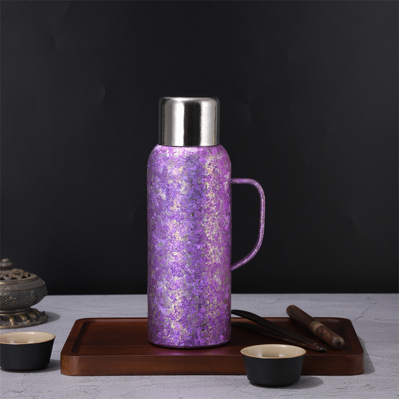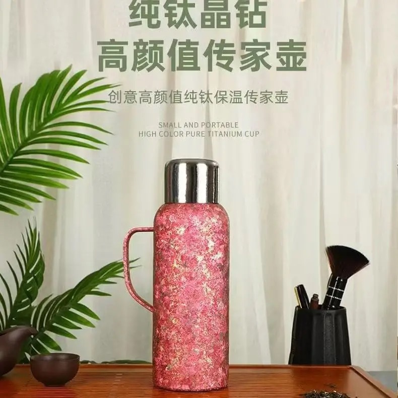 戶外運動大容量鈦杯雙層真空高顔值純鈦保溫杯帶手柄禮品水壺