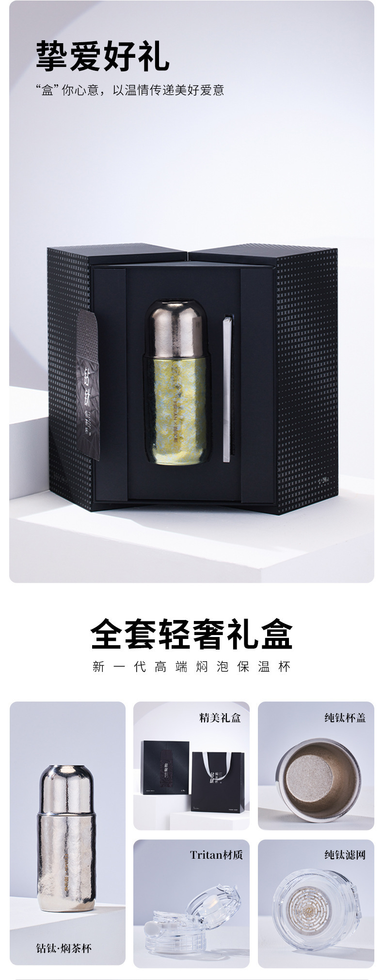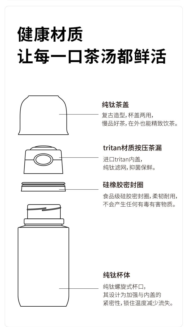 茗元素純鈦保溫杯雙層鈦燜茶杯可攜式彈跳蓋燜泡養生杯鈦晶喝水高檔