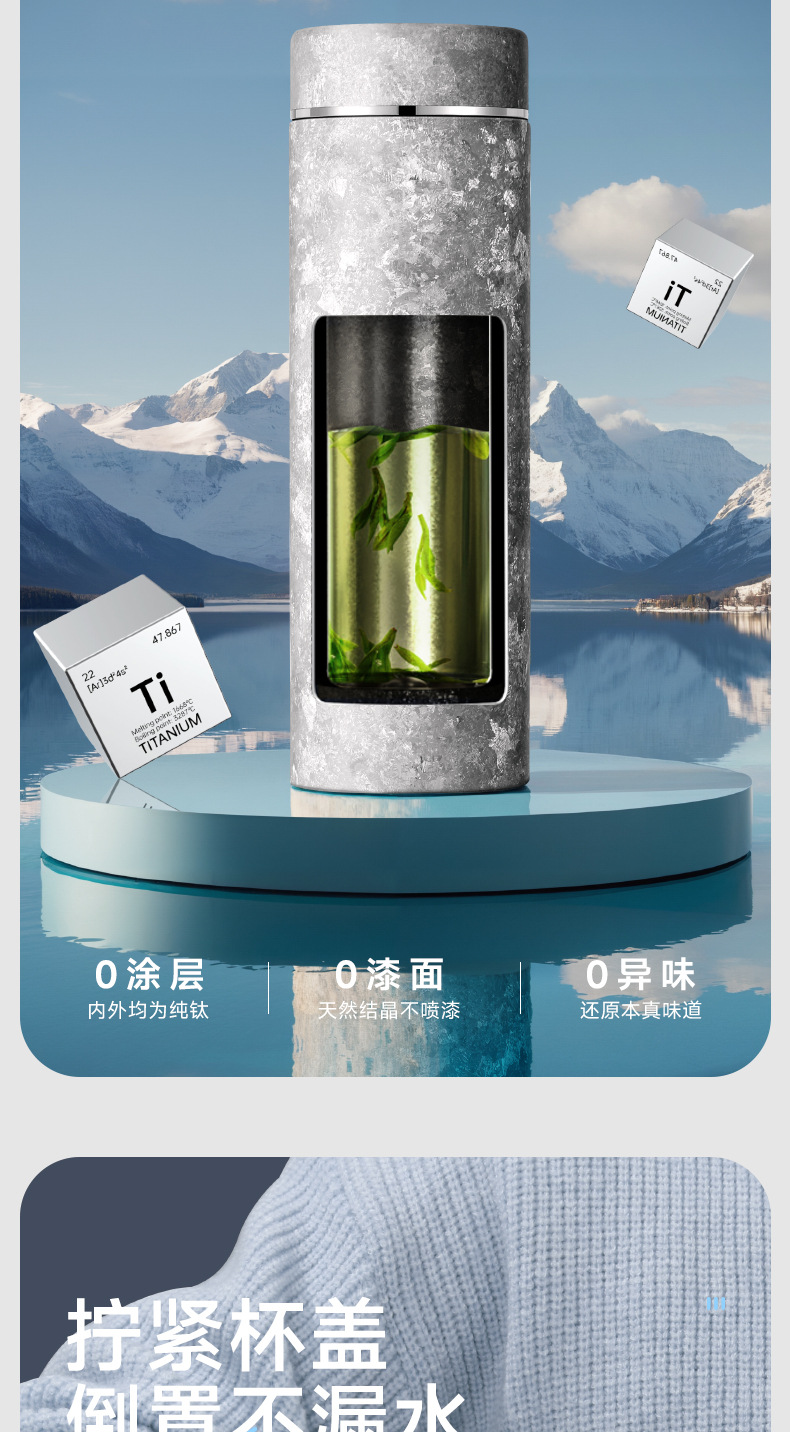 純鈦保溫杯雙層鈦杯高顔值直身杯燜泡茶杯戶外可攜式水杯禮品杯