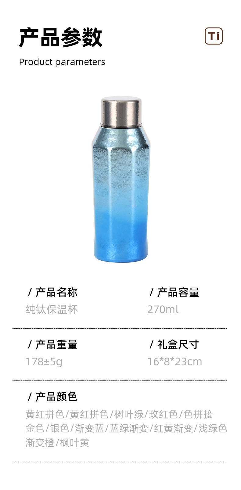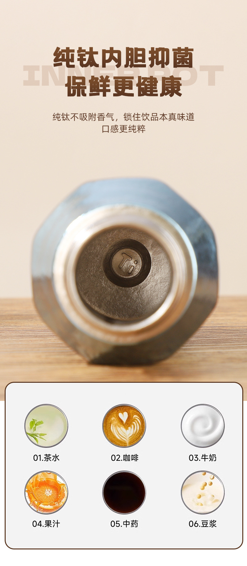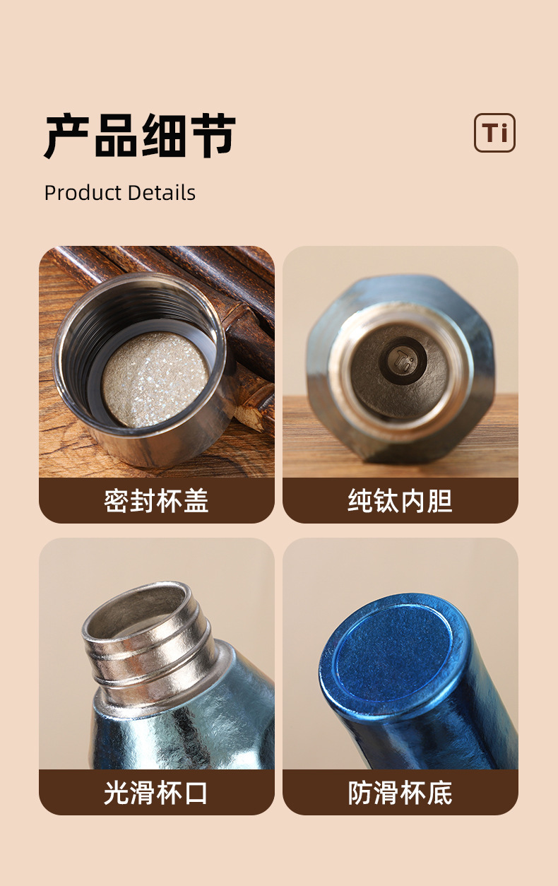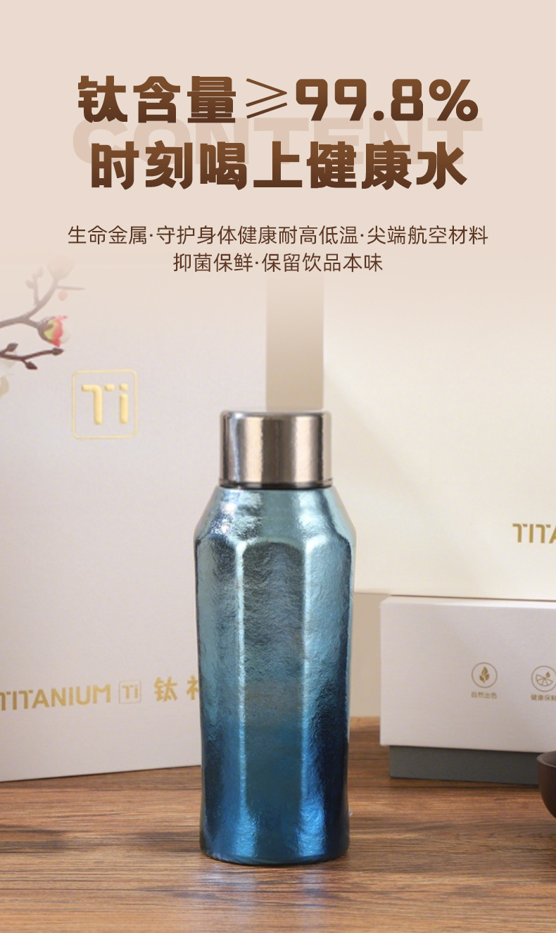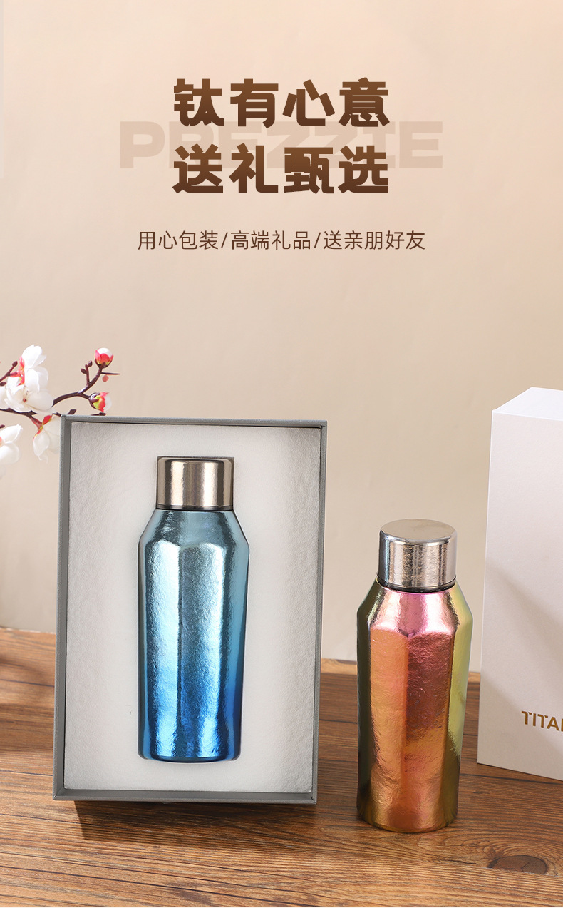 新款純鈦保溫杯可攜式八角杯高顔值鈦杯商務辦公禮品鈦杯禮品杯
