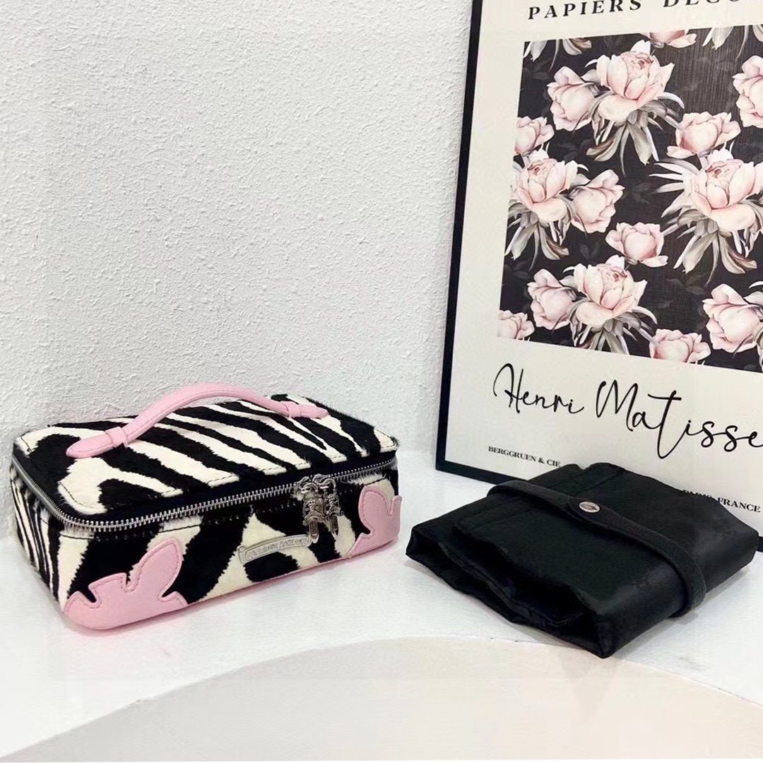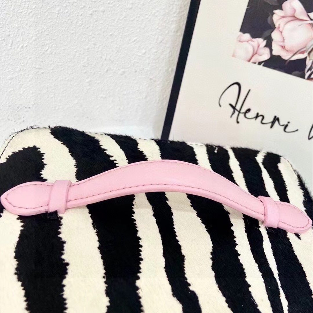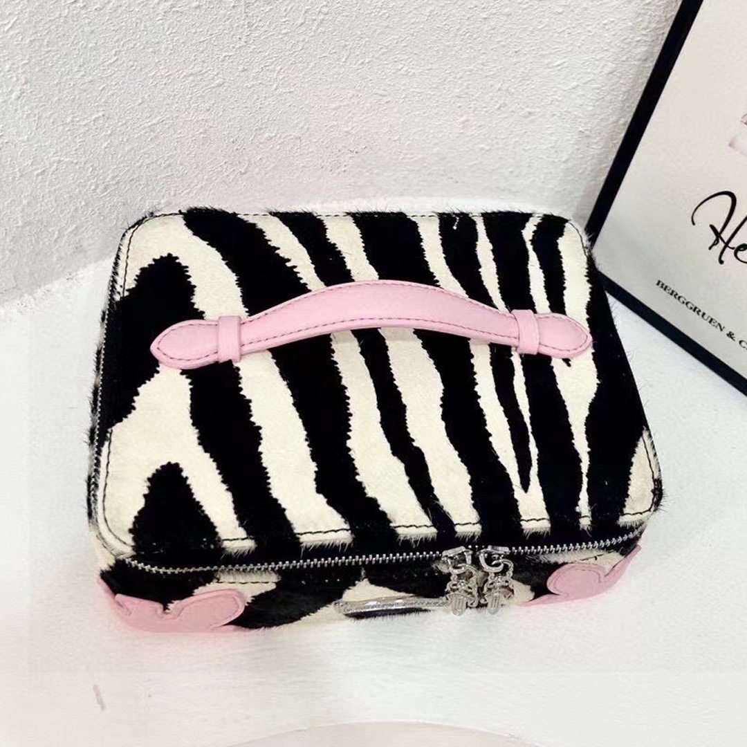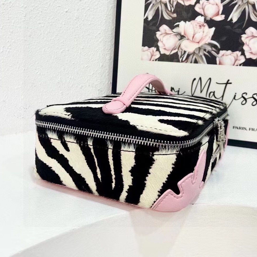 高級感網紅同款斑馬紋真皮馬毛洗漱化妝包大容量可攜式手提首飾包