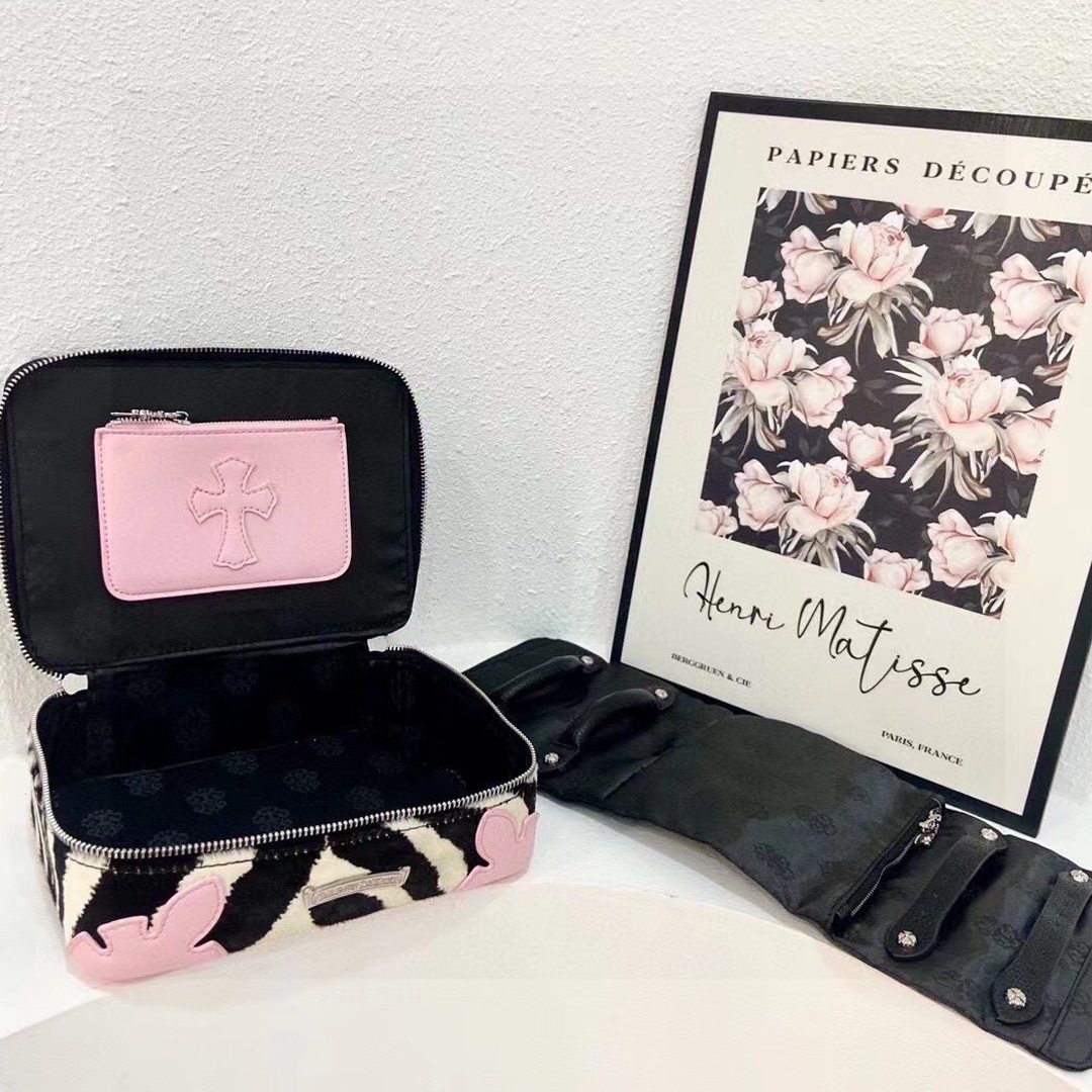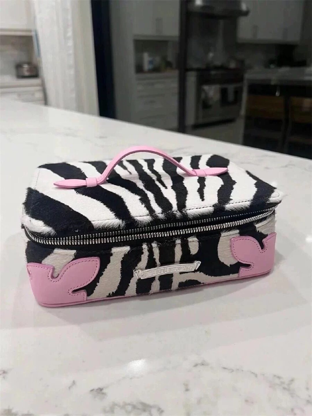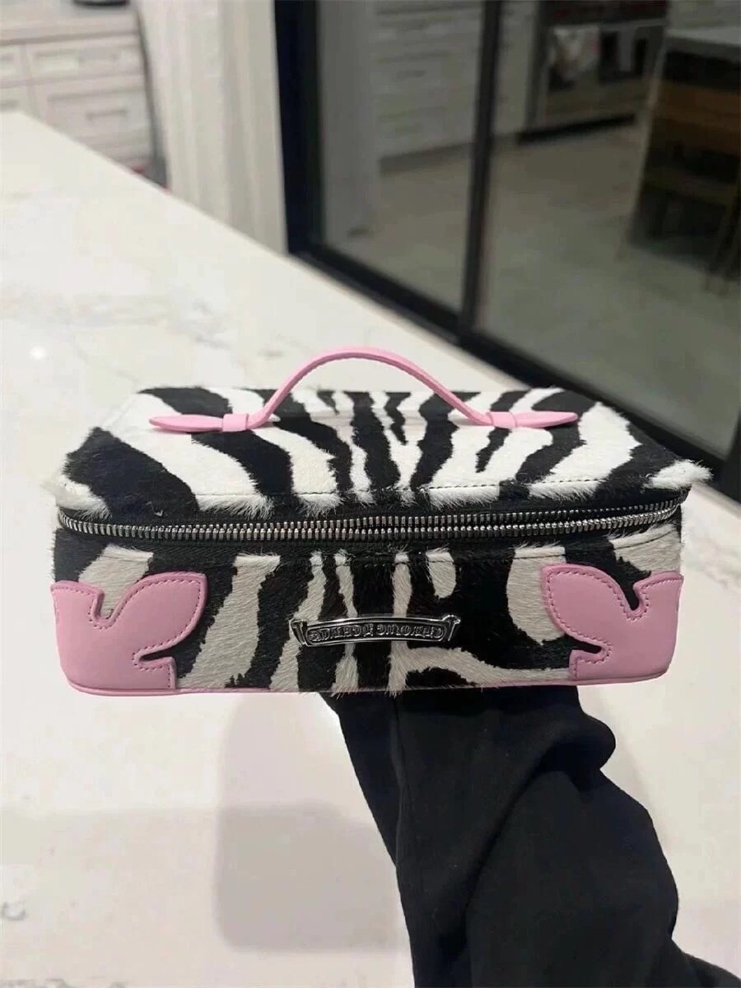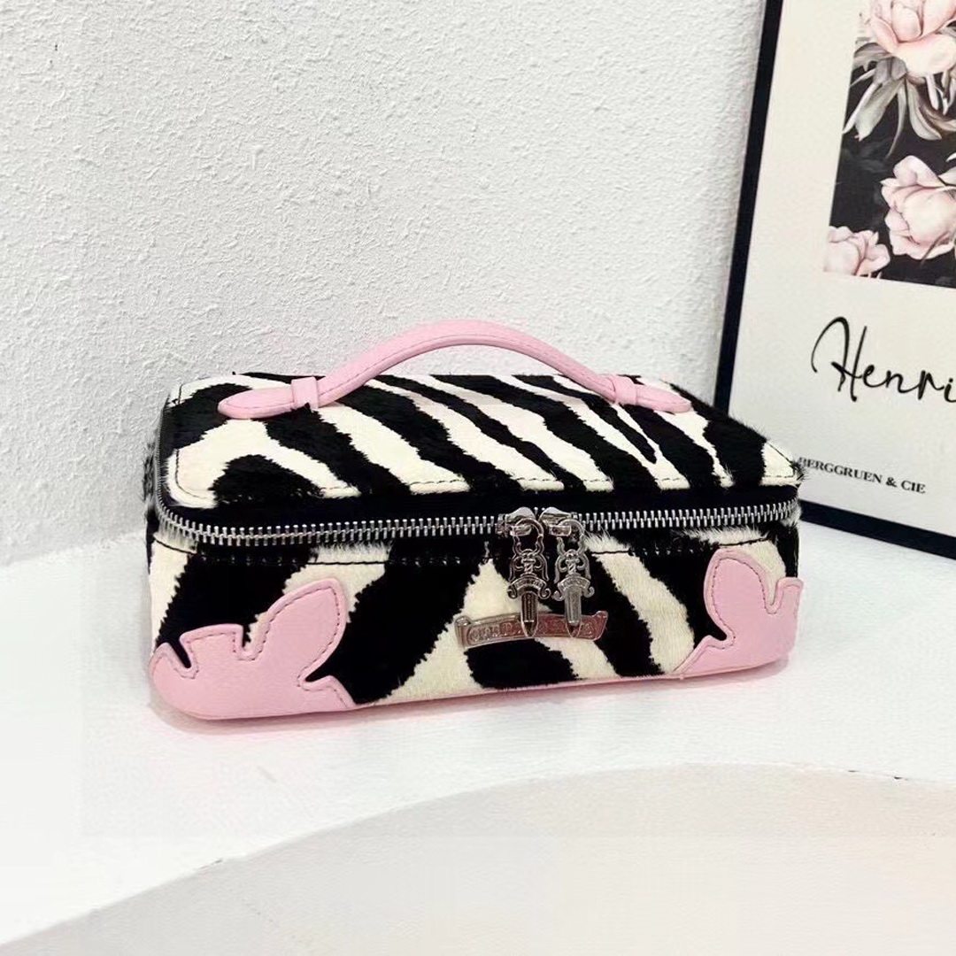 高級感網紅同款斑馬紋真皮馬毛洗漱化妝包大容量可攜式手提首飾包