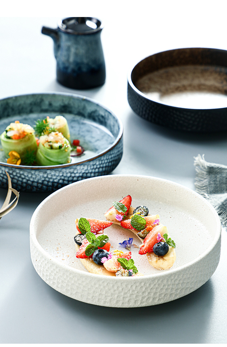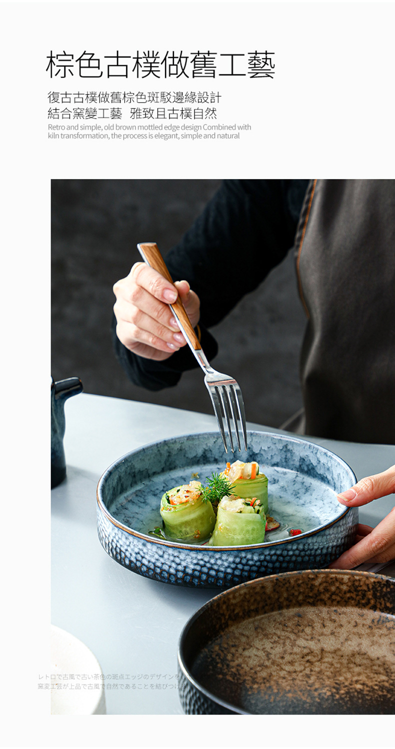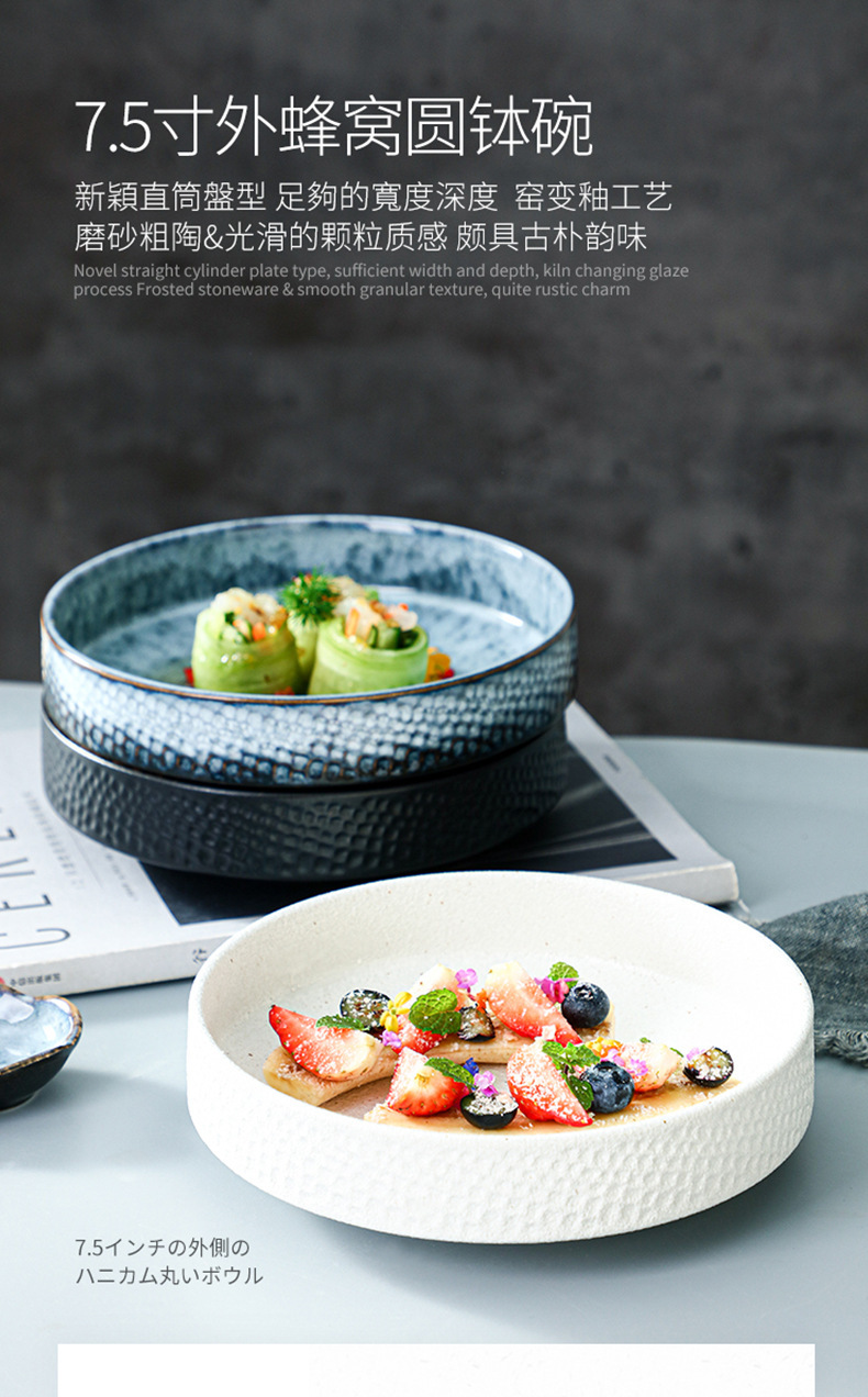 復古陶瓷餐具家用高顔值泡麵碗7.5寸外蜂窩圓鉢碗盤加厚防燙湯碗