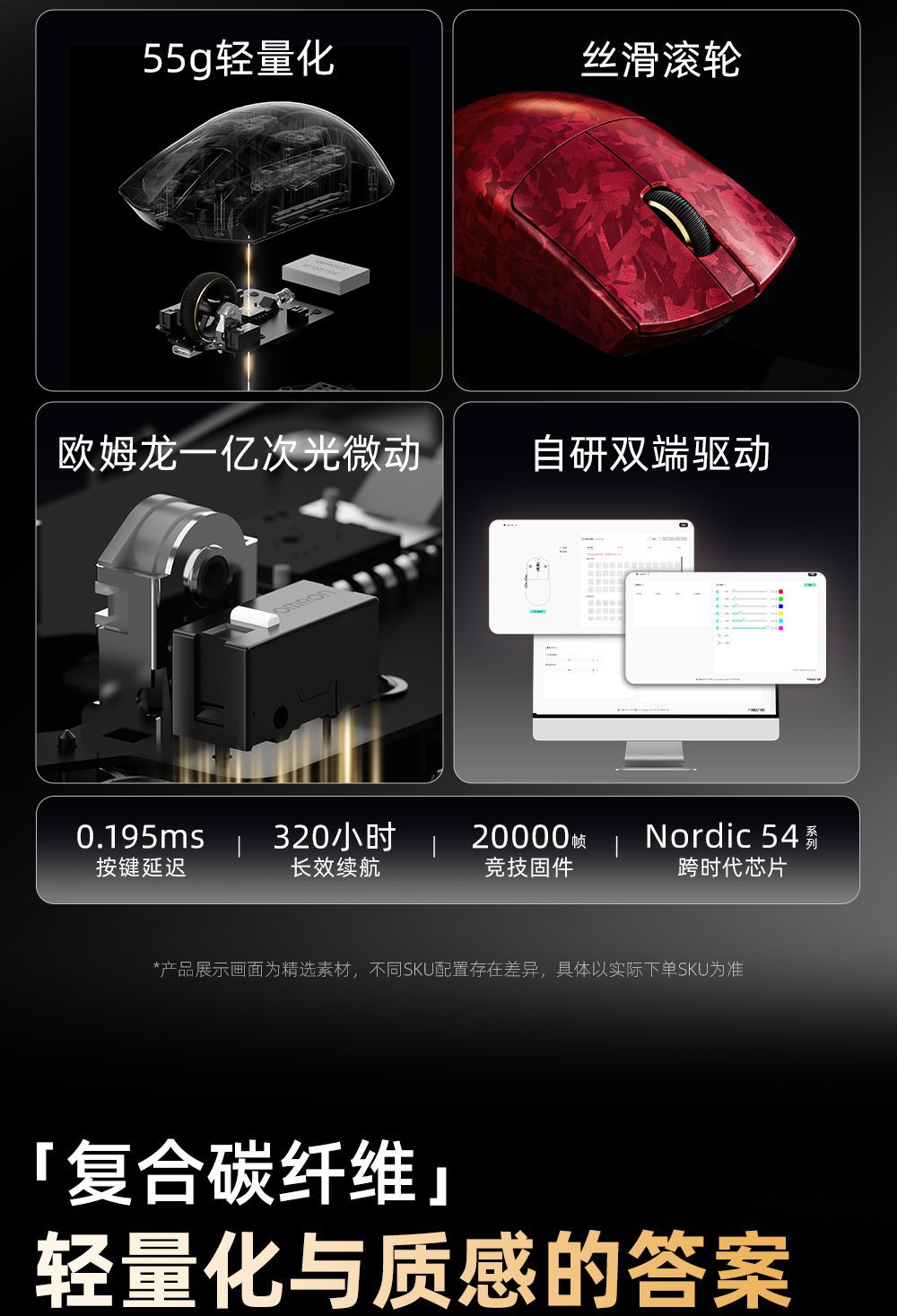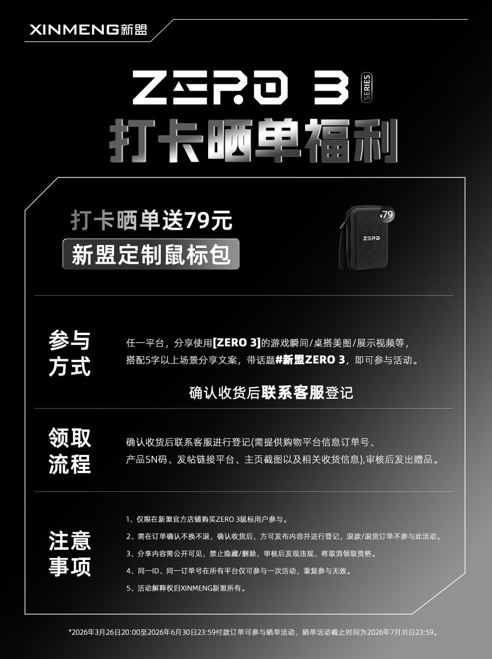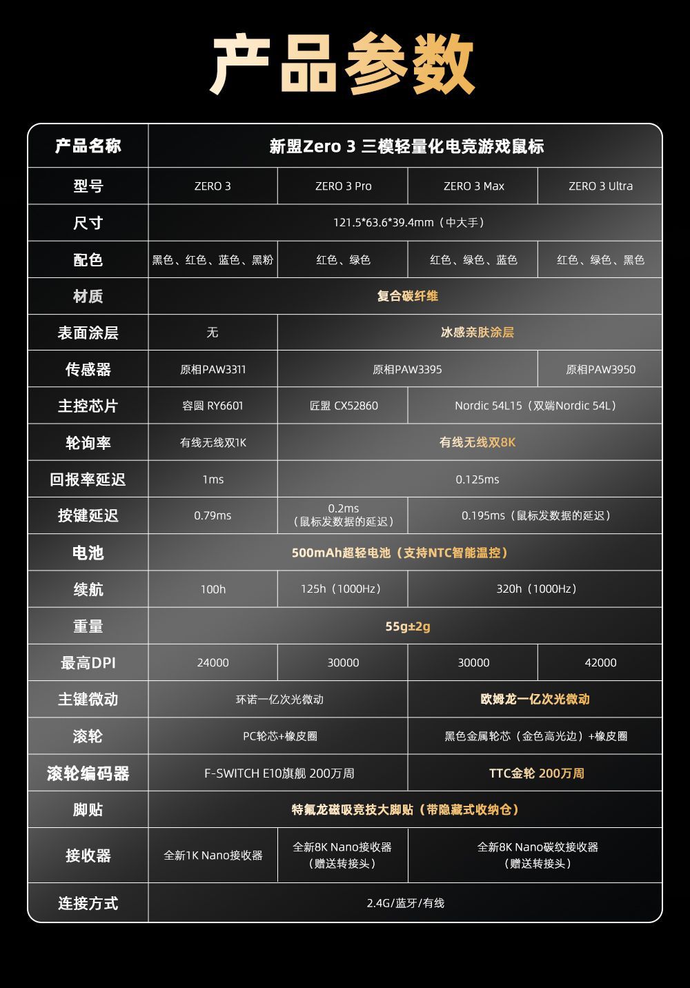 新盟ZERO3複合碳纖維輕量化電競滑鼠三模無線藍牙遊戯桌上型電腦FPS