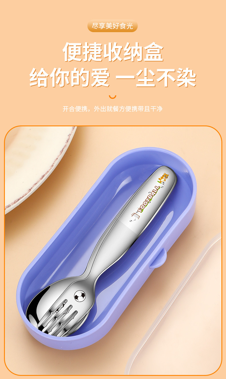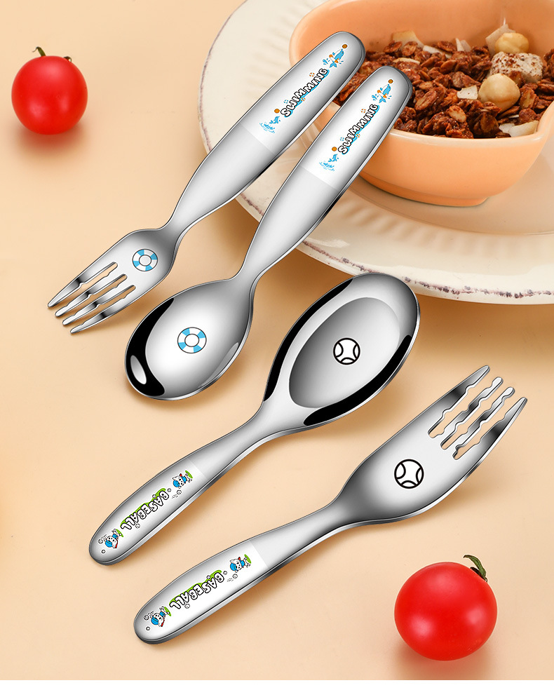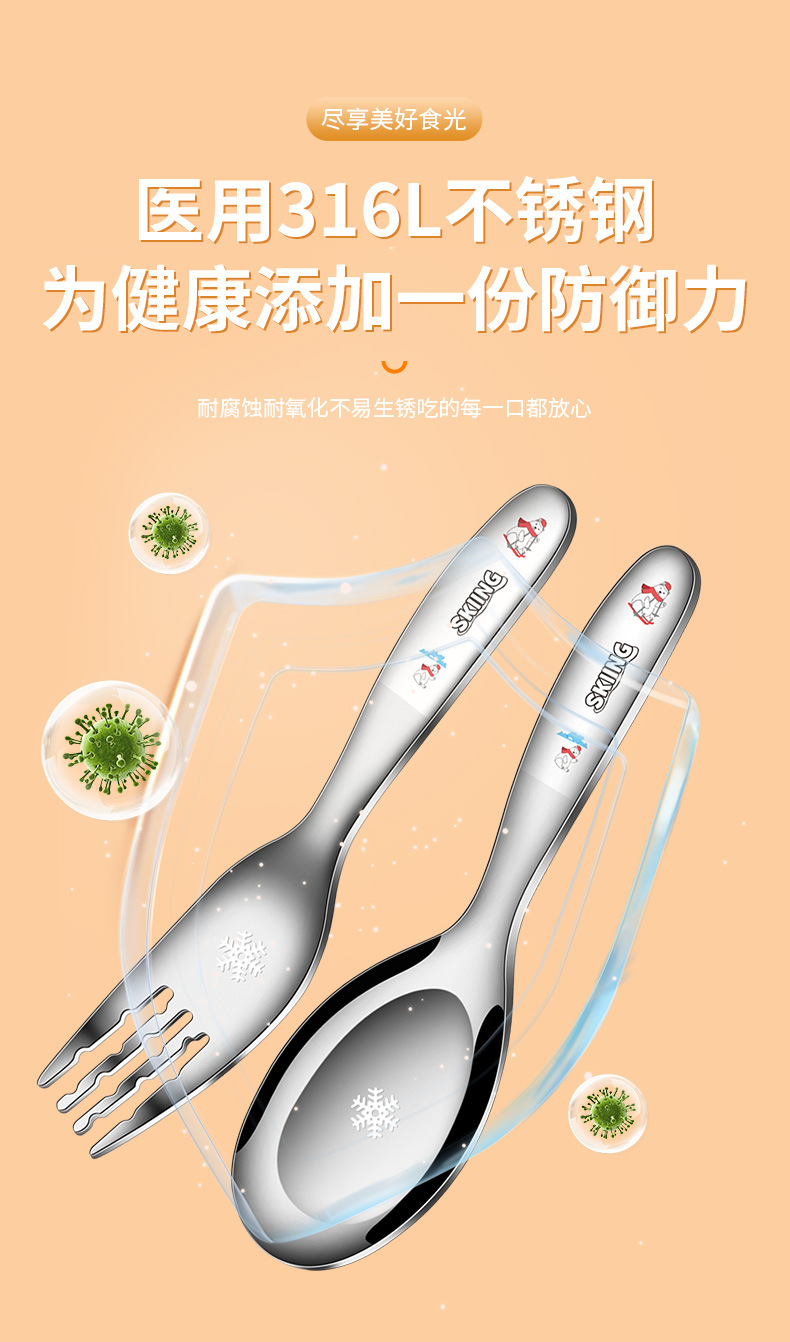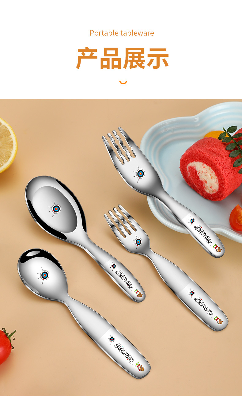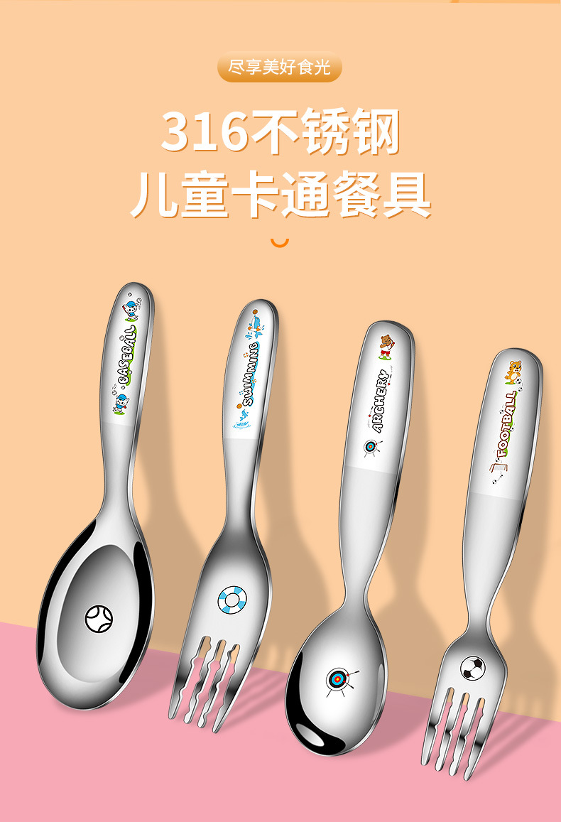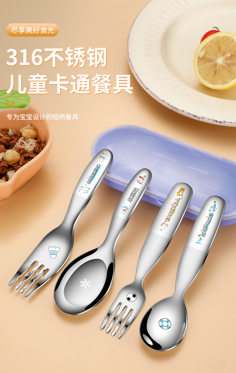 316不鏽鋼兒童叉勺 可攜式寶寶喫飯喂養卡通輔食喫飯喝湯勺叉套裝