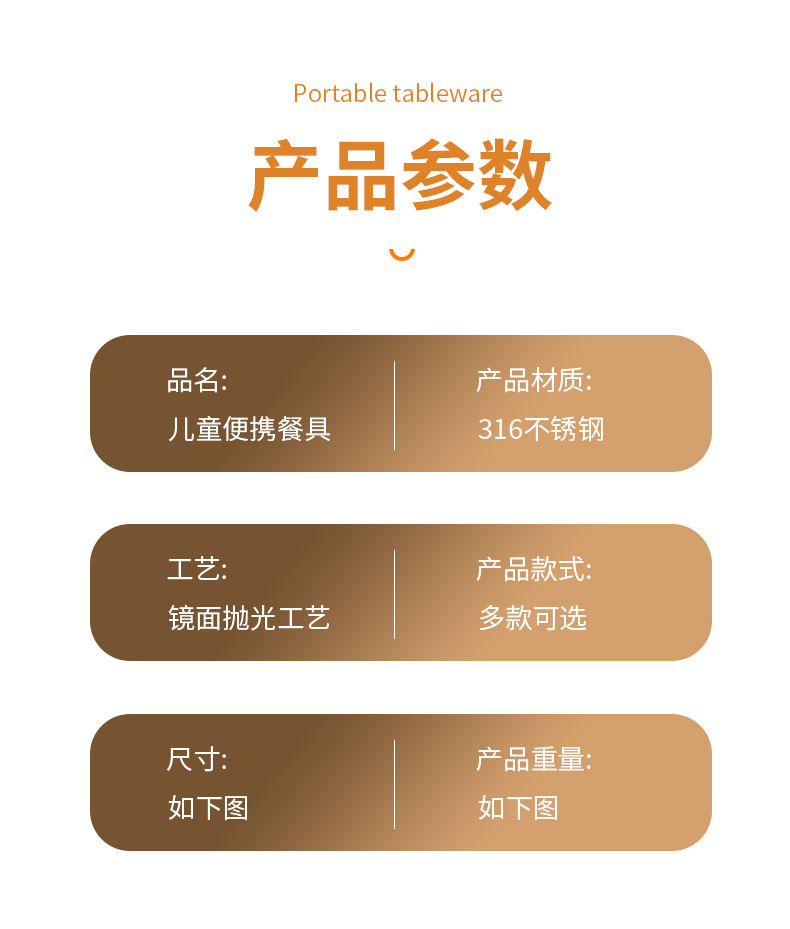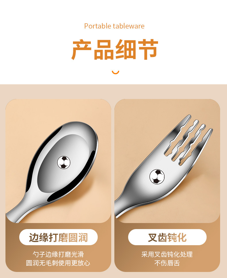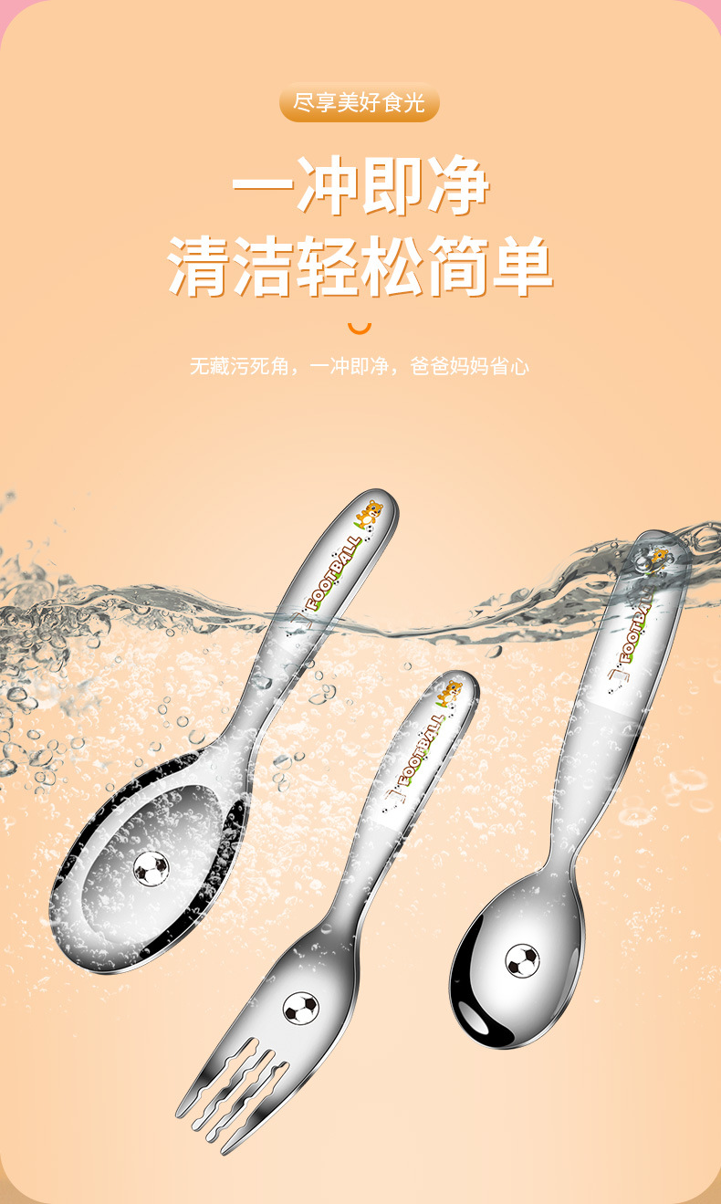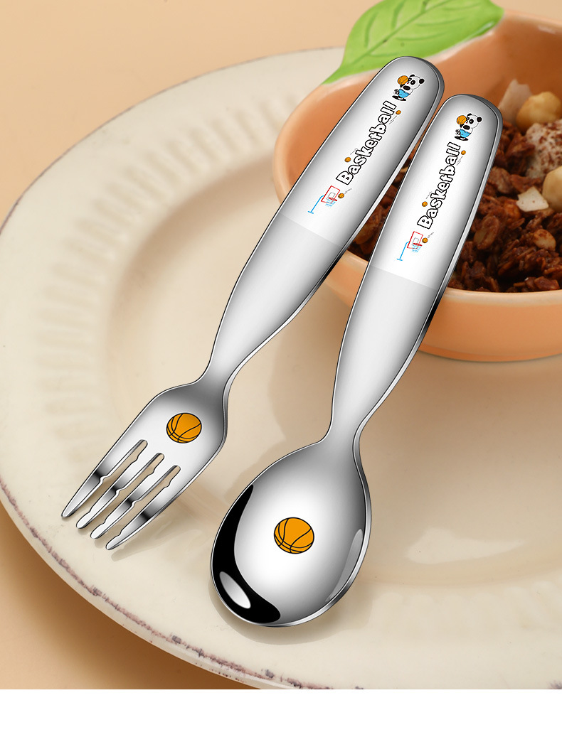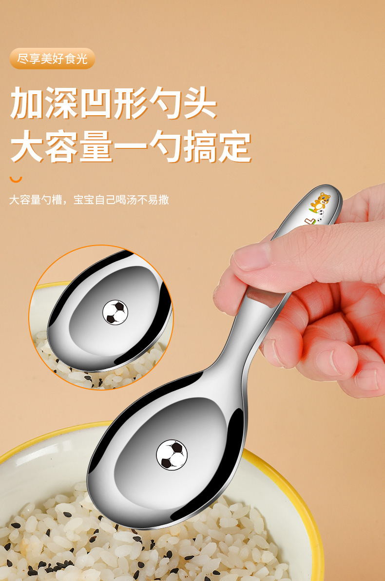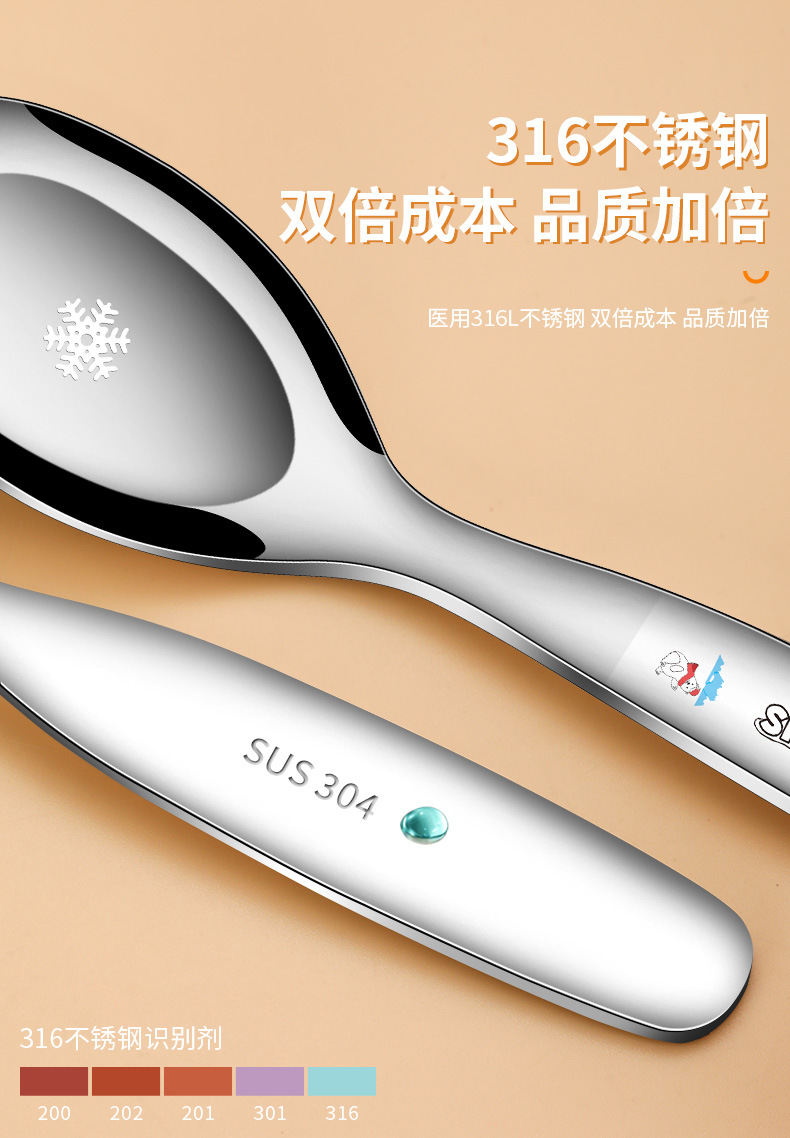 316不鏽鋼兒童叉勺 可攜式寶寶喫飯喂養卡通輔食喫飯喝湯勺叉套裝