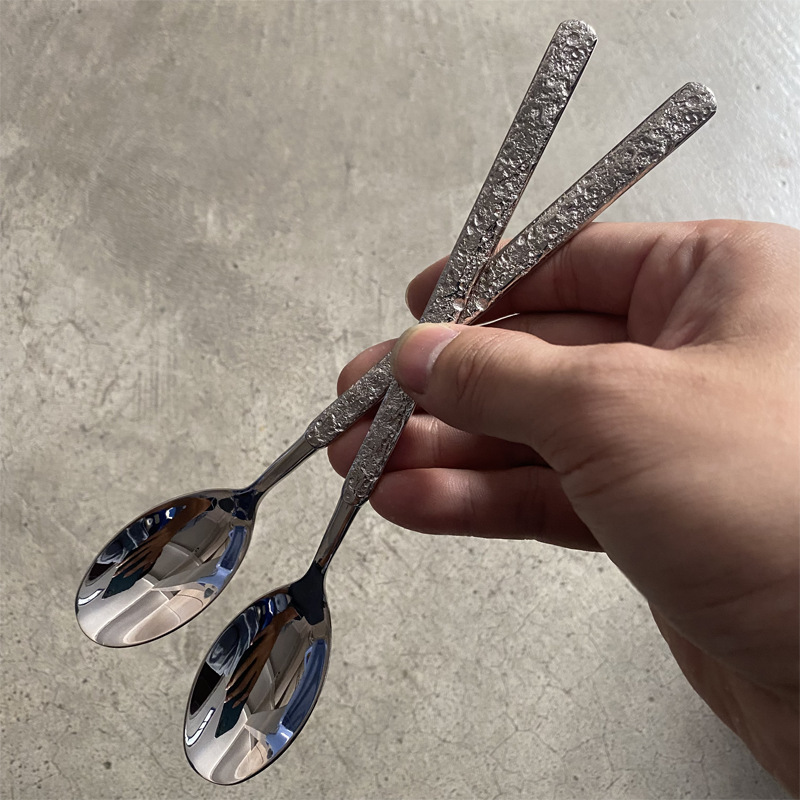 304不鏽鋼刀叉勺網紅復古巖石紋ins餐具酒店餐廳創意浮雕西餐套裝