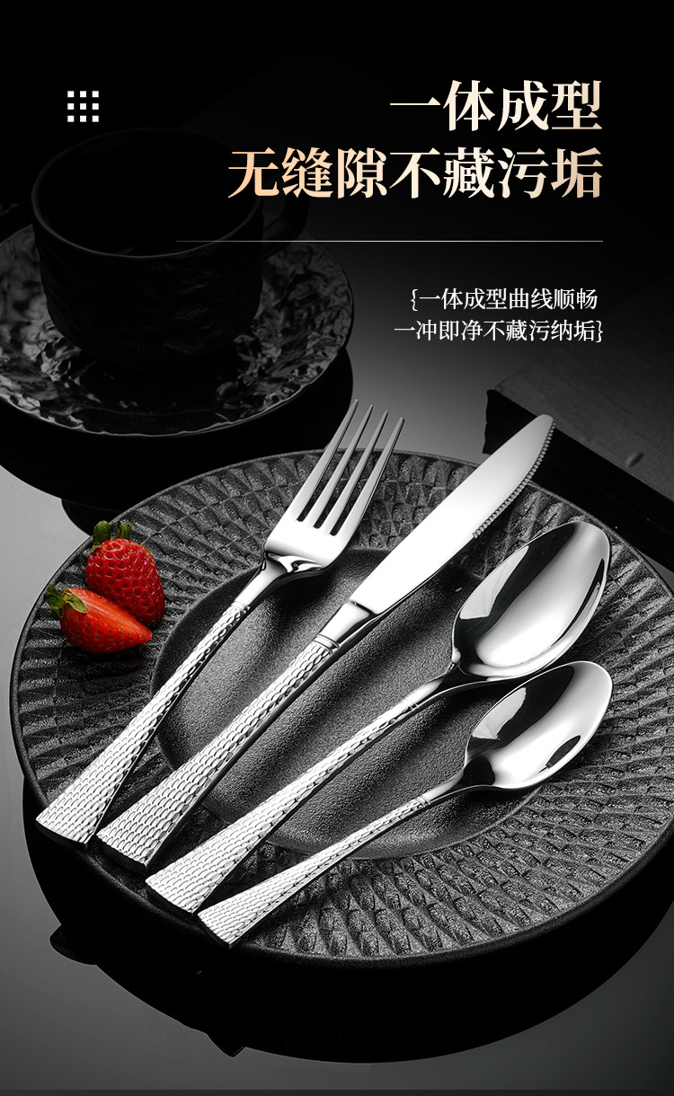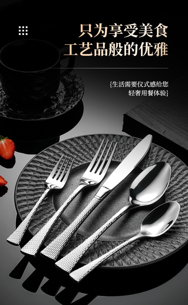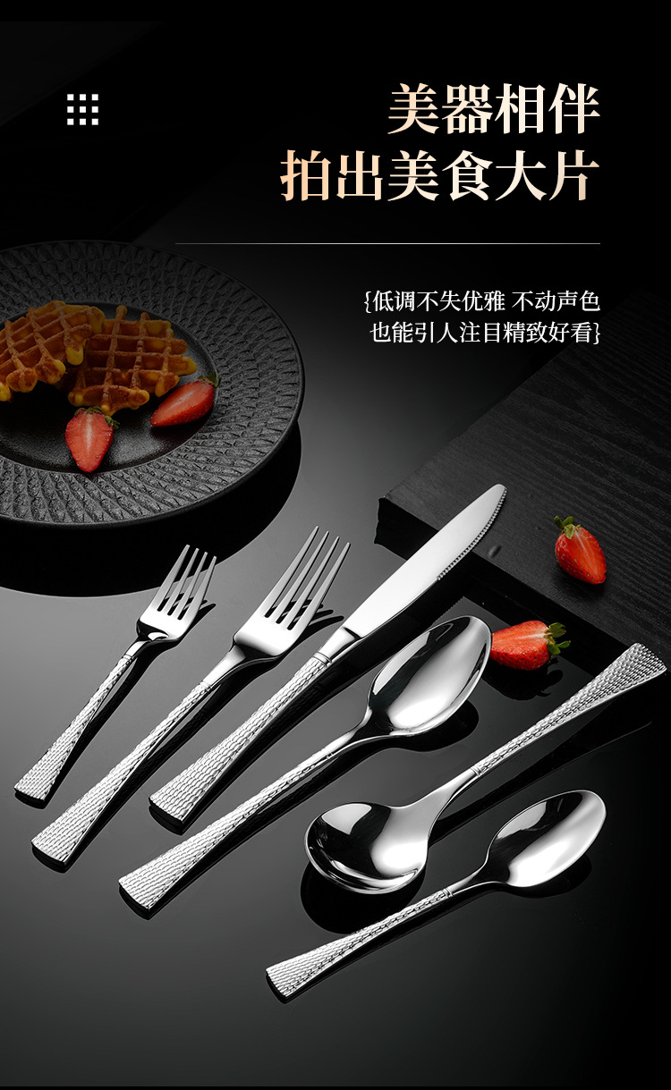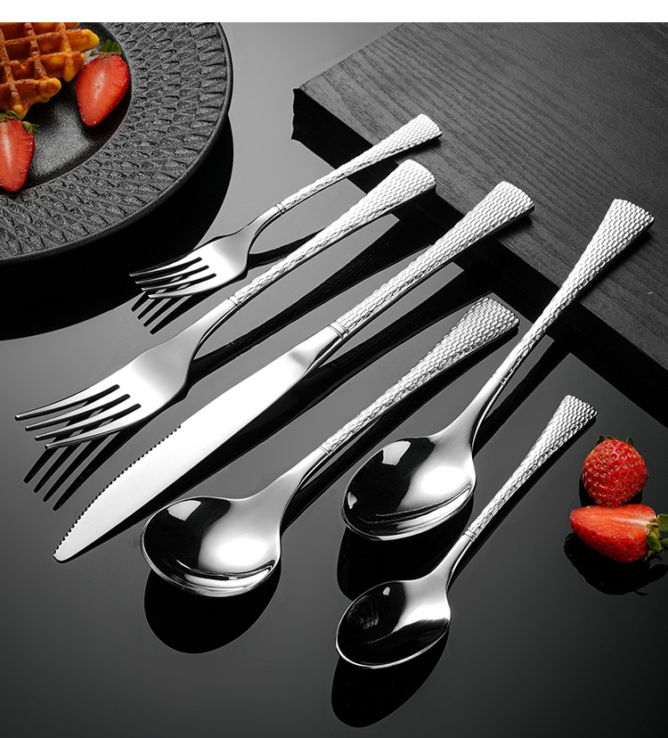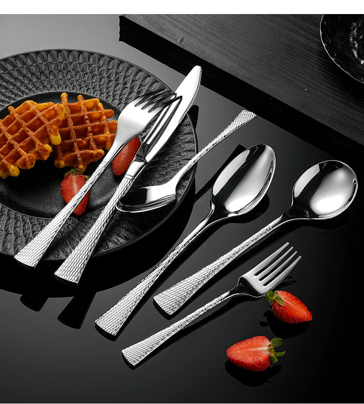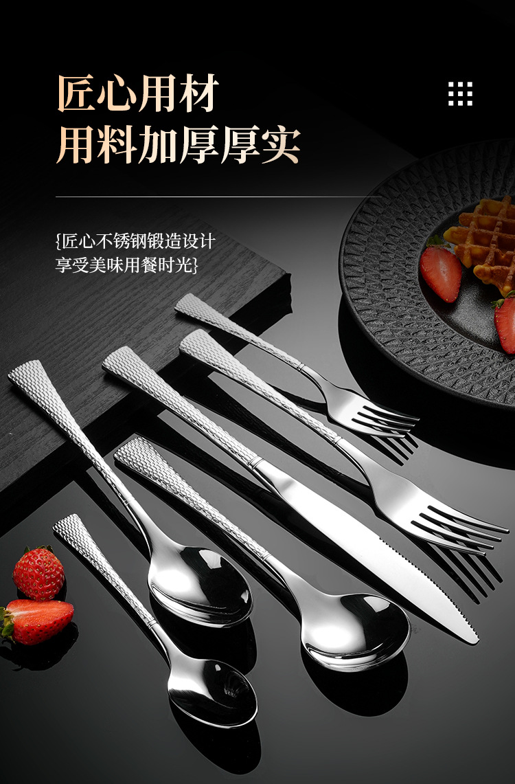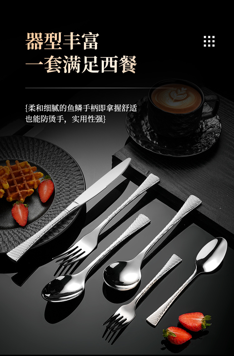 304不鏽鋼刀叉勺 創意雙面魚尾鎚紋歐式西餐餐具酒店家用套裝