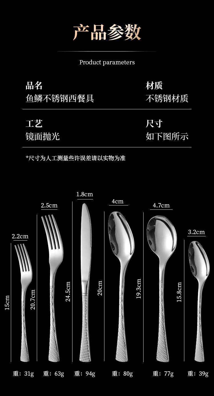 | 貨號 | 13-A54 雙面魚尾紋餐具(304#) |
