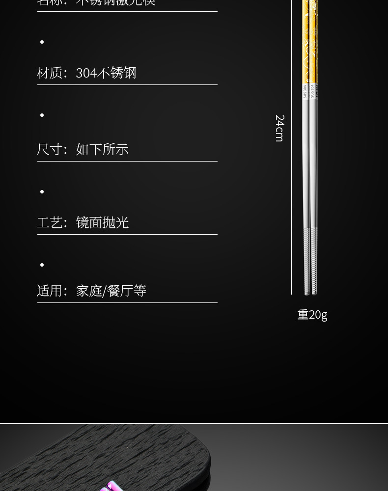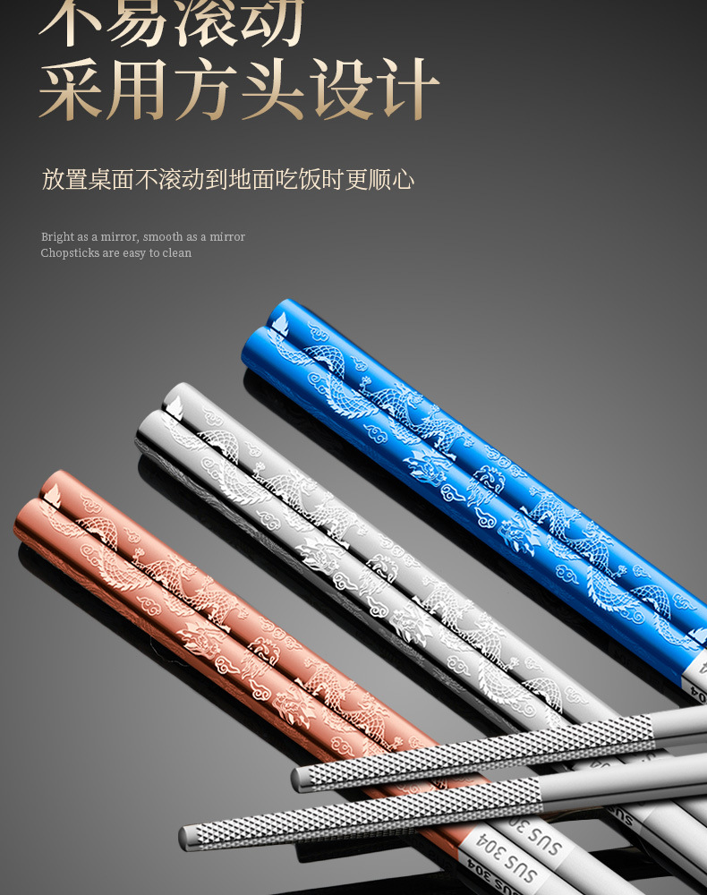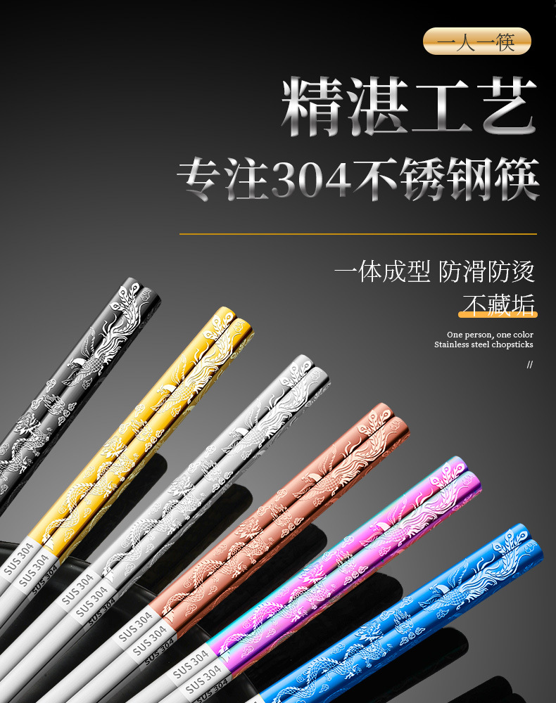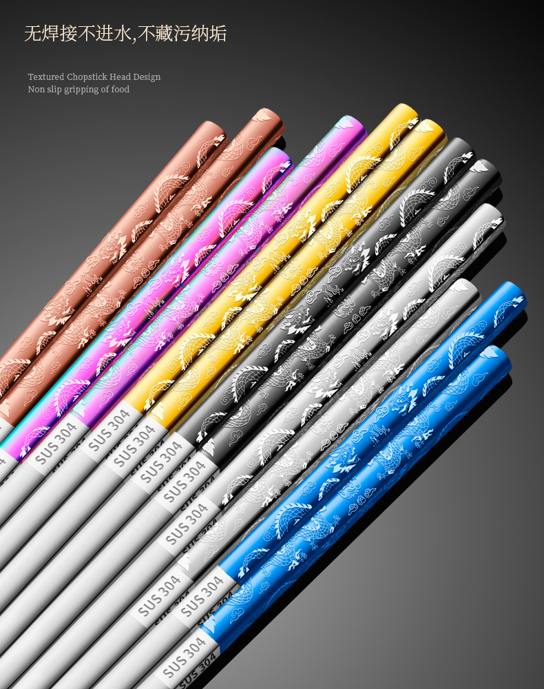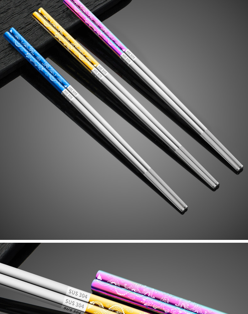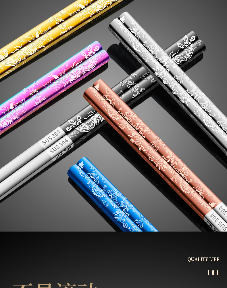| 貨號 | 304不鏽鋼筷子(雙龍戯珠 龍鳳呈祥款) |
