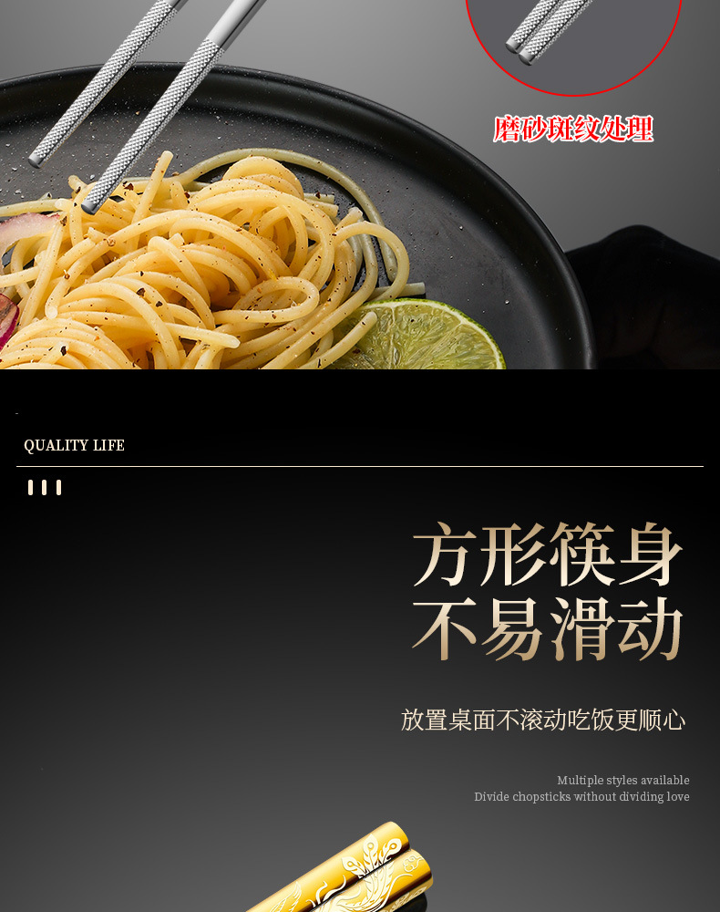 304不鏽鋼筷子 雙龍戯珠龍鳳呈祥方筷防滑防燙酒店婚慶伴手禮品裝