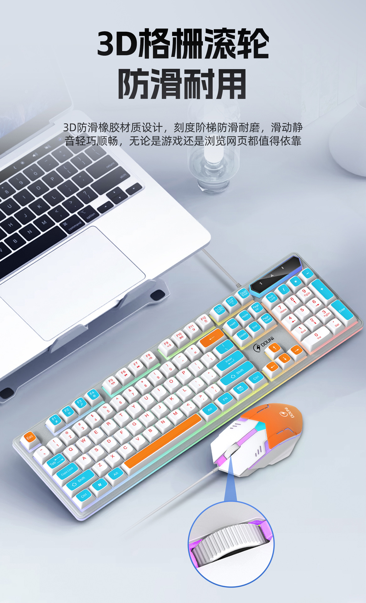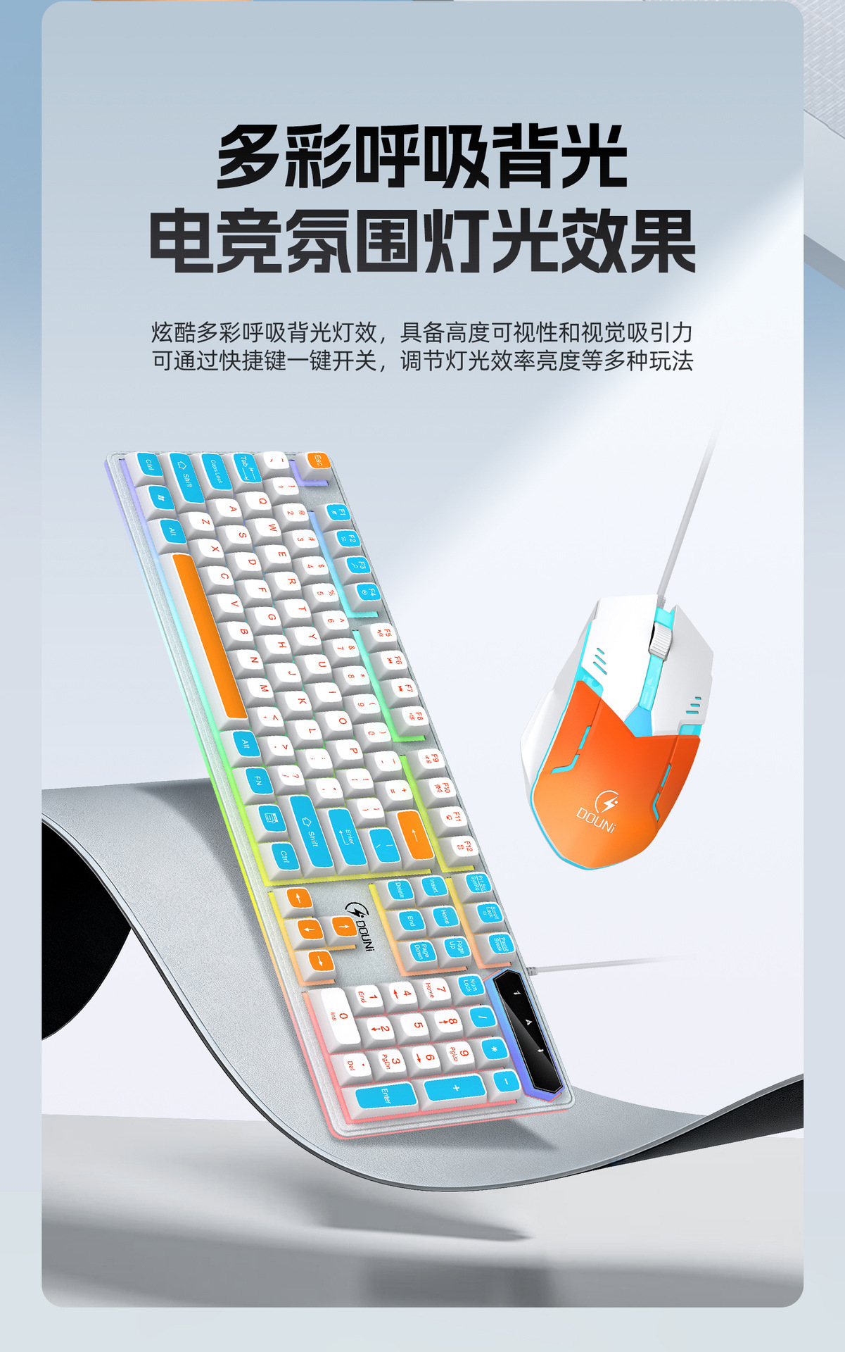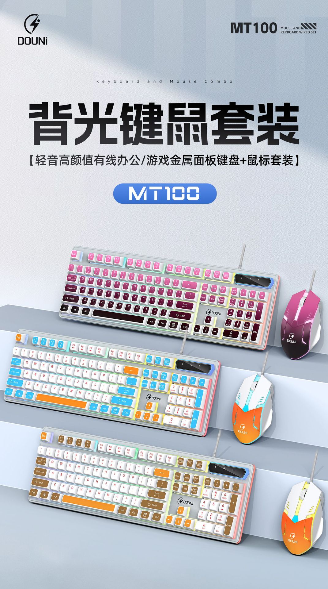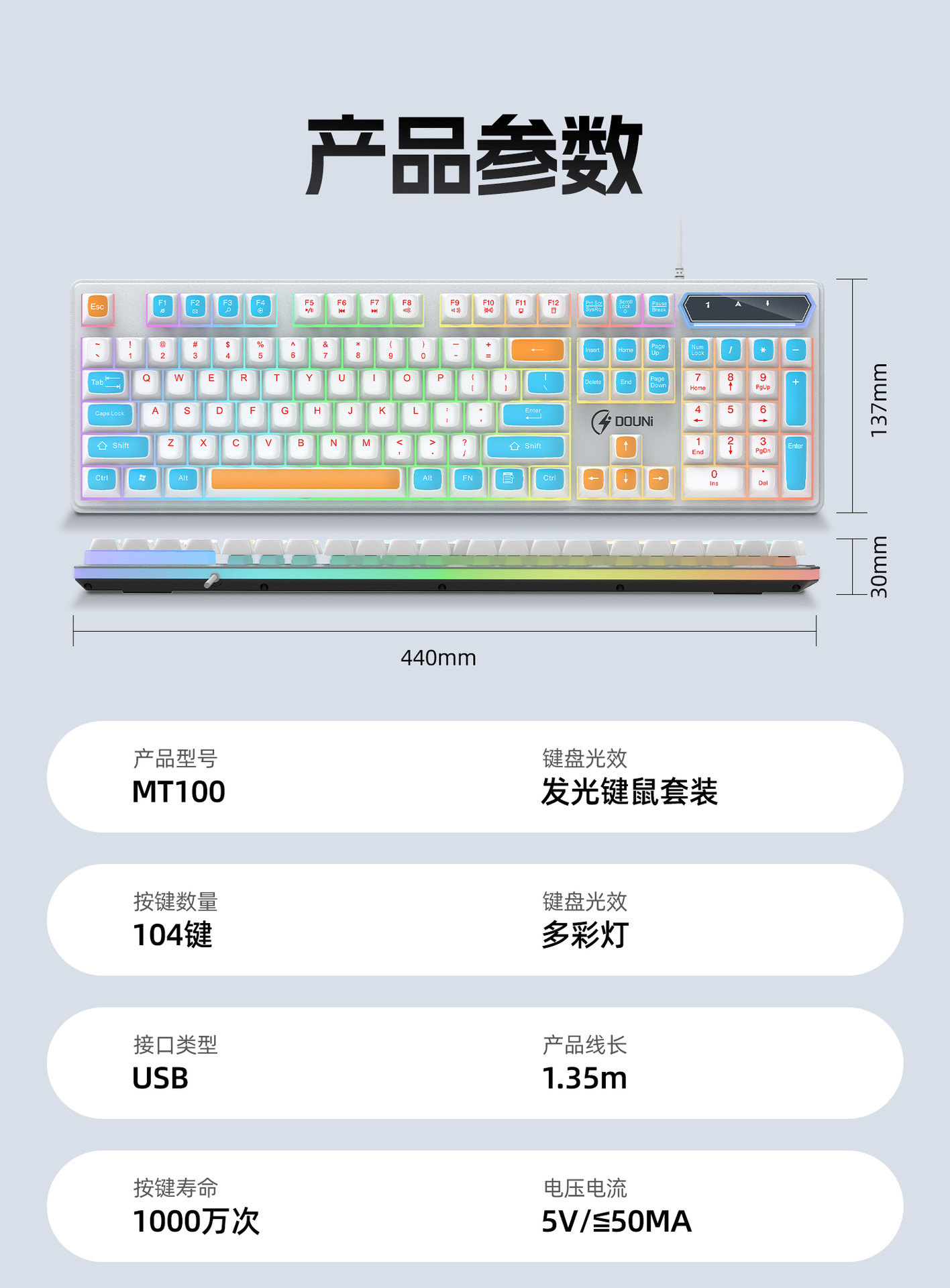 鬥尼MT100有線機械手感鍵盤滑鼠套裝七彩背光金屬面板鍵鼠呼吸燈
