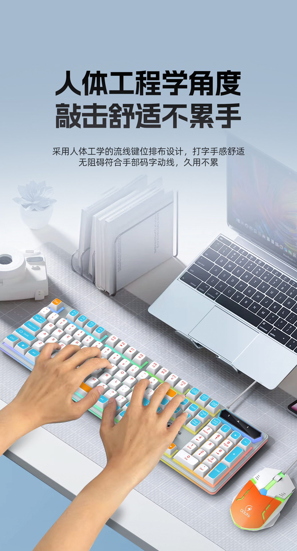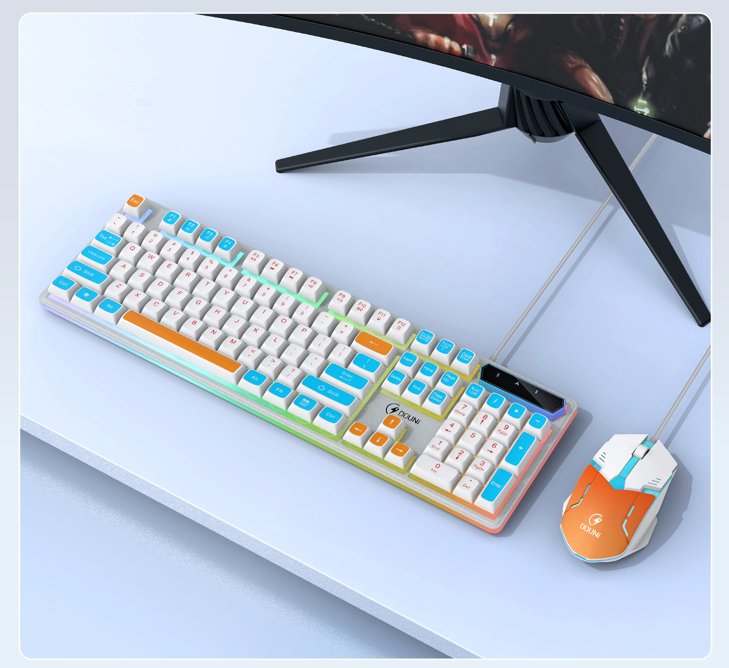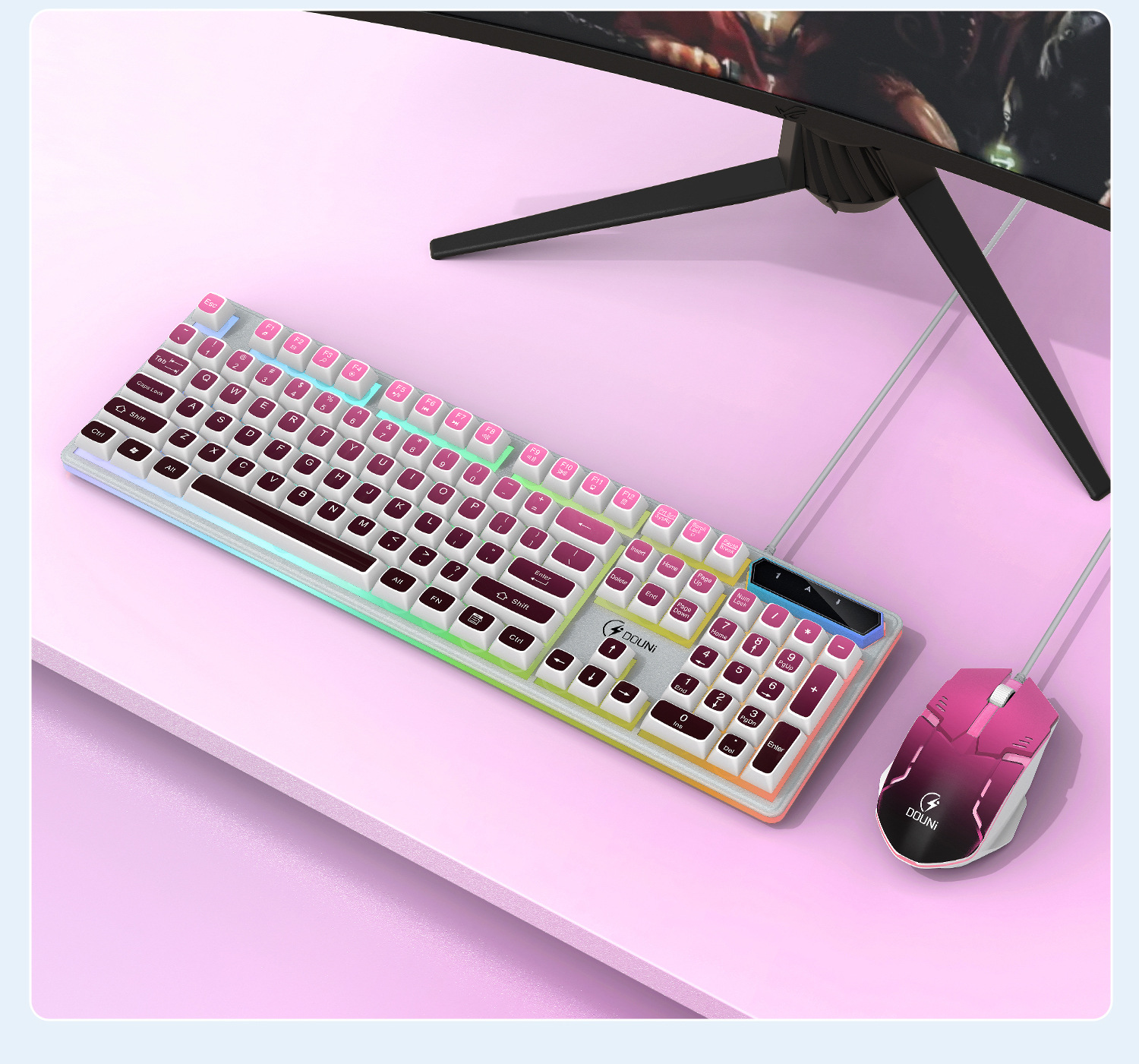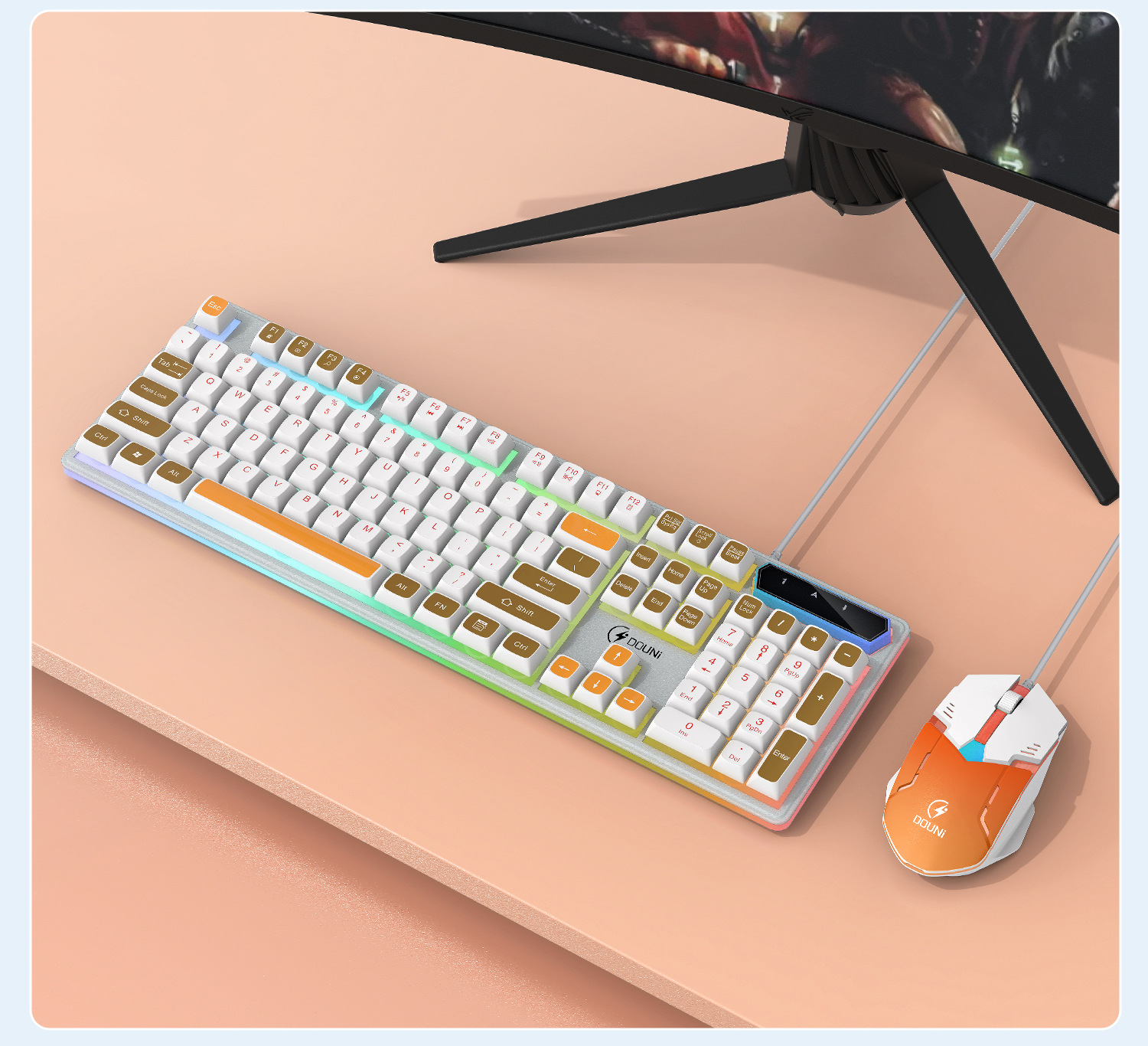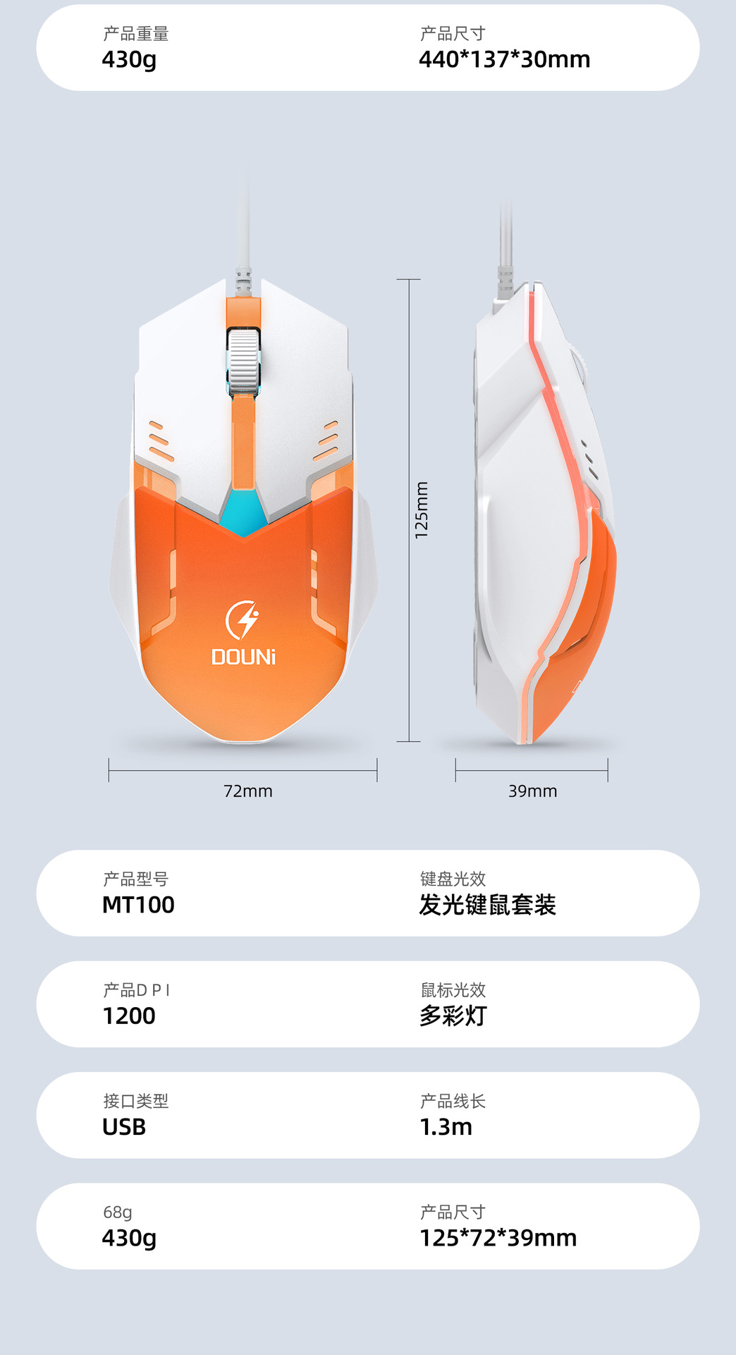 鬥尼MT100有線機械手感鍵盤滑鼠套裝七彩背光金屬面板鍵鼠呼吸燈