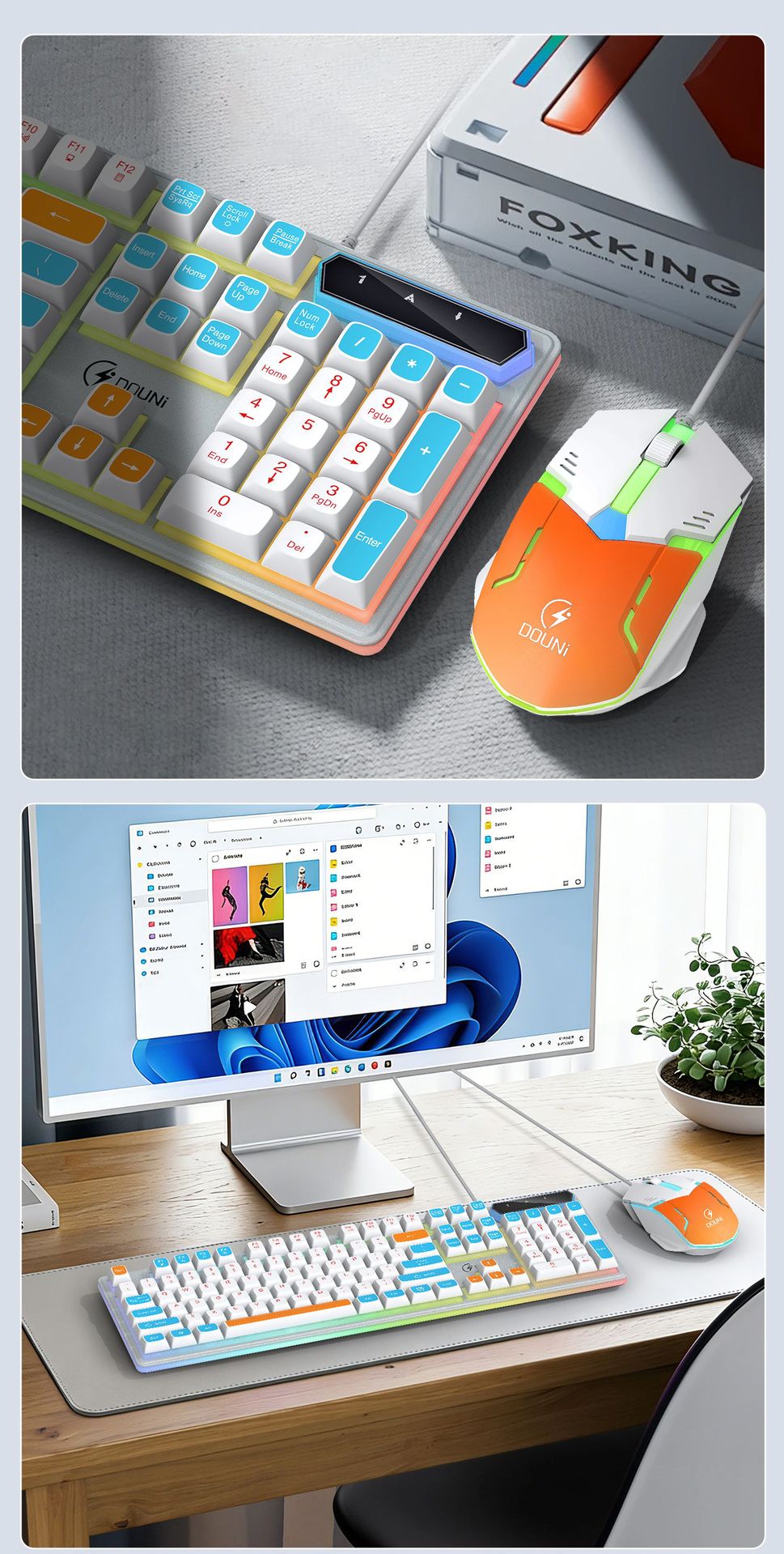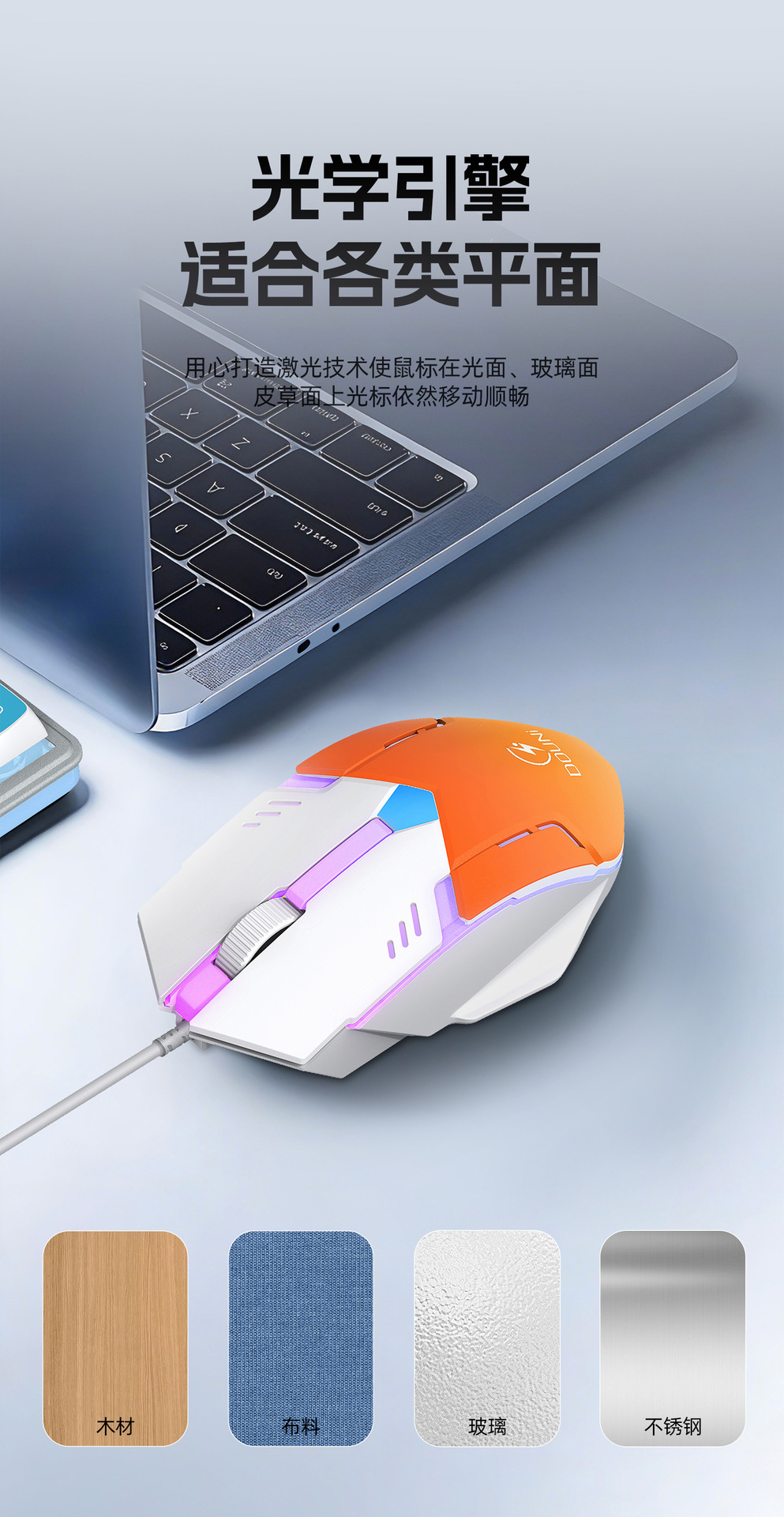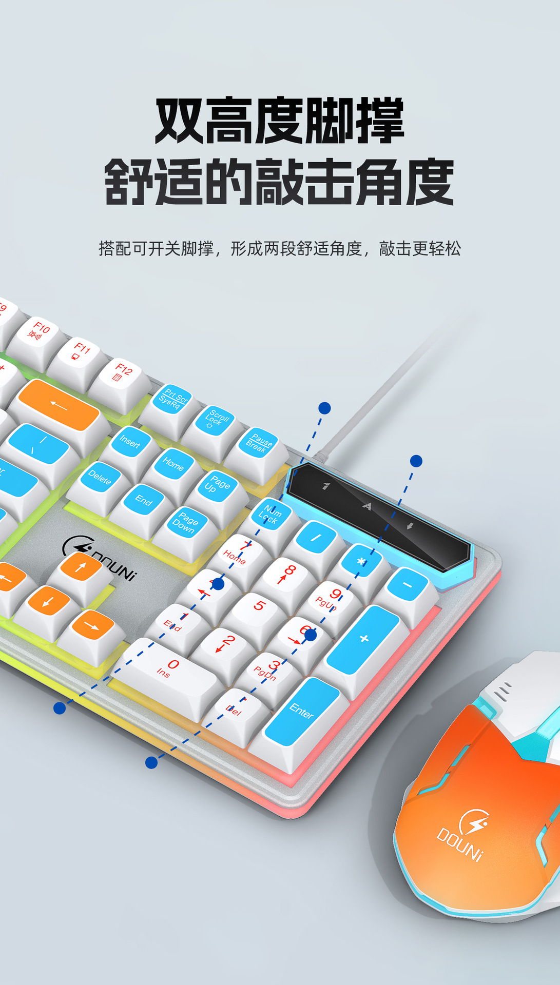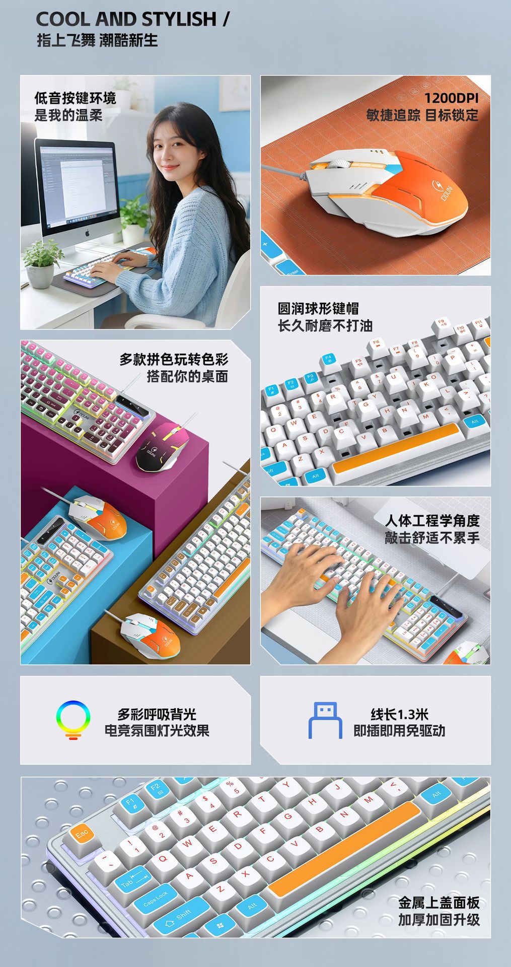鬥尼MT100有線機械手感鍵盤滑鼠套裝七彩背光金屬面板鍵鼠呼吸燈
