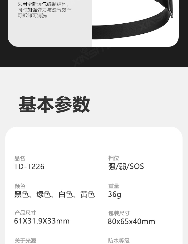 | 顔色 | 白色(感應頭燈2.5-5h) |