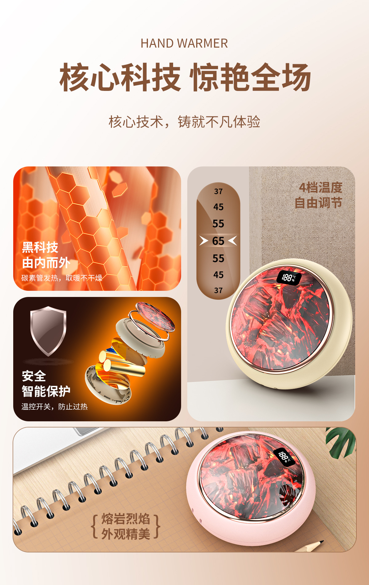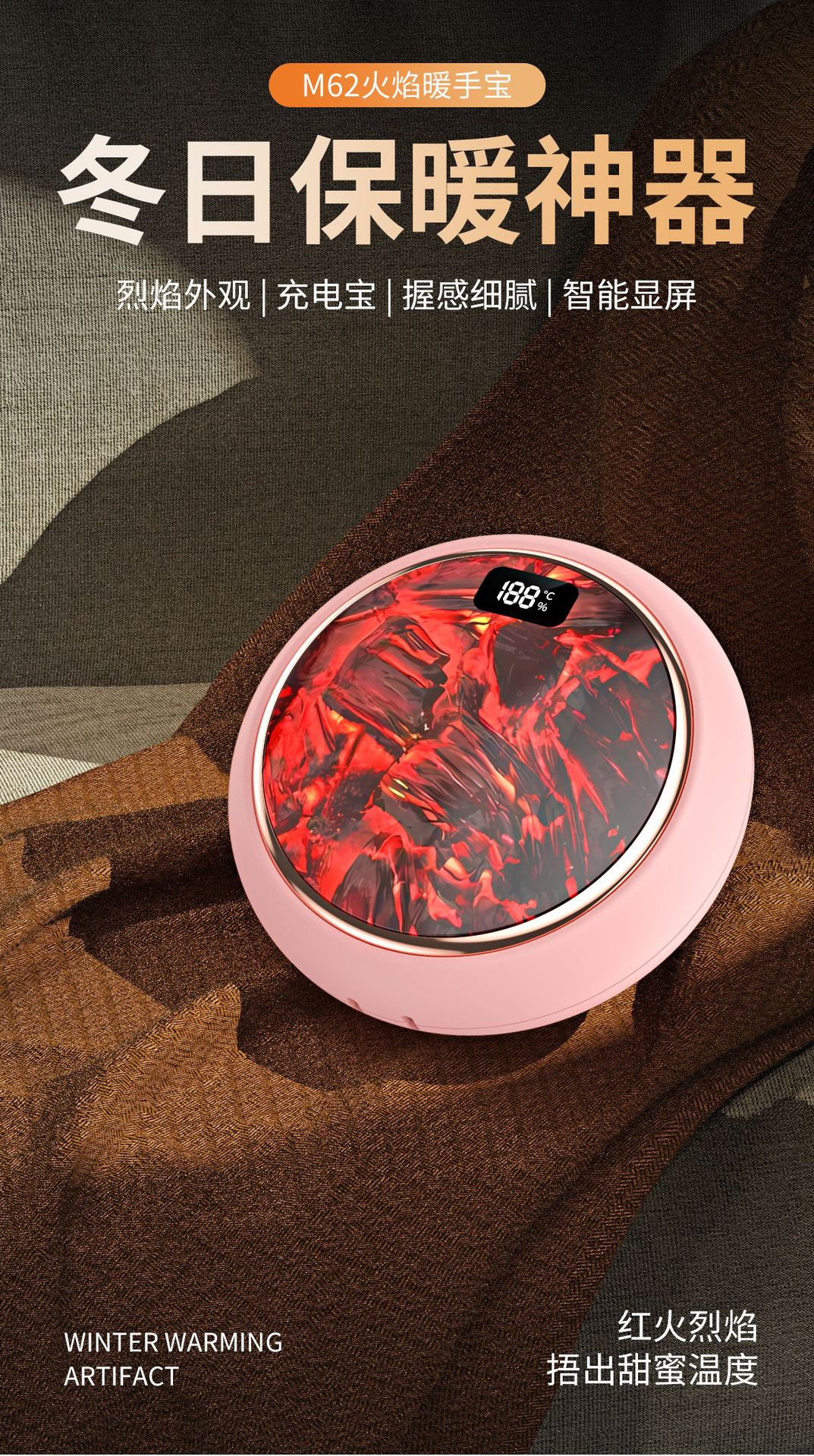 新款火焰炭火暖手寶迷你數顯暖寶寶新品禮品爆款火焰山暖手寶