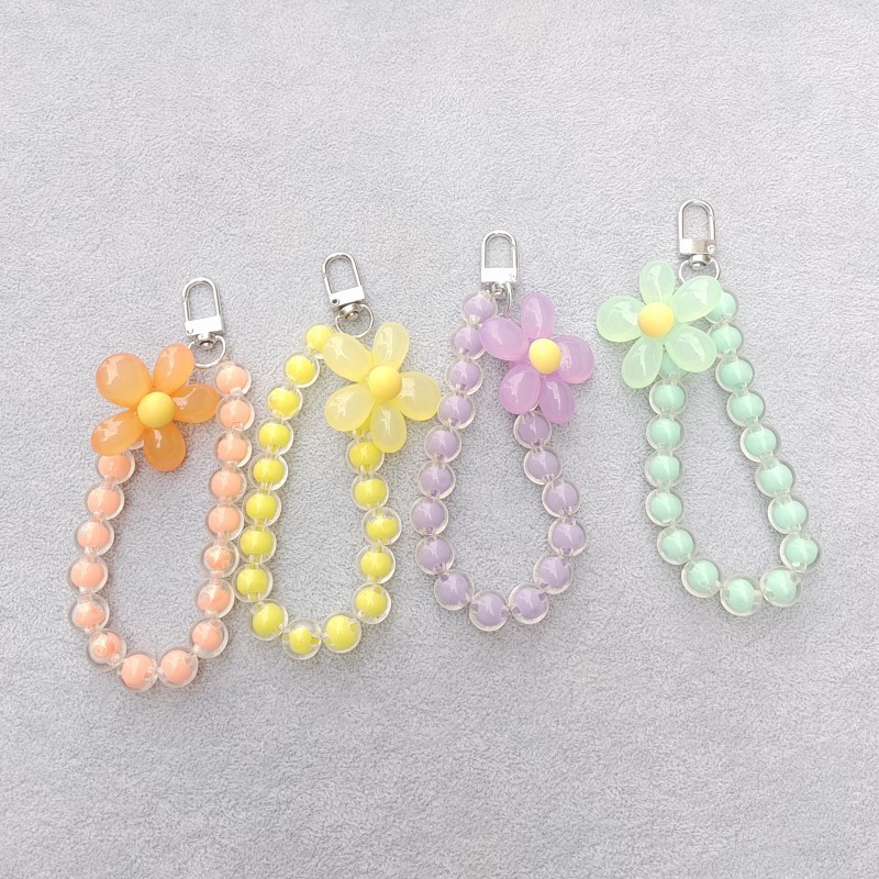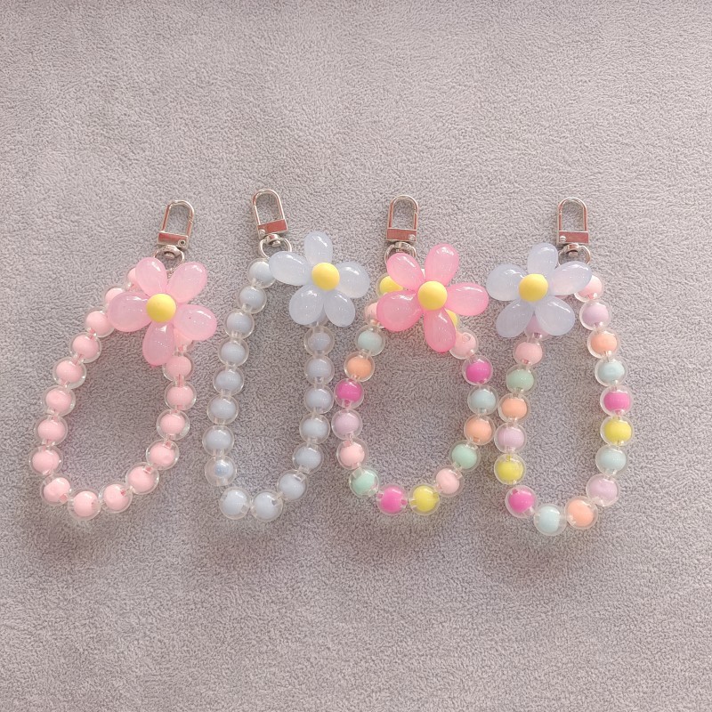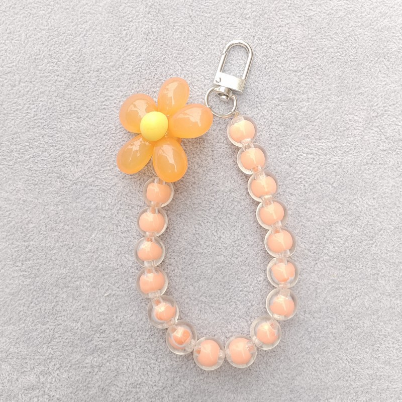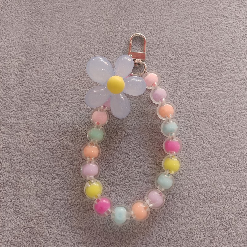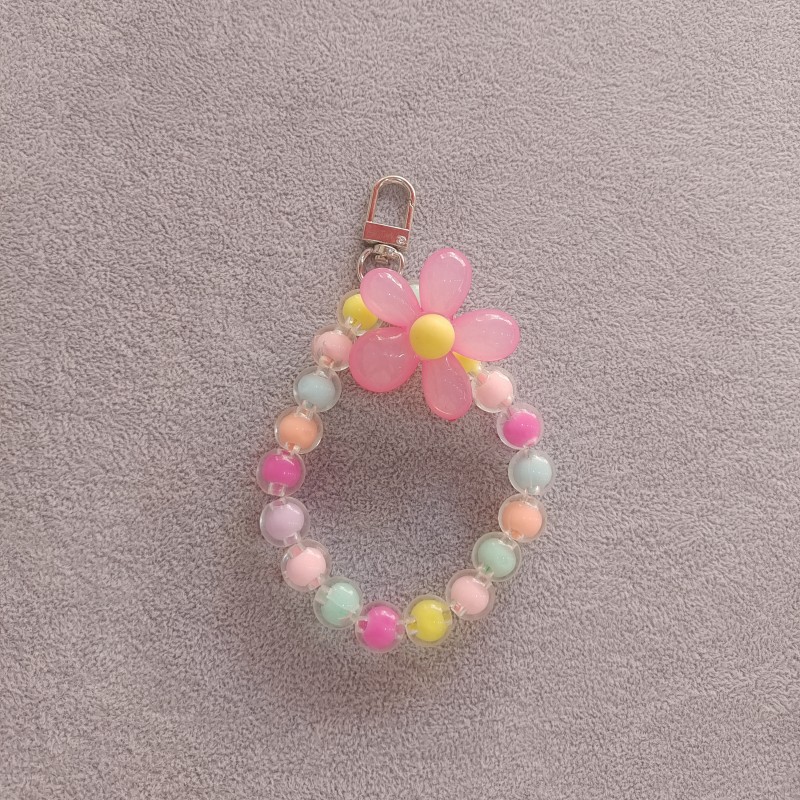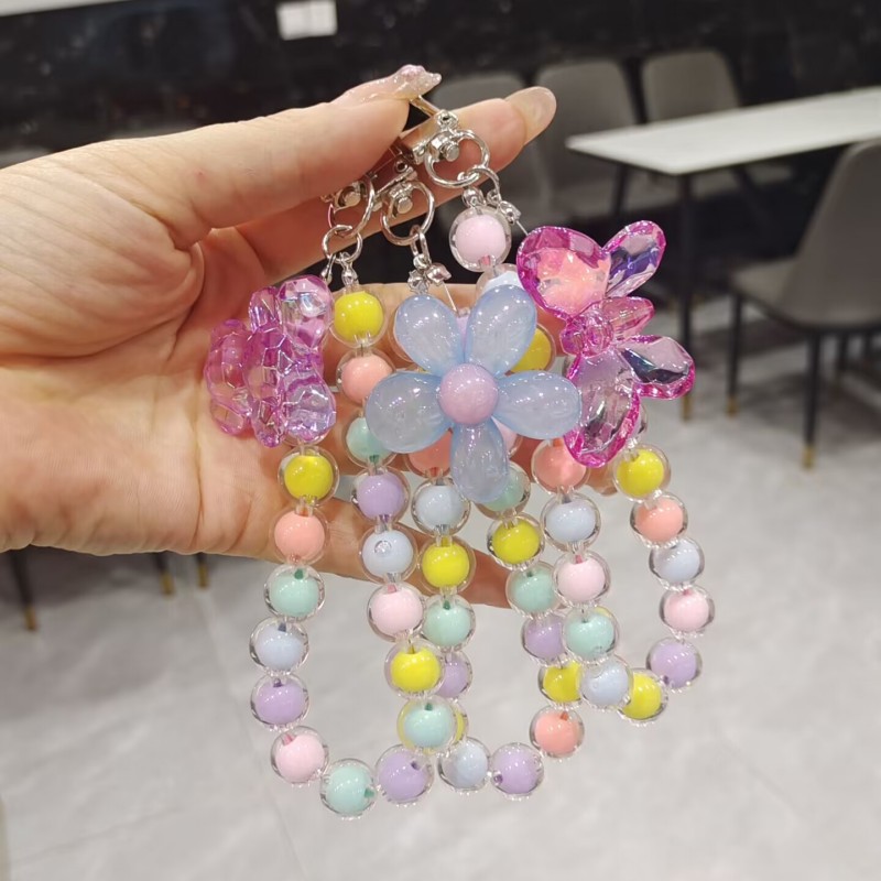 花朵手機鏈串珠掛件馬卡龍彩色珠創意鑰匙釦手機殼掛鏈少女ins風