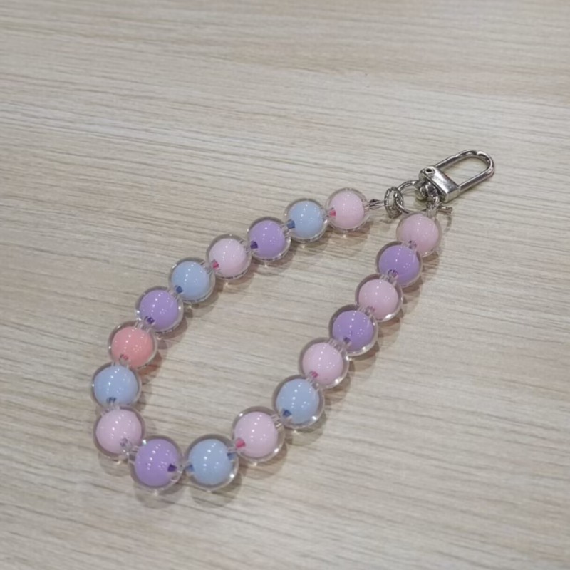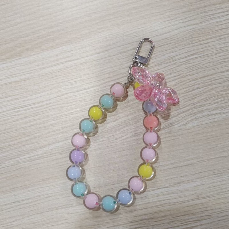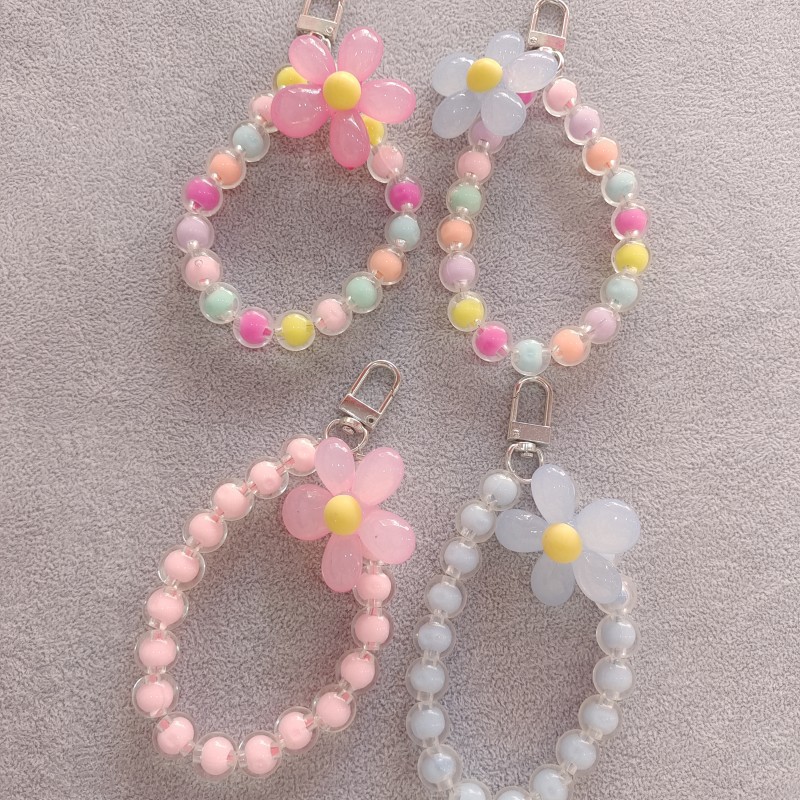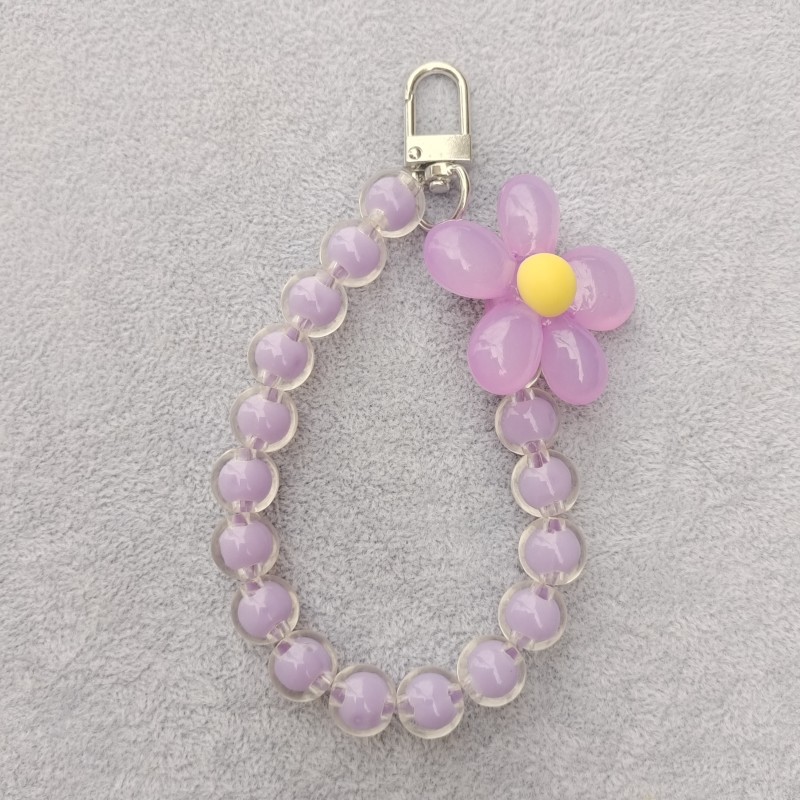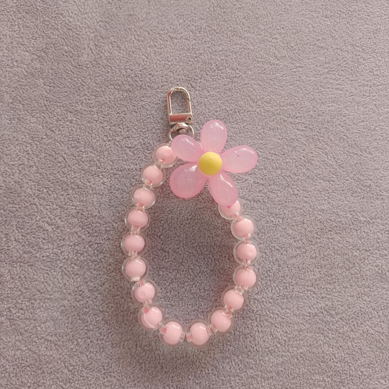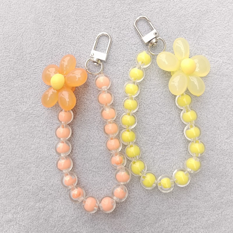 花朵手機鏈串珠掛件馬卡龍彩色珠創意鑰匙釦手機殼掛鏈少女ins風