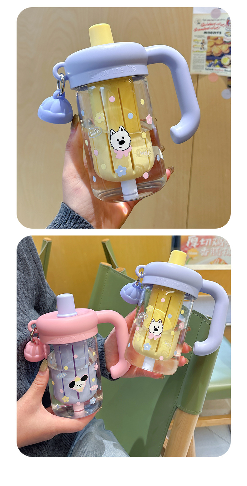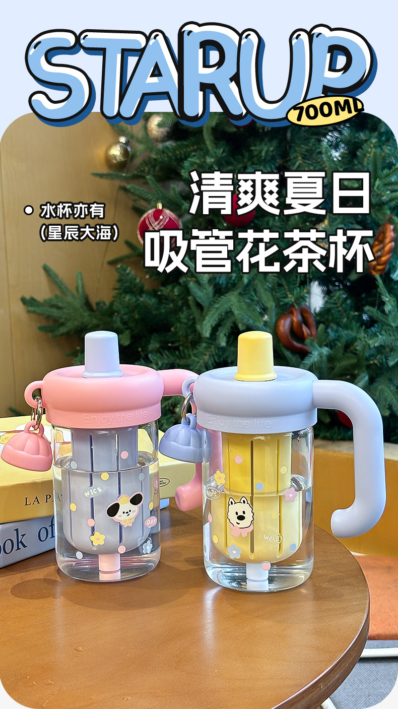 水杯玻璃杯女生泡茶杯2025新款夏季高顔值把手辦公室可愛吸琯杯子