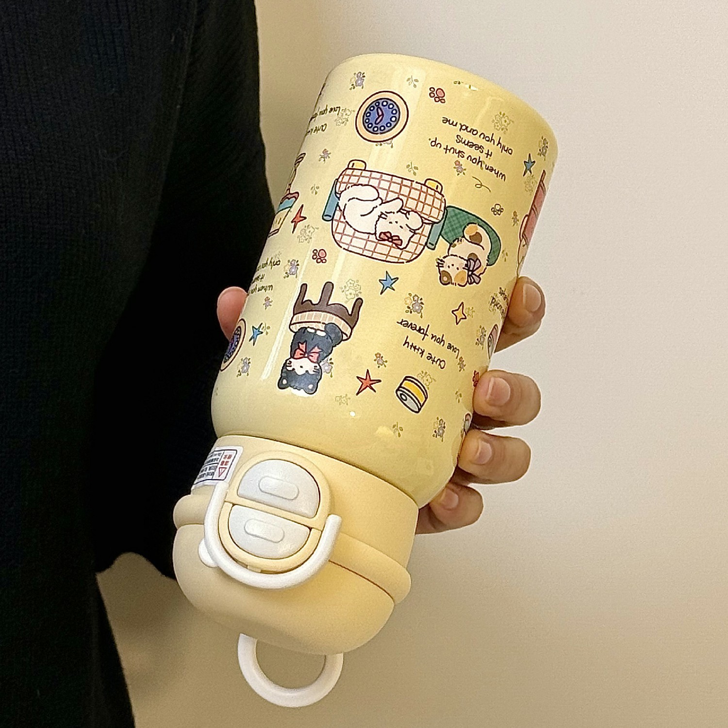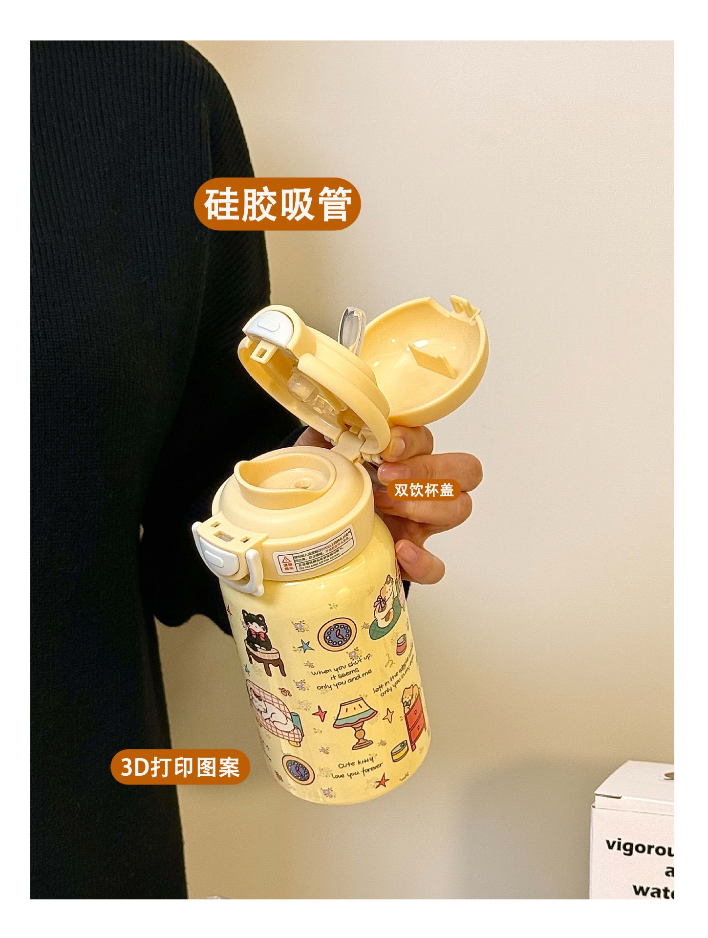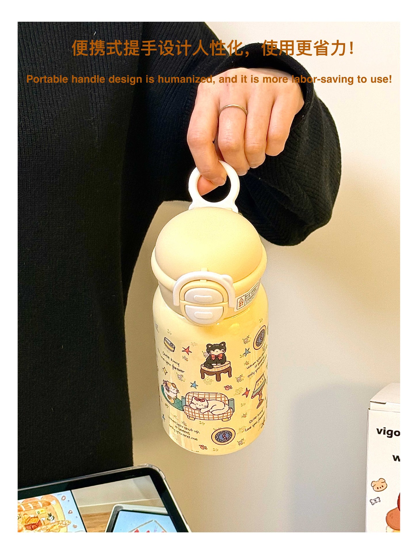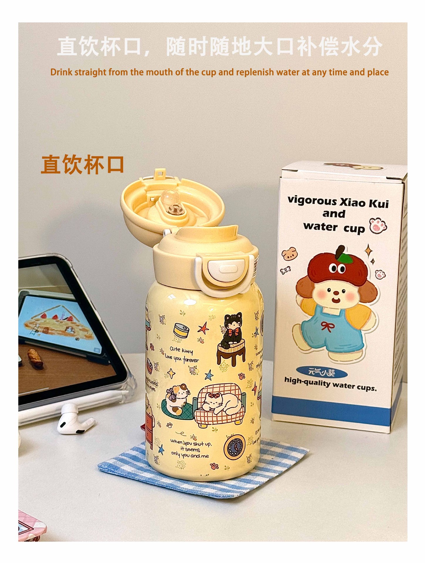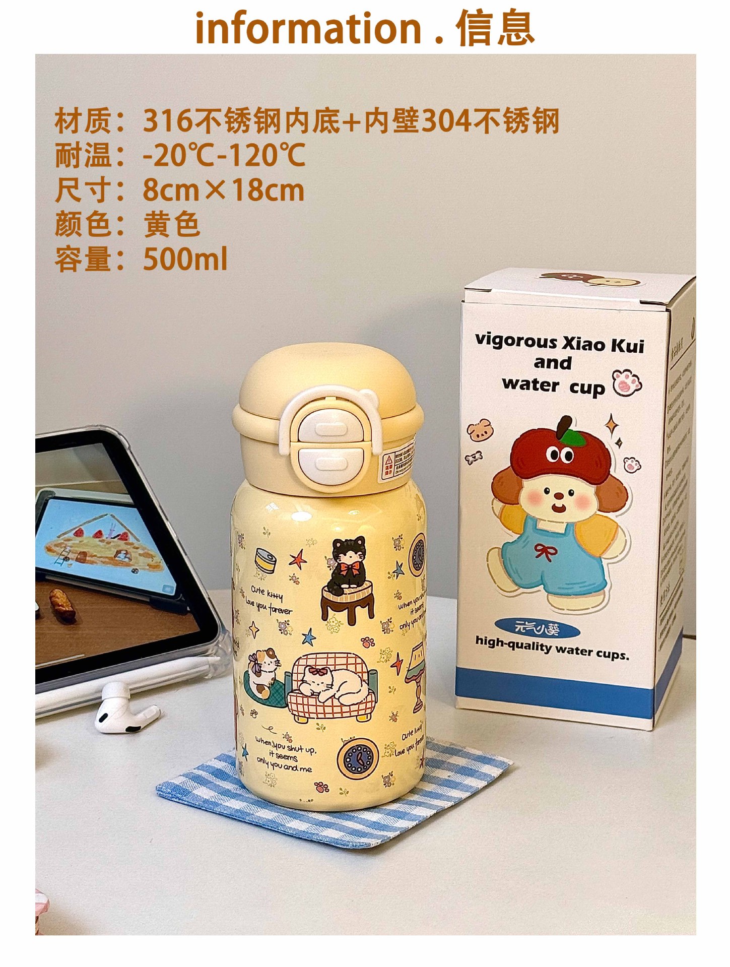 原創貓咪保溫杯316不鏽鋼ins女生可愛可攜式學生雙飲小衆高顔值水杯