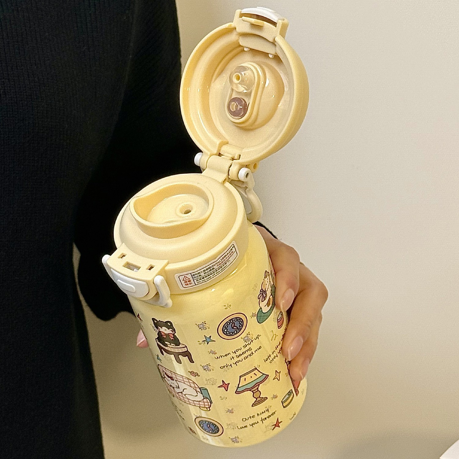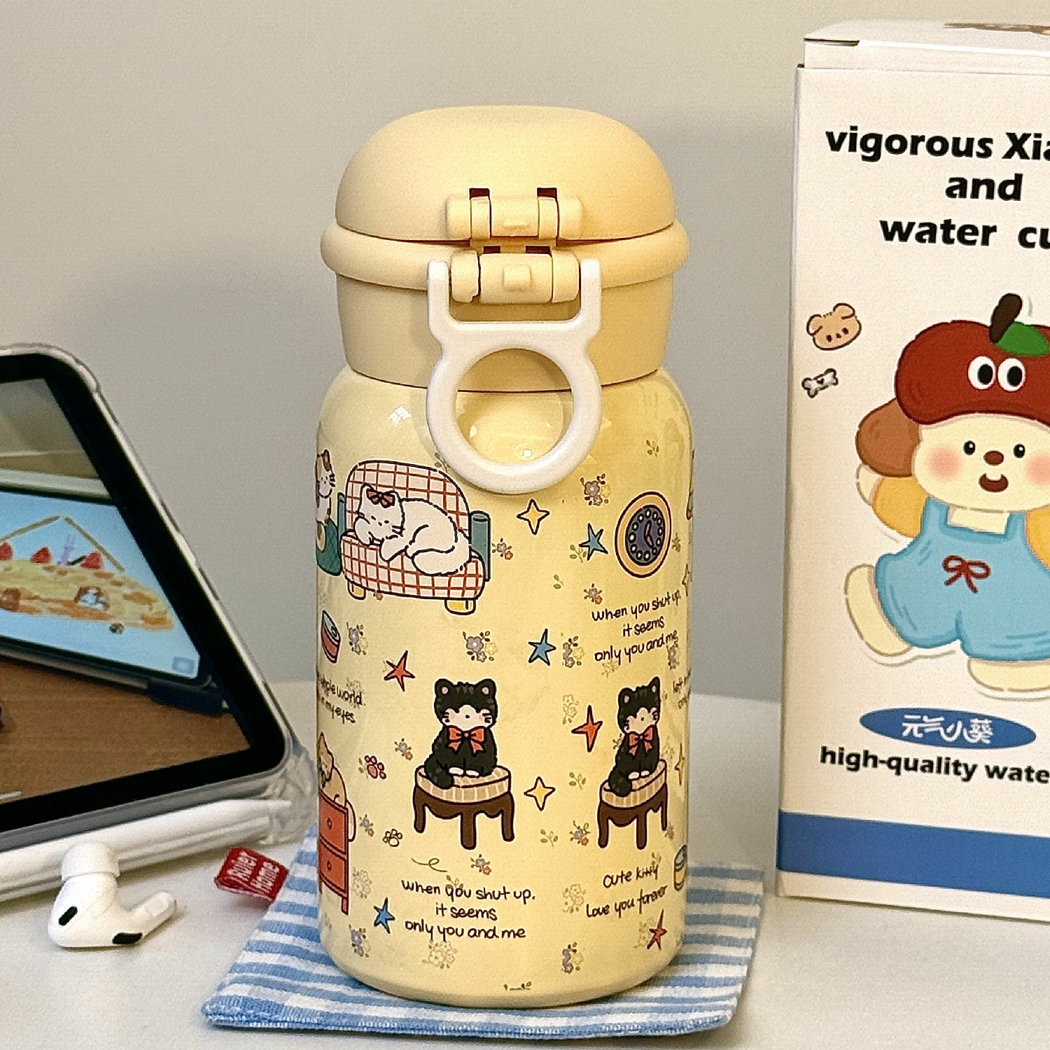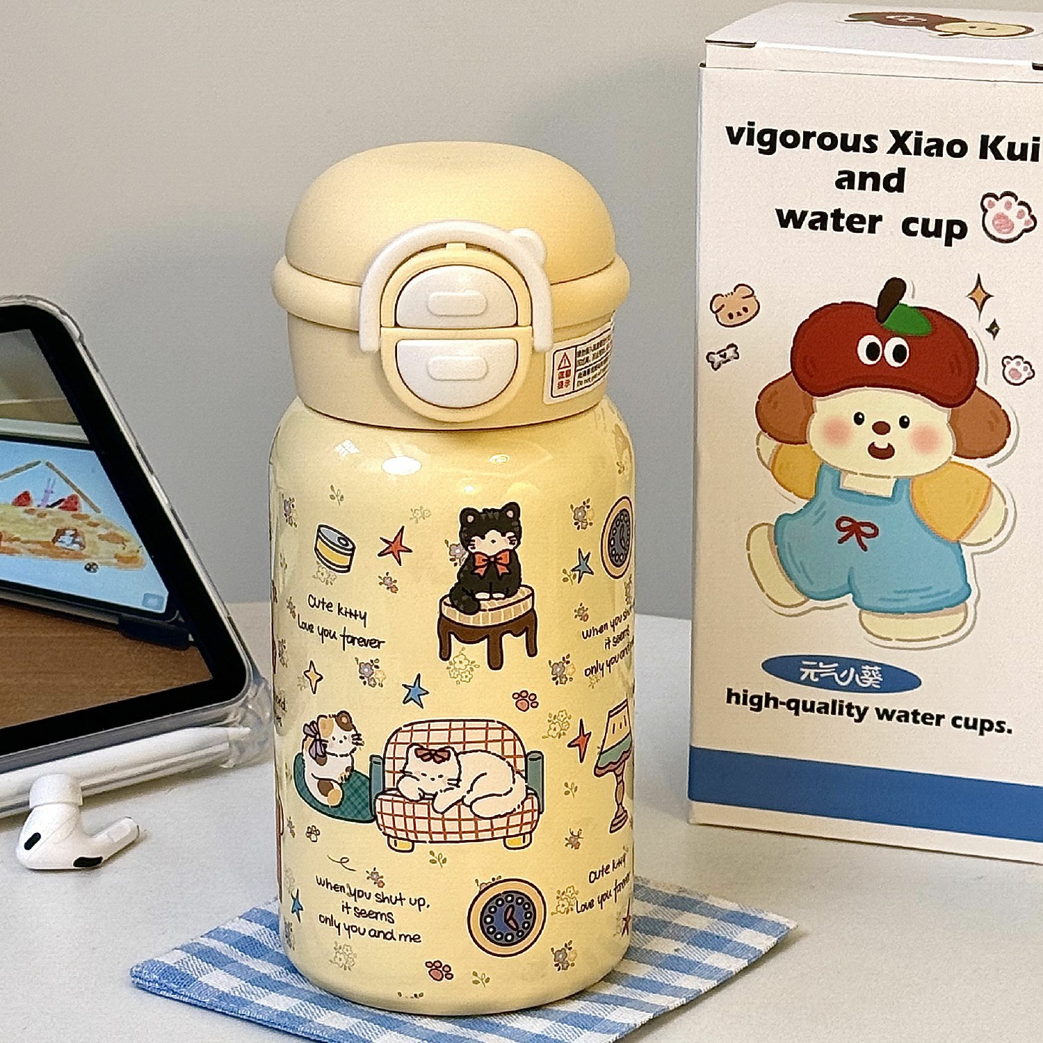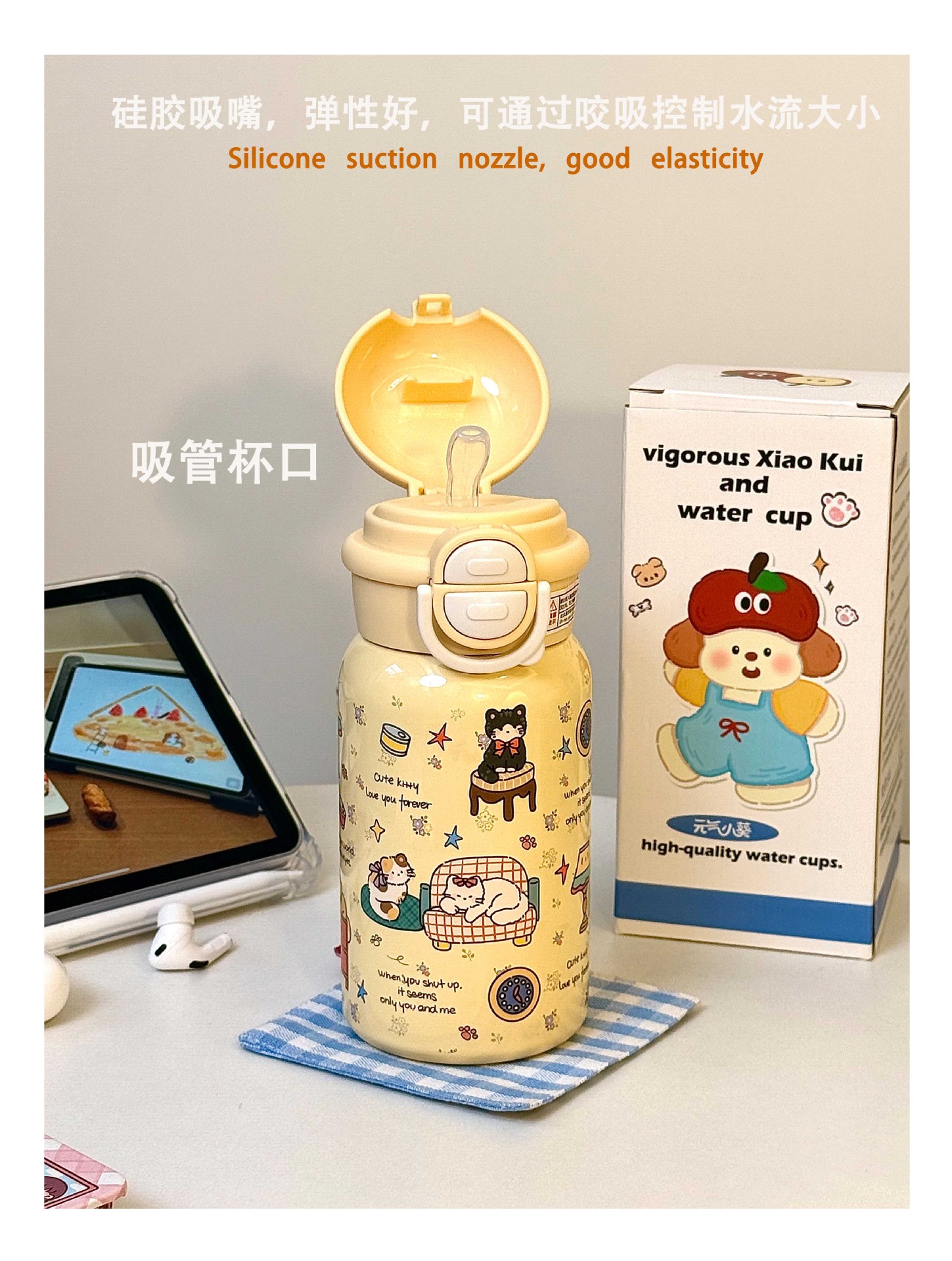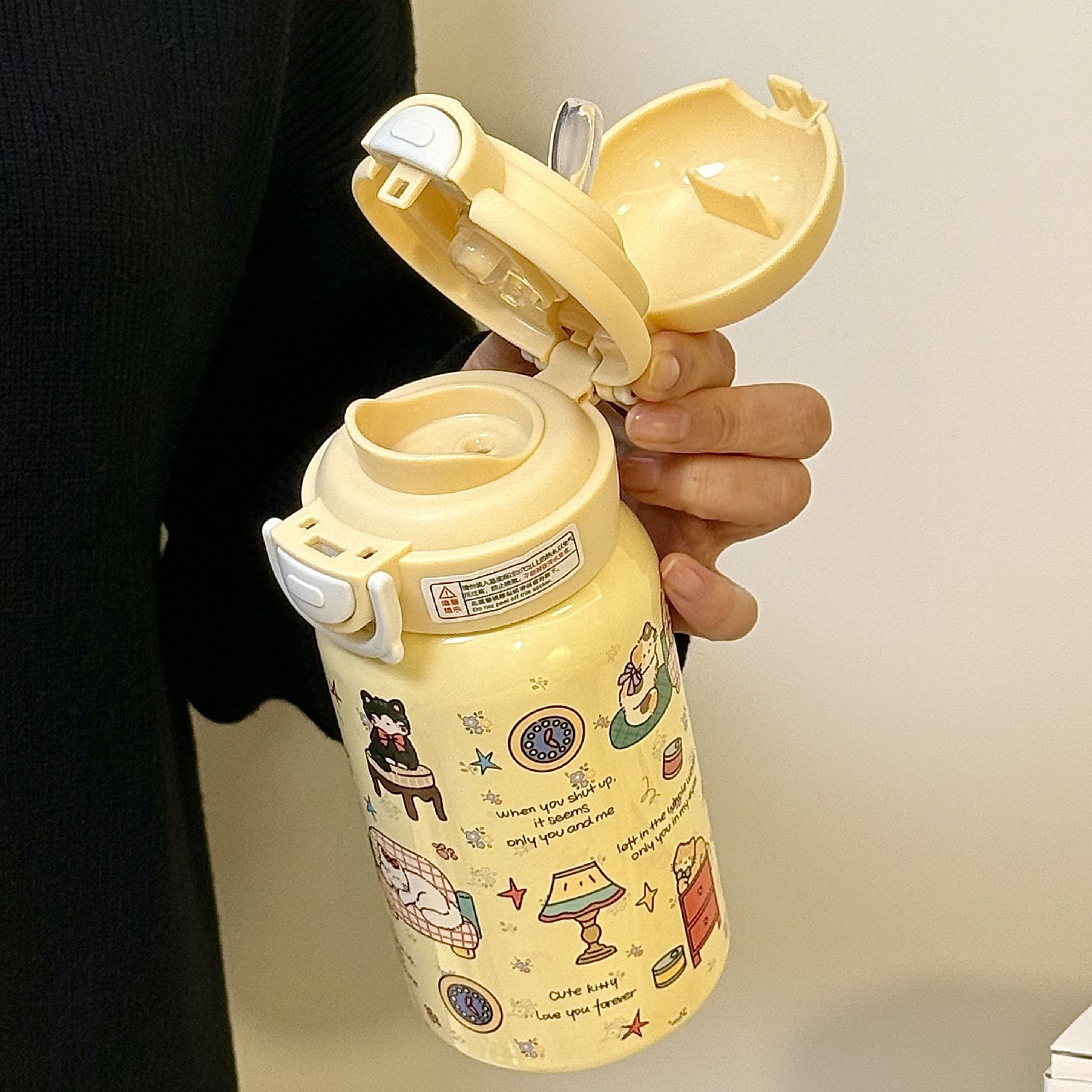 原創貓咪保溫杯316不鏽鋼ins女生可愛可攜式學生雙飲小衆高顔值水杯