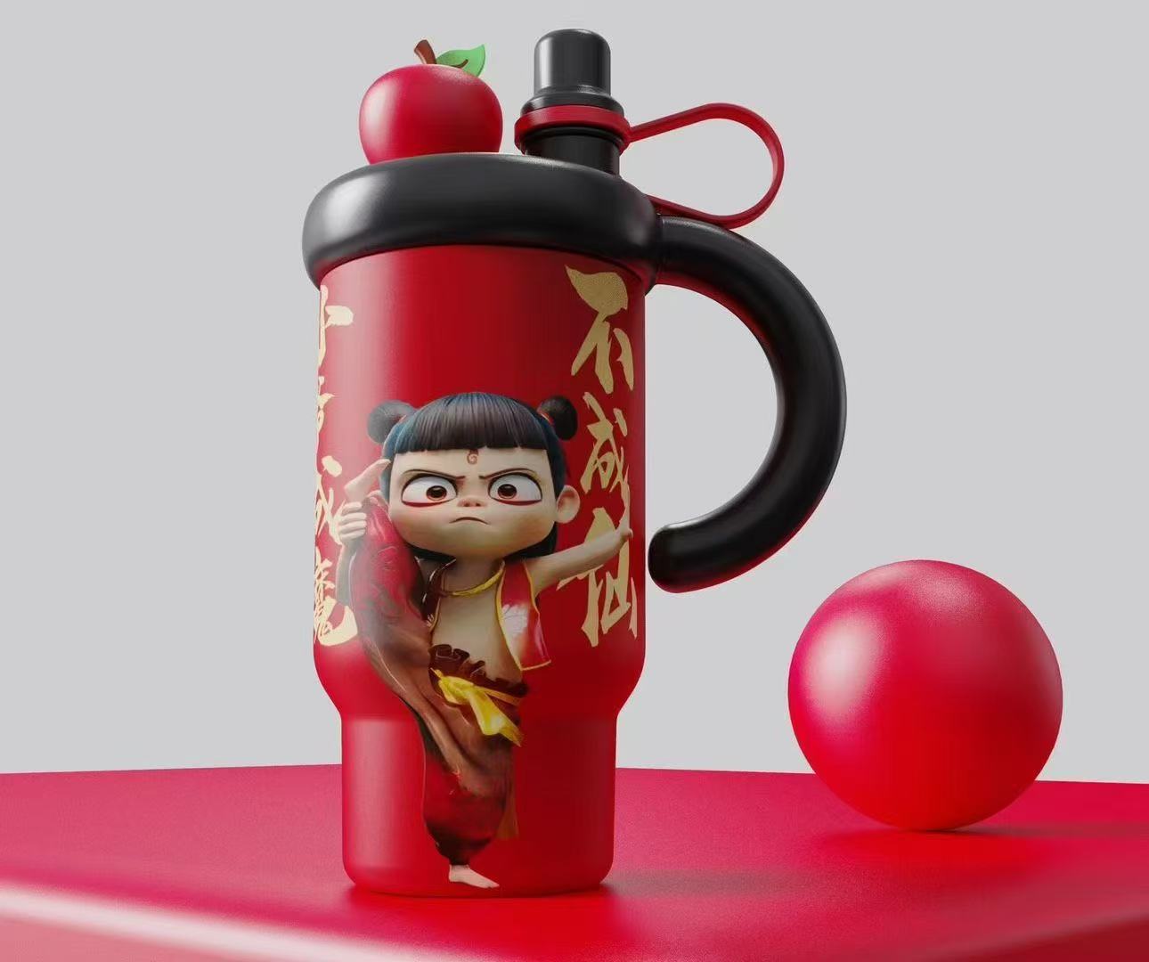哪吒閙海保溫杯316不鏽鋼卡通兒童學生可攜式可愛高顔值水杯杯子