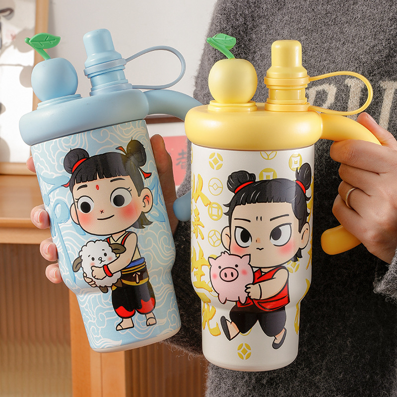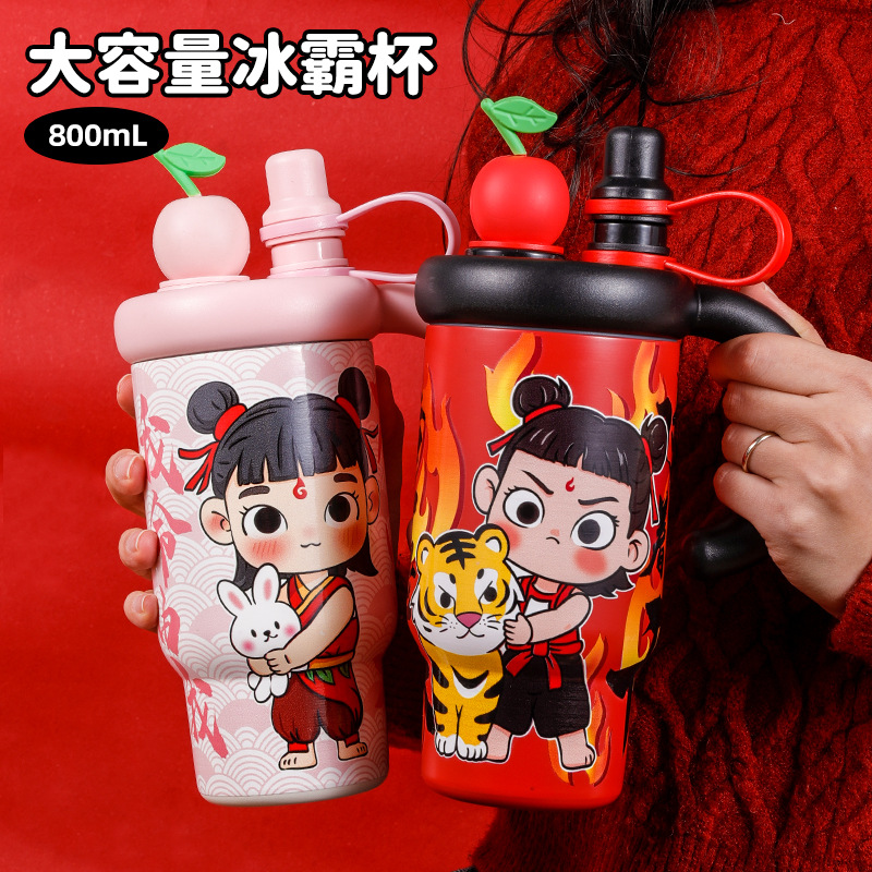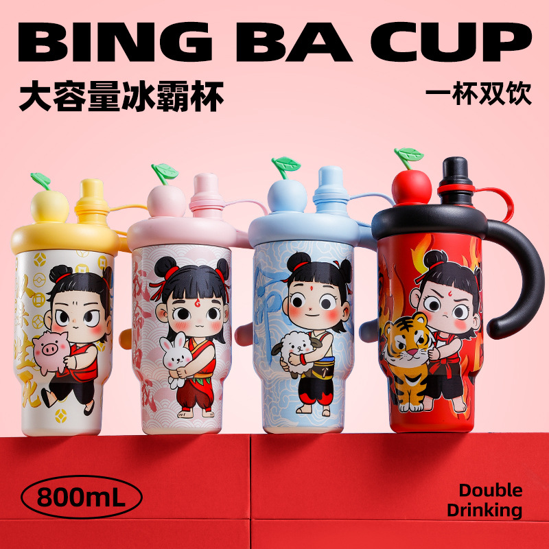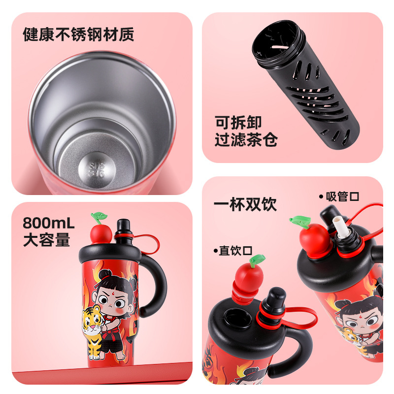 網紅國潮哪吒保溫杯316不鏽鋼冰霸杯大容量保溫水杯茶水分離杯子
