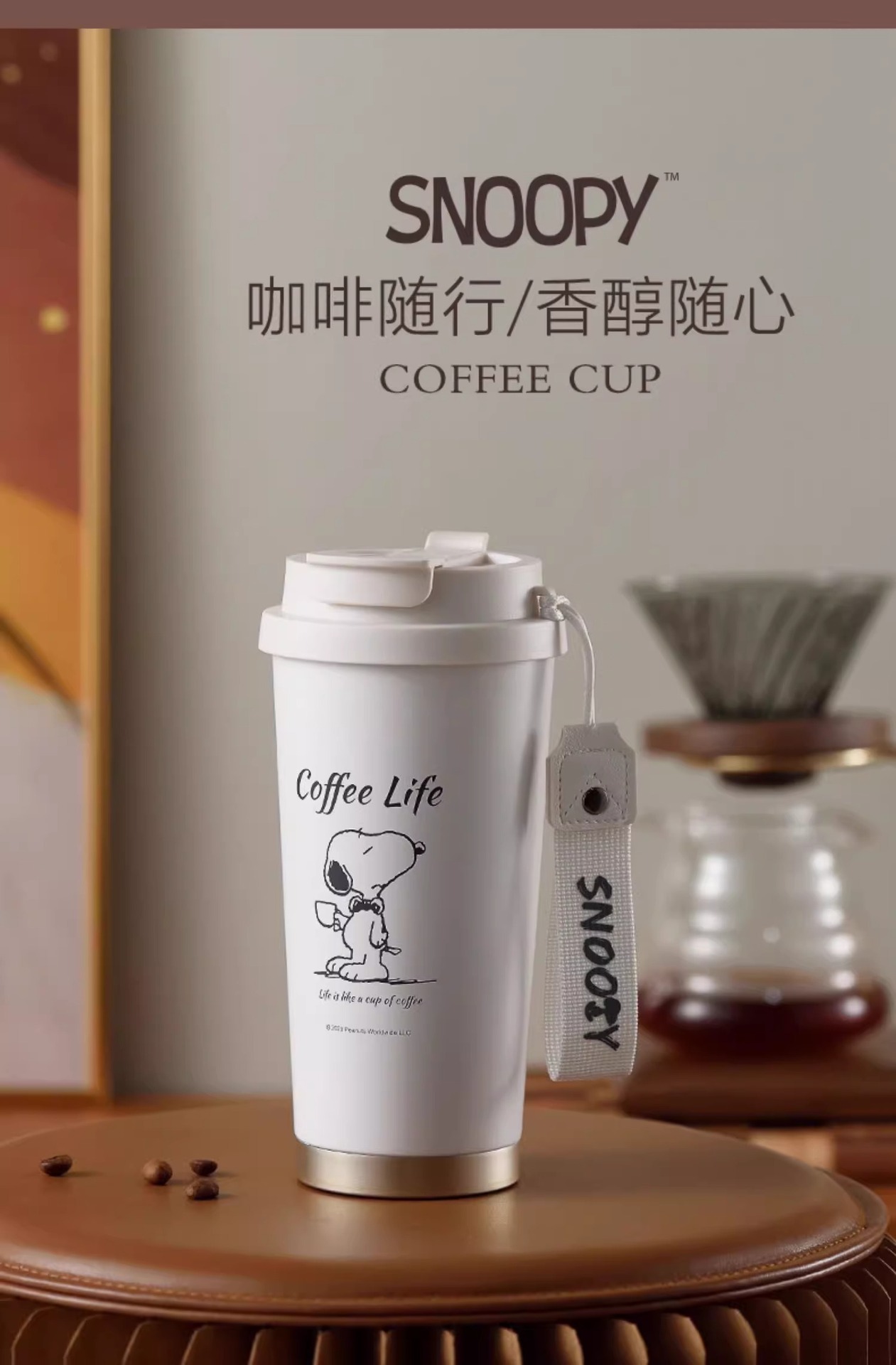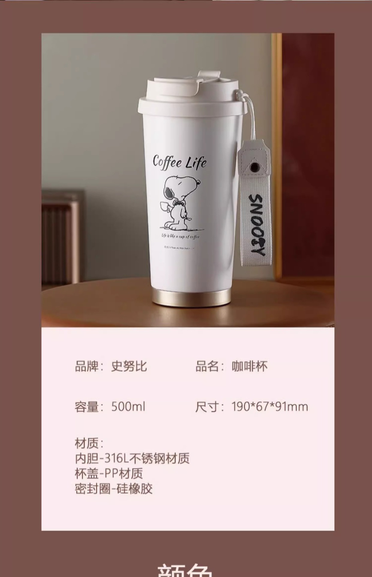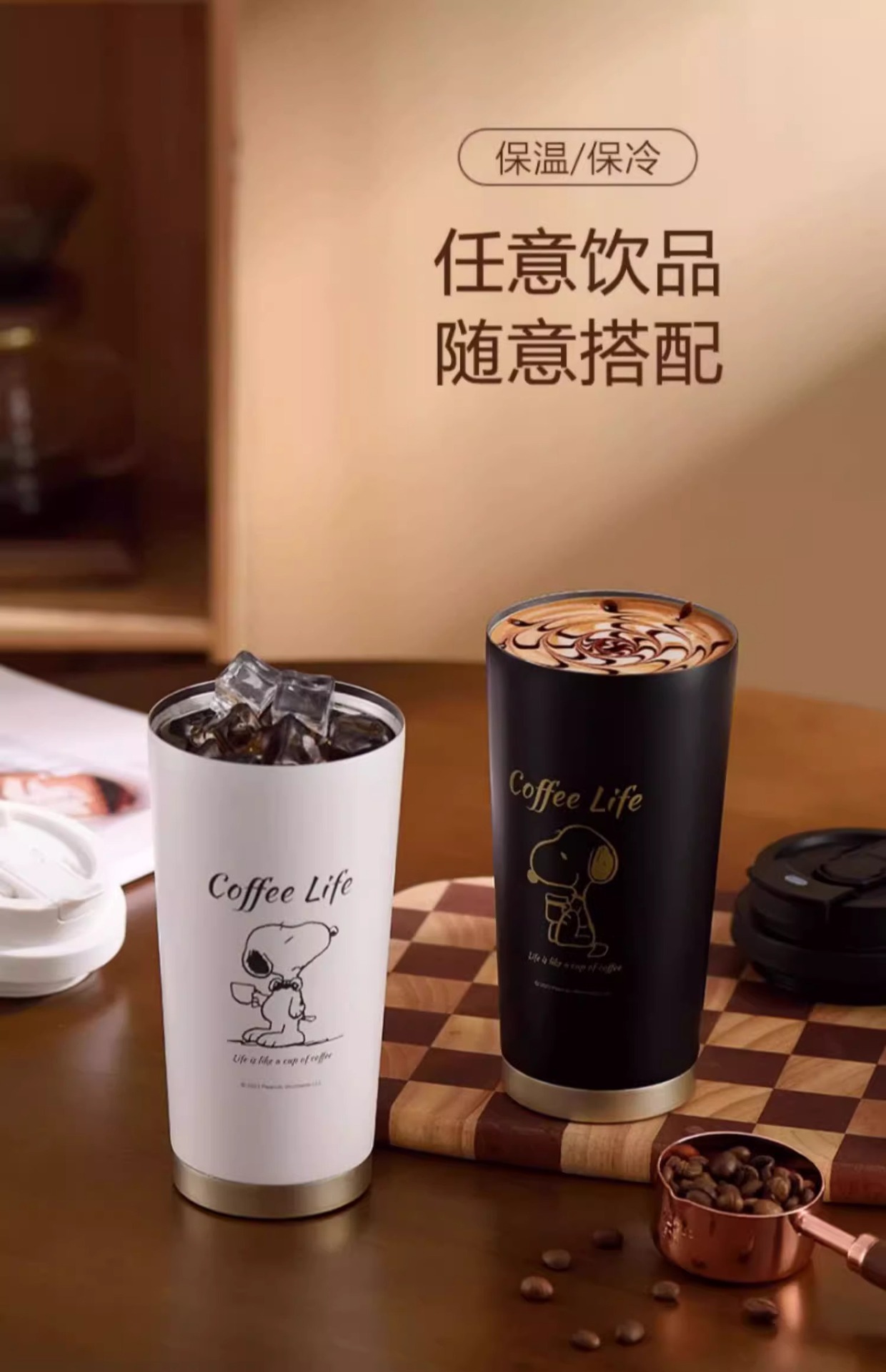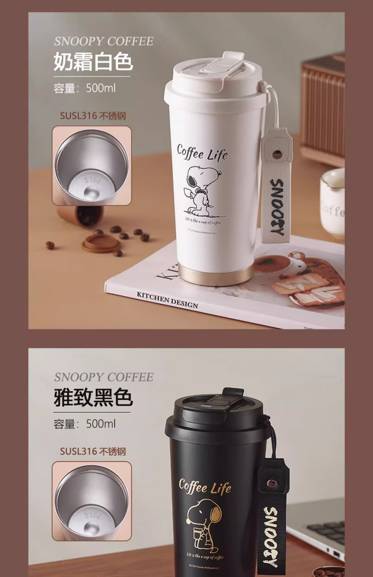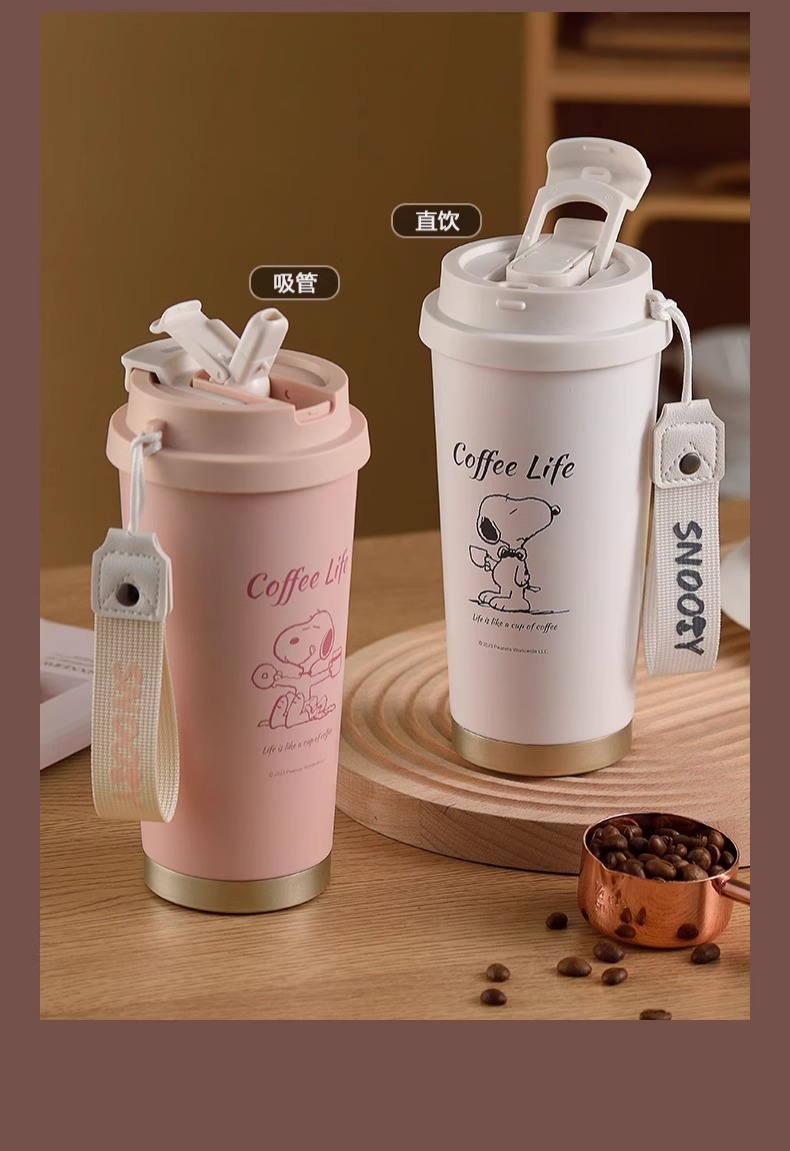 史努比咖啡杯保溫杯女高顔值316L不鏽鋼2024新款大容量吸琯水杯子