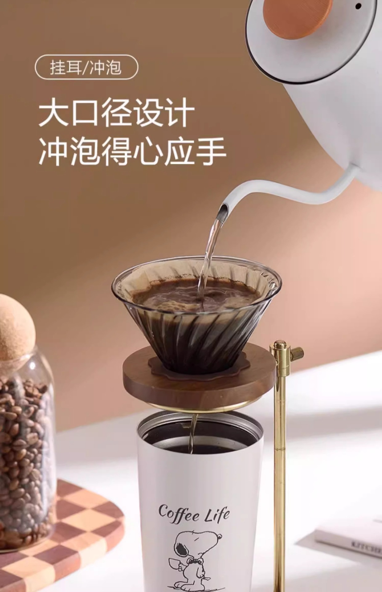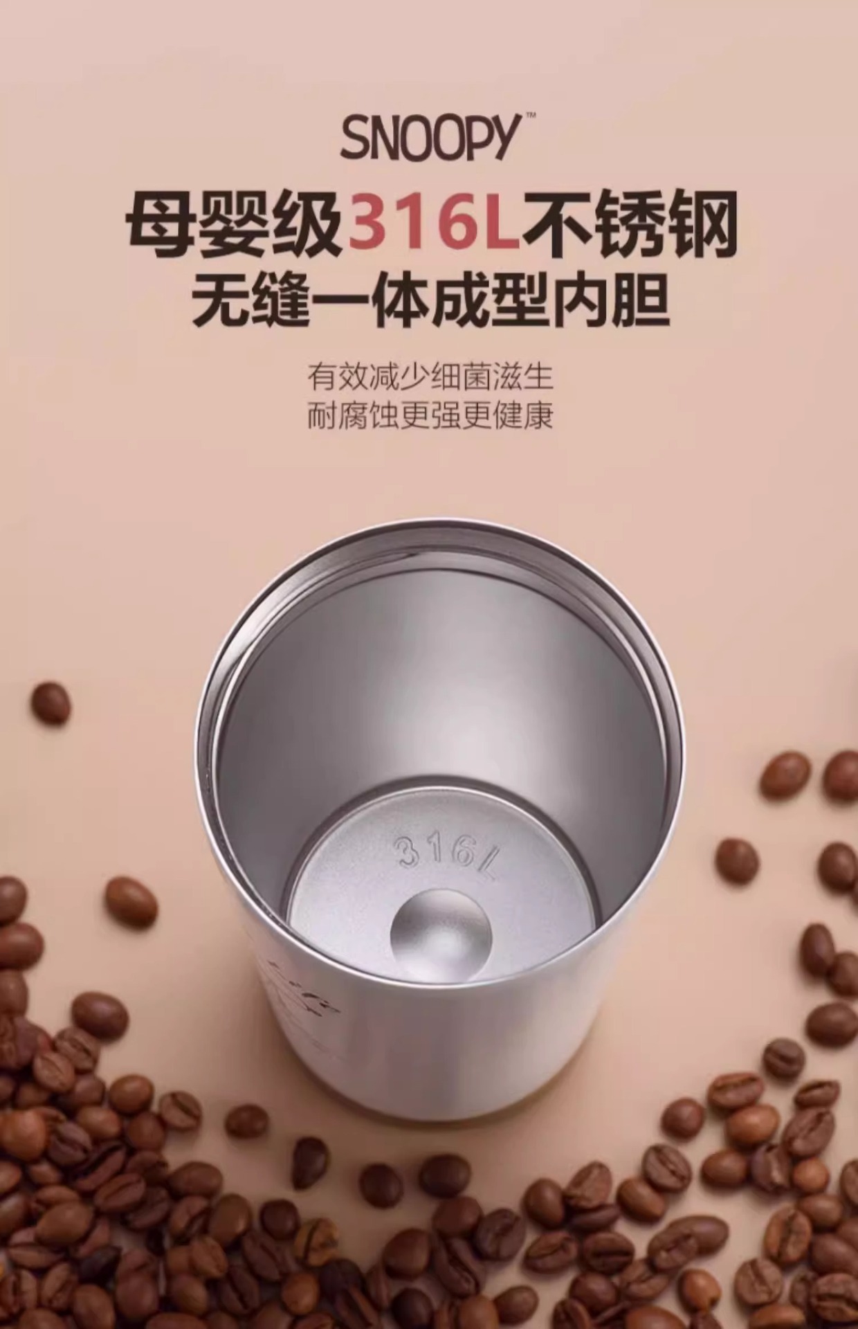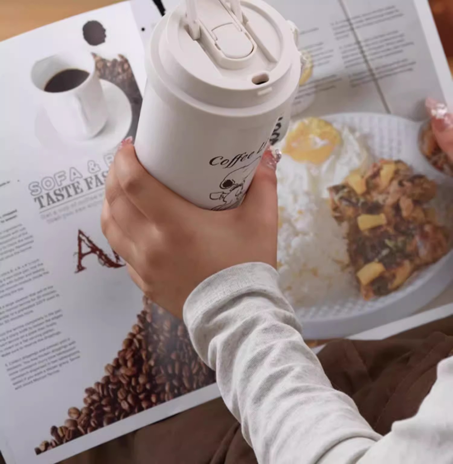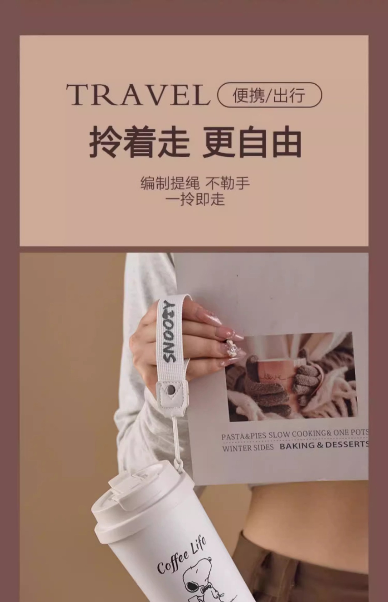 史努比咖啡杯保溫杯女高顔值316L不鏽鋼2024新款大容量吸琯水杯子