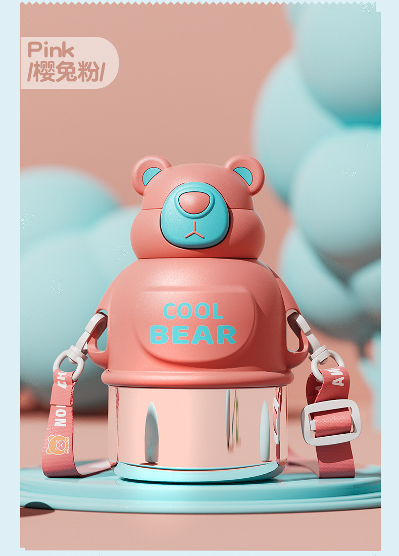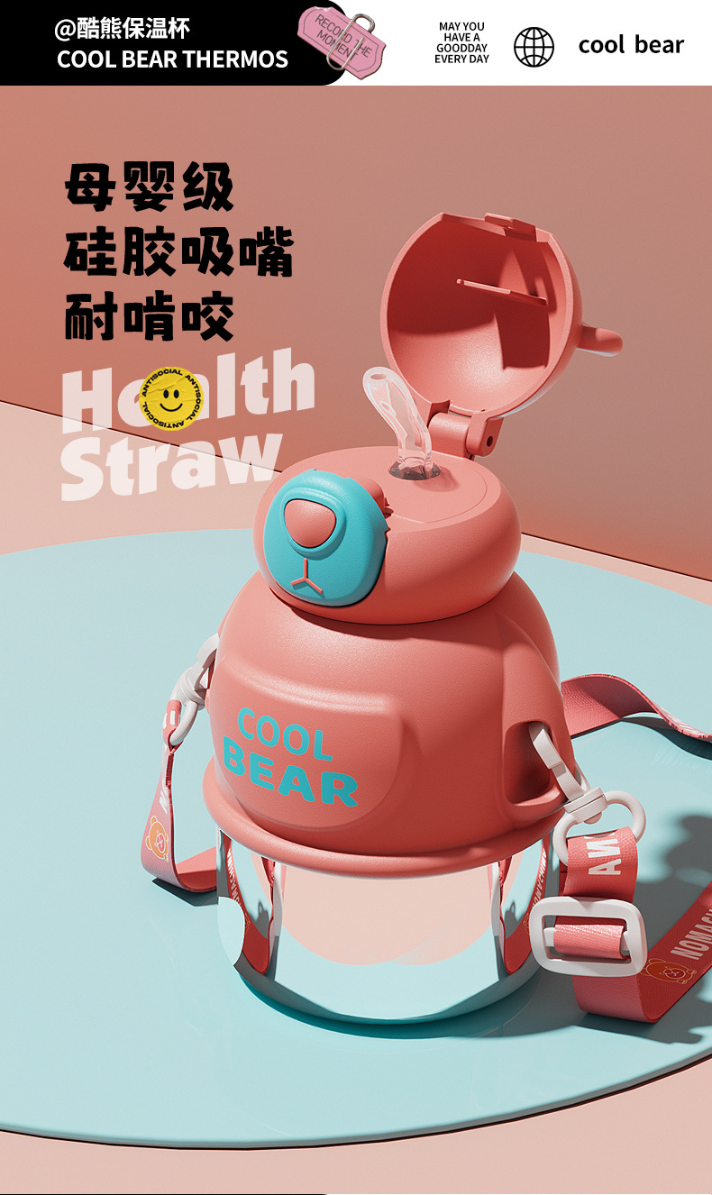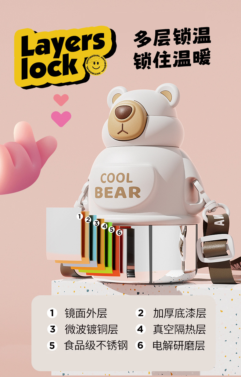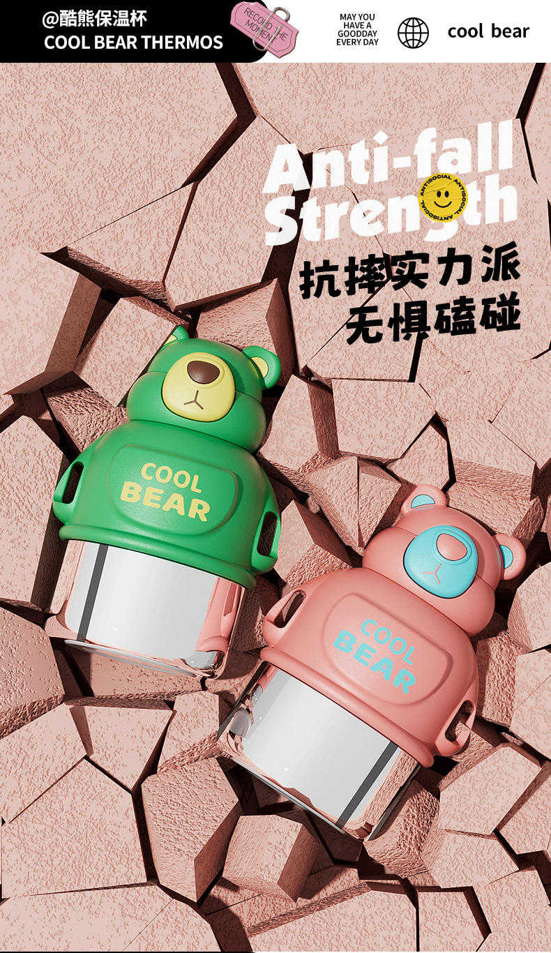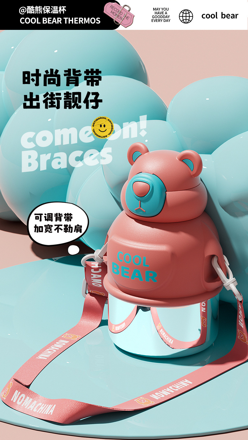 新款小熊卡通316不鏽鋼兒童保溫杯學生幼兒園可愛吸琯時尚大肚杯