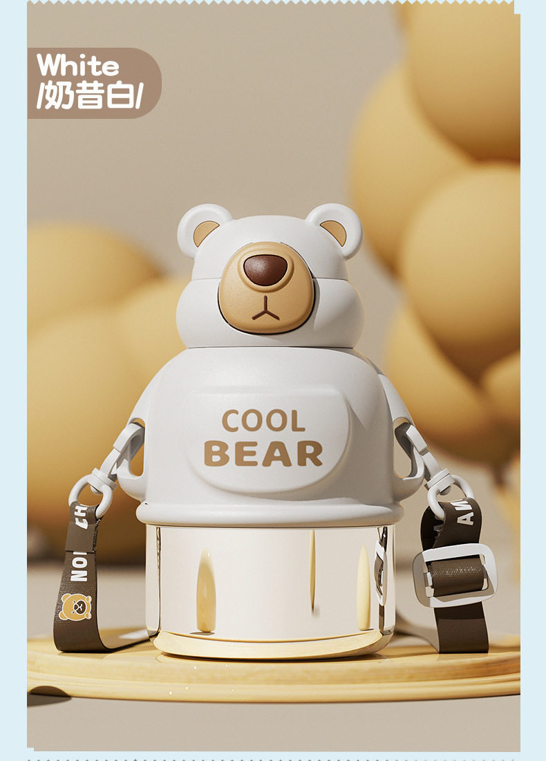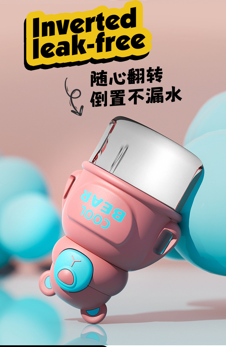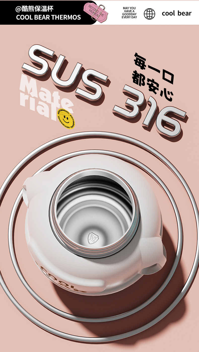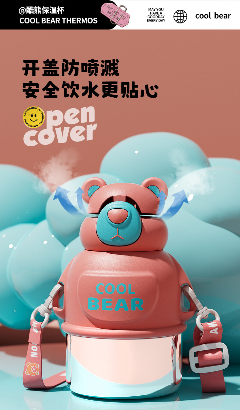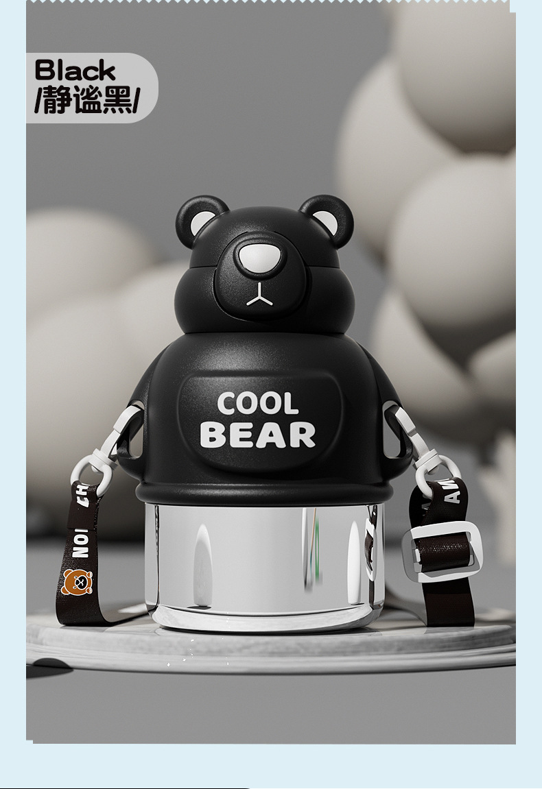 新款小熊卡通316不鏽鋼兒童保溫杯學生幼兒園可愛吸琯時尚大肚杯