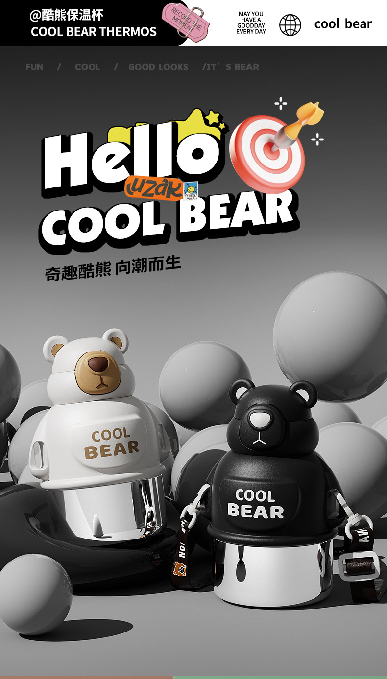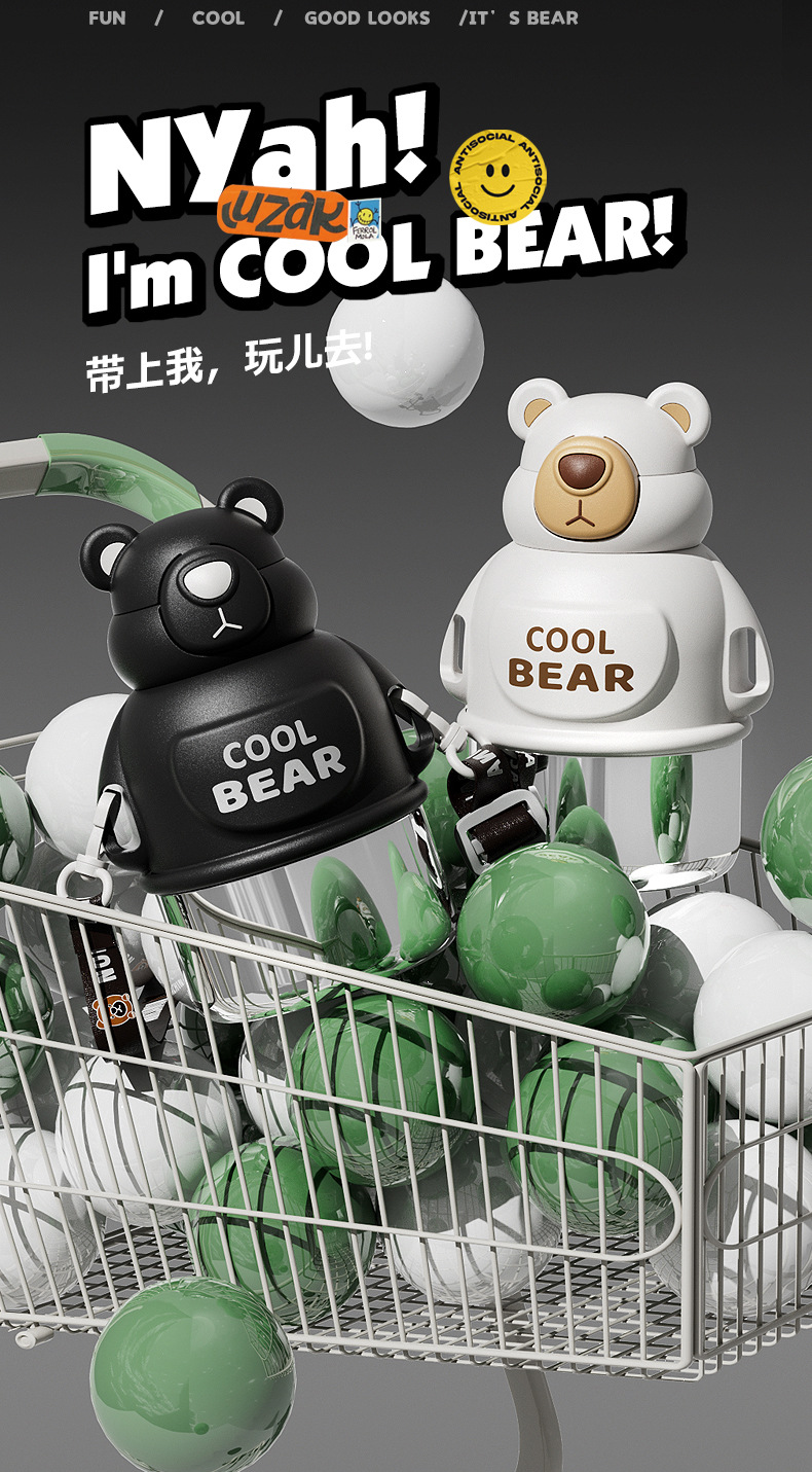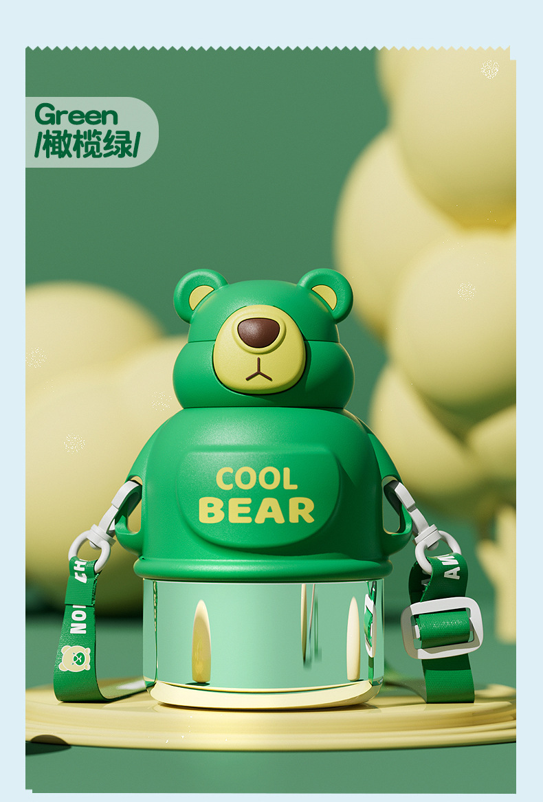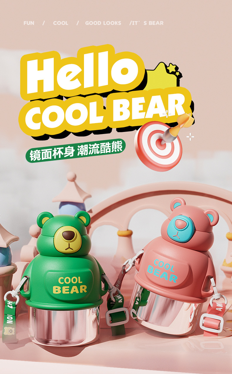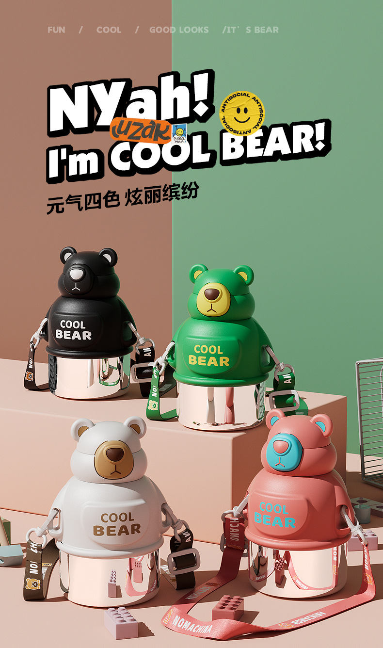 新款小熊卡通316不鏽鋼兒童保溫杯學生幼兒園可愛吸琯時尚大肚杯