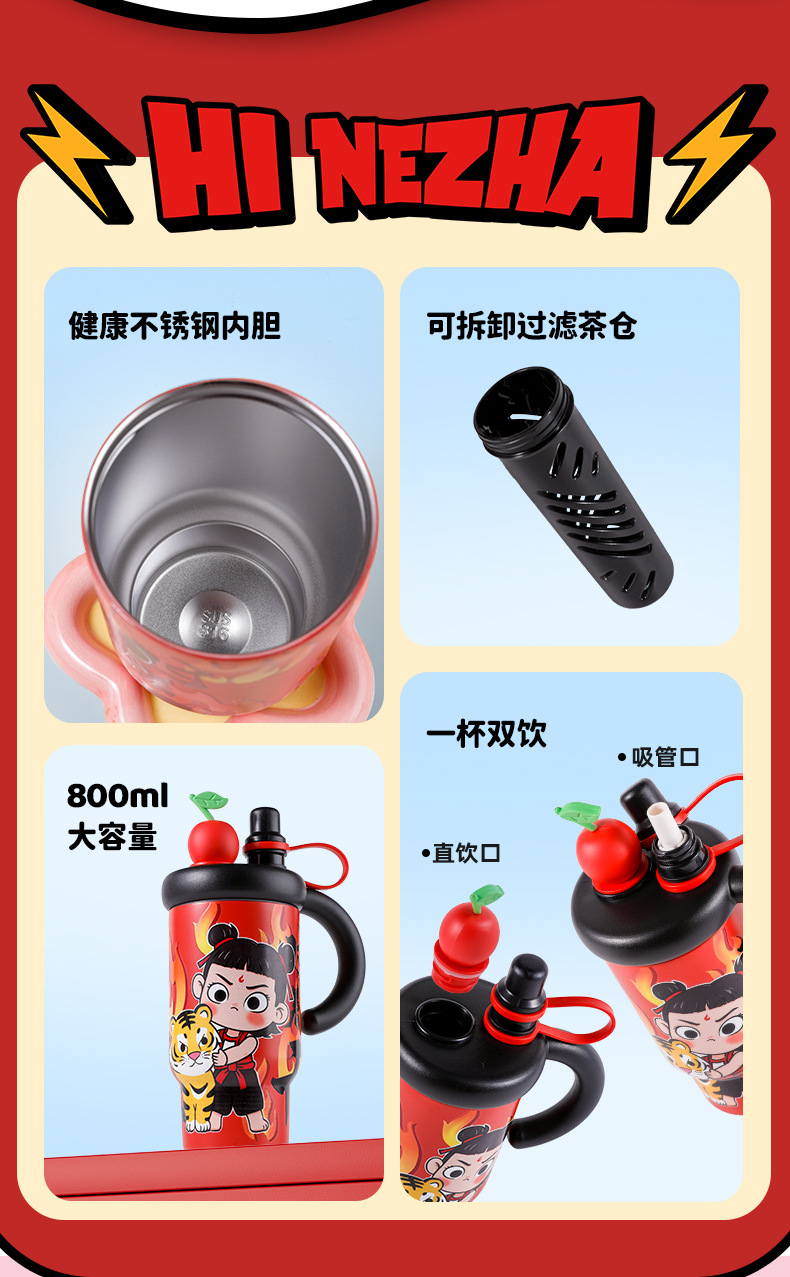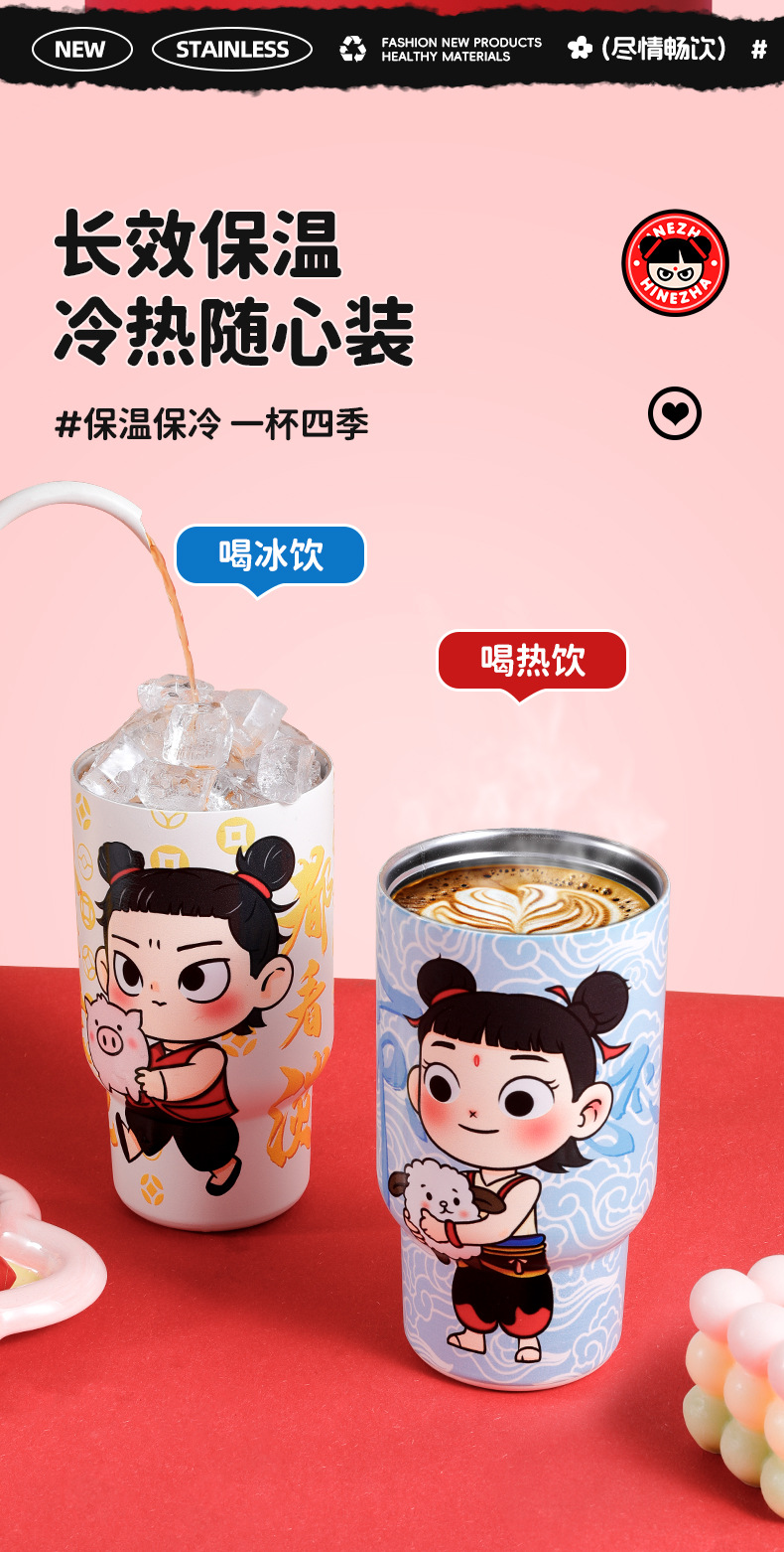 哪吒保溫杯316網紅國潮不鏽鋼冰霸杯大容量保溫水杯茶水分離杯子