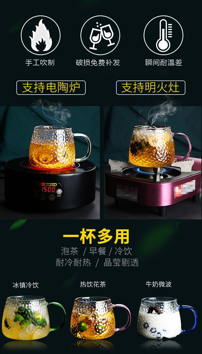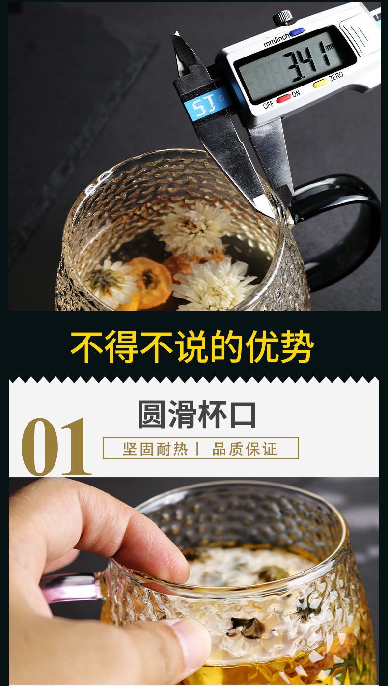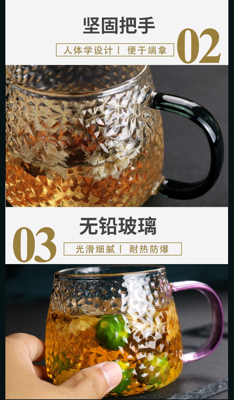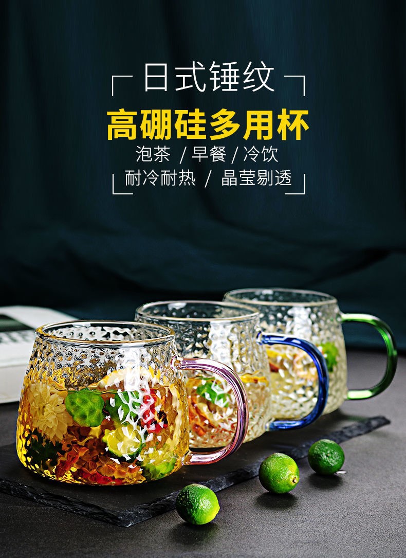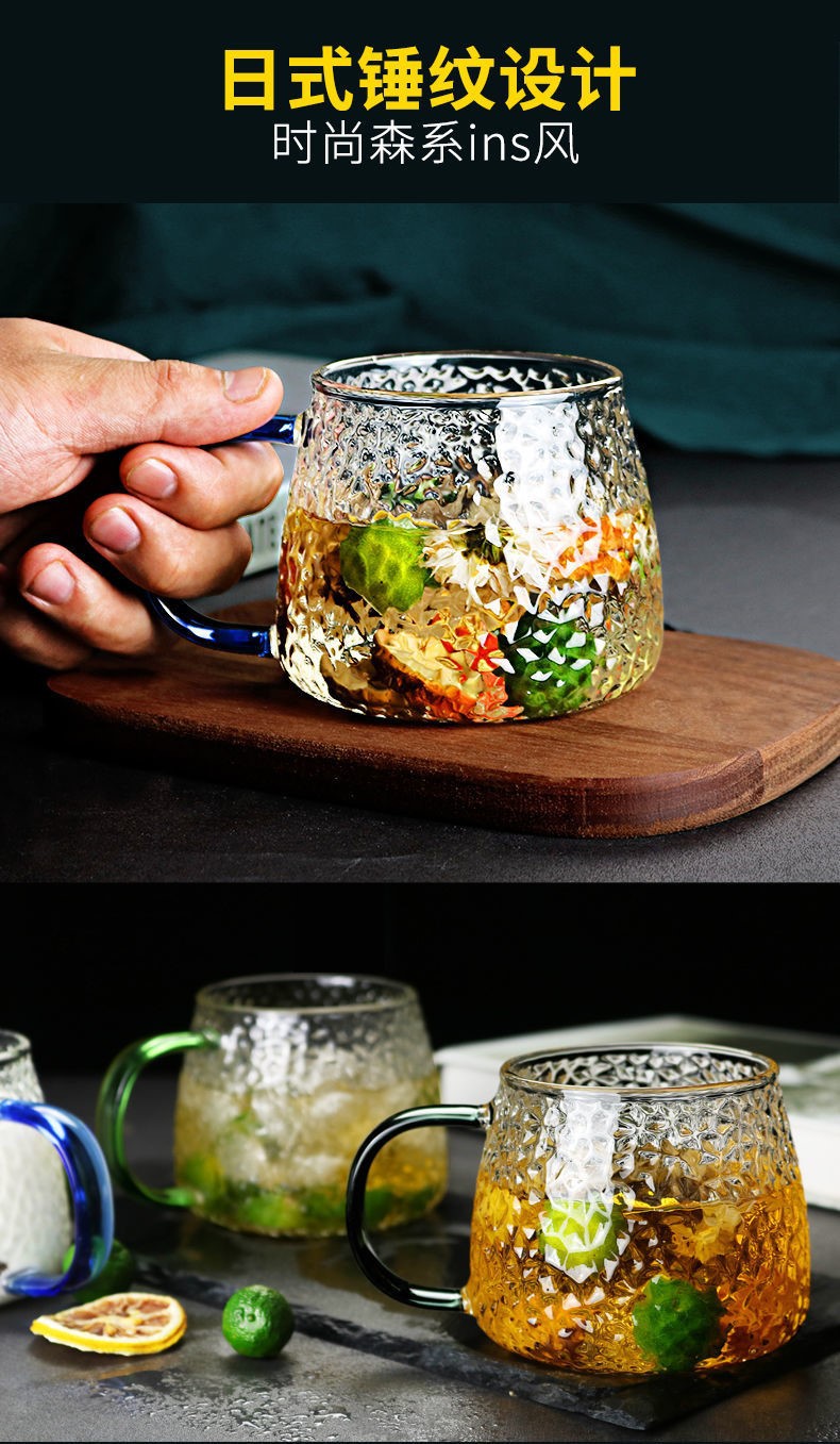 ins玻璃水杯鎚紋杯日式耐熱家用早餐牛奶杯咖啡杯菠蘿杯手作