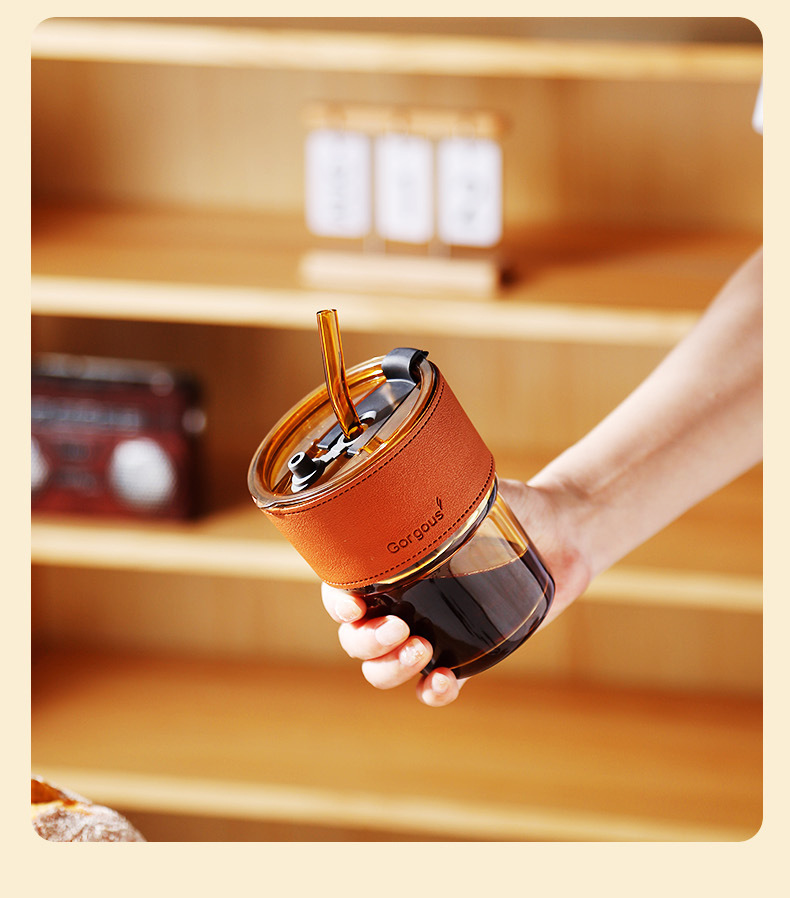 網紅玻璃竹節杯吸琯杯果汁飲料咖啡杯禮品杯玻璃水杯