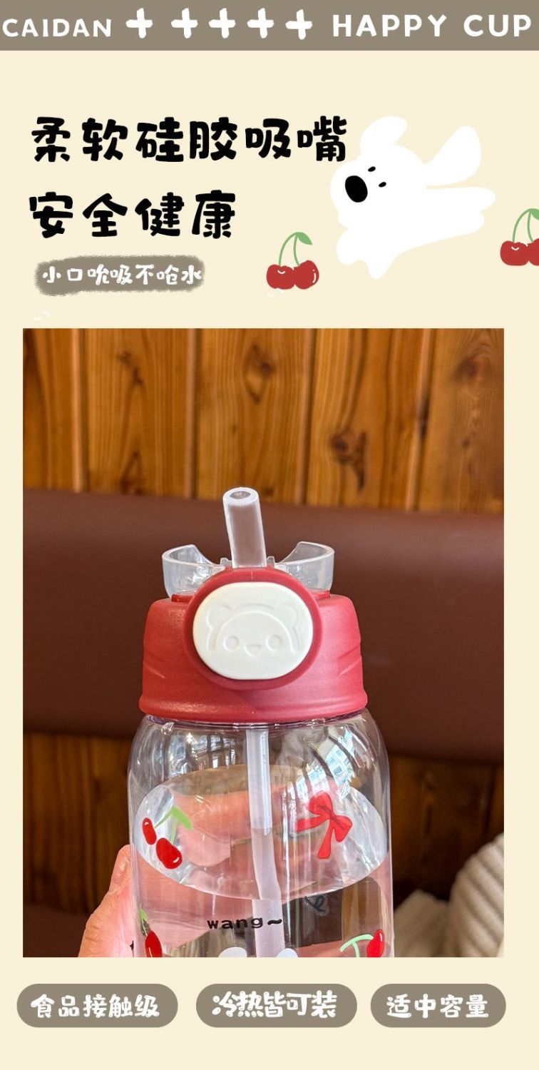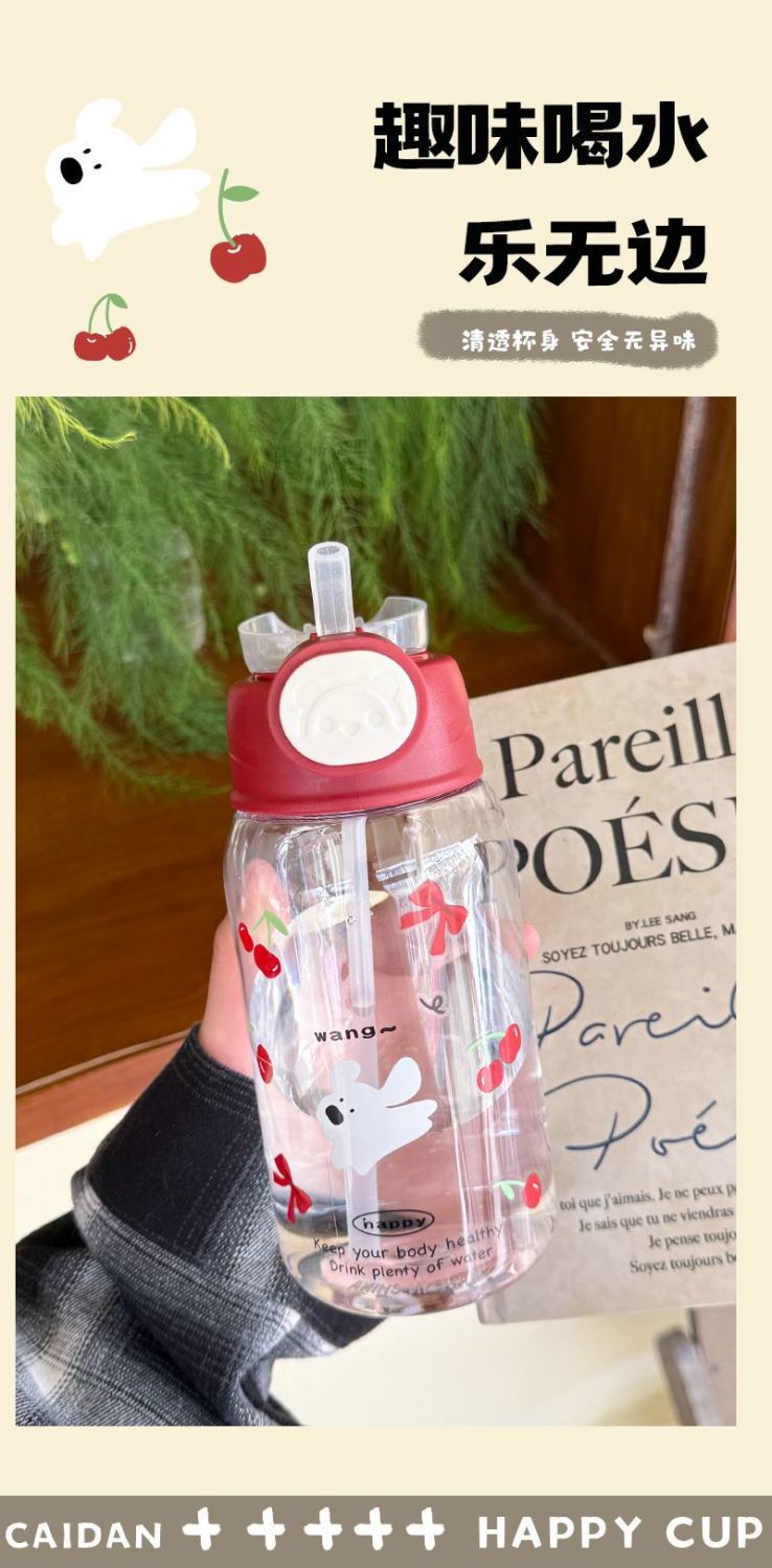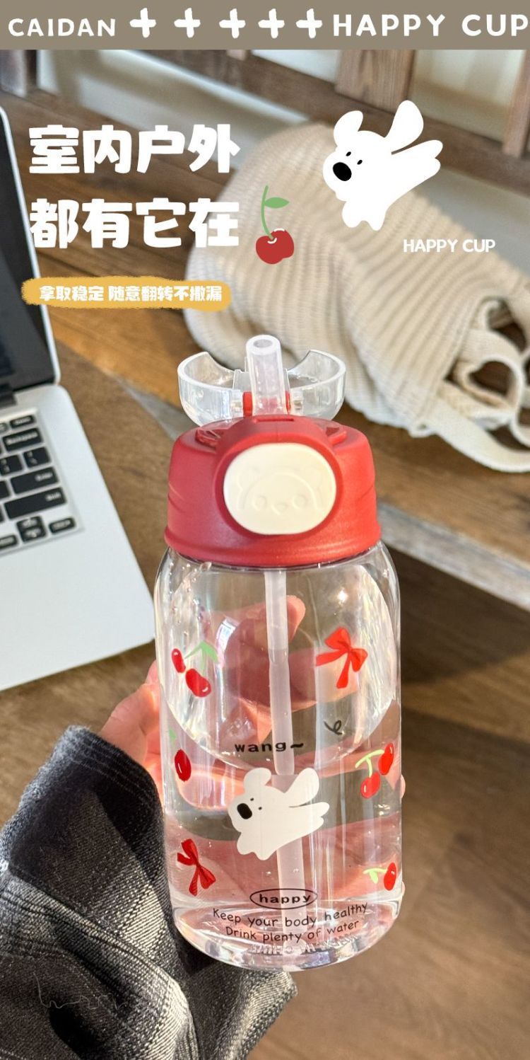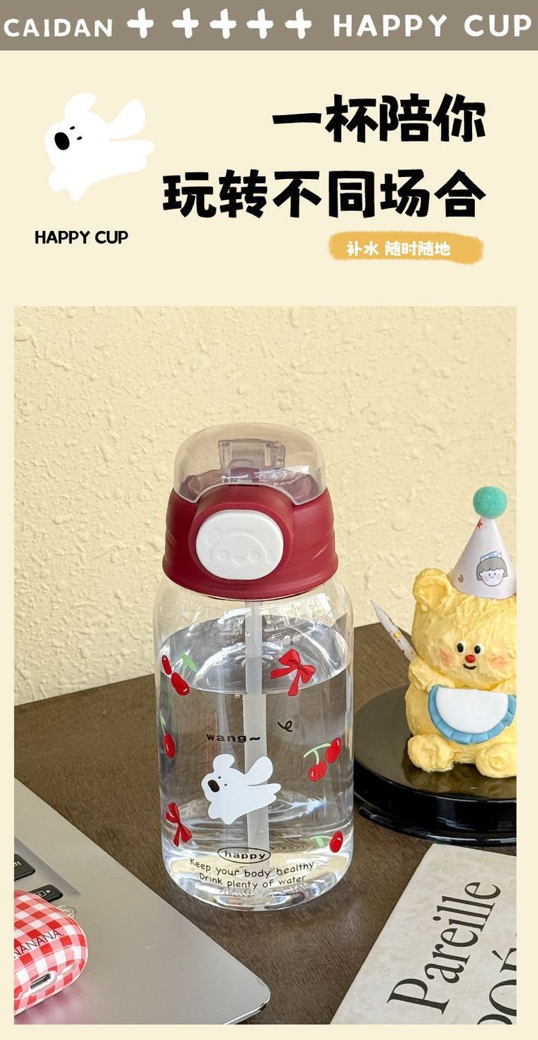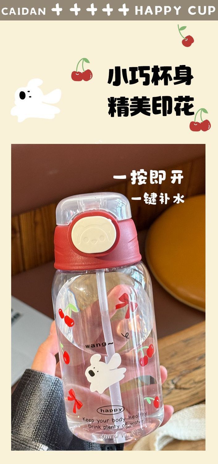 ins高顔值耐高溫塑膠杯吸琯杯女生學生可攜式水杯可愛兒童卡通杯子
