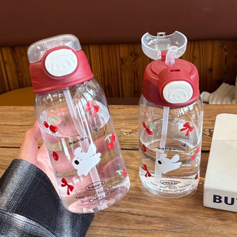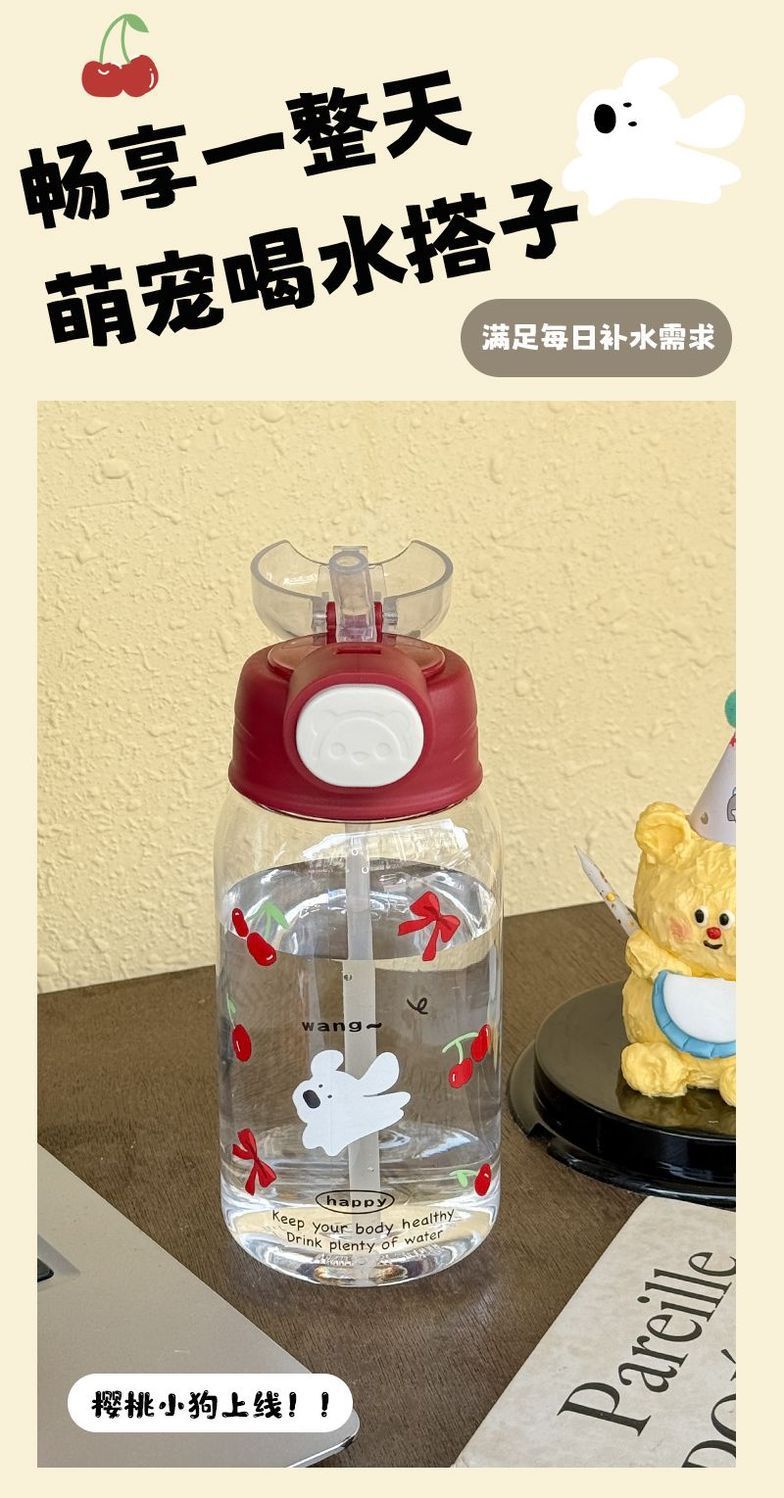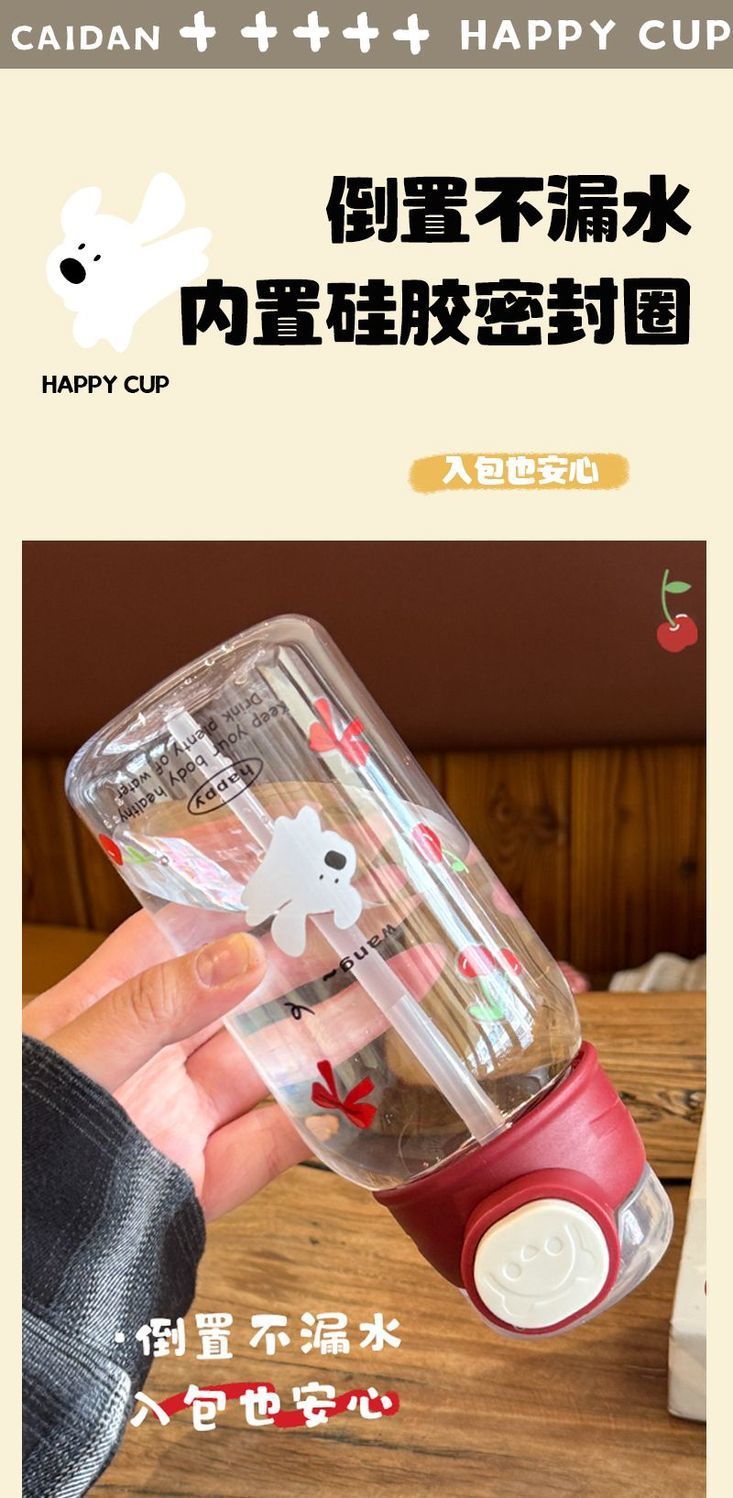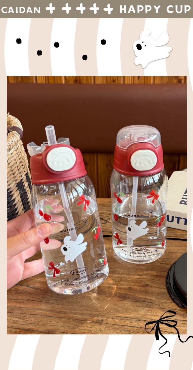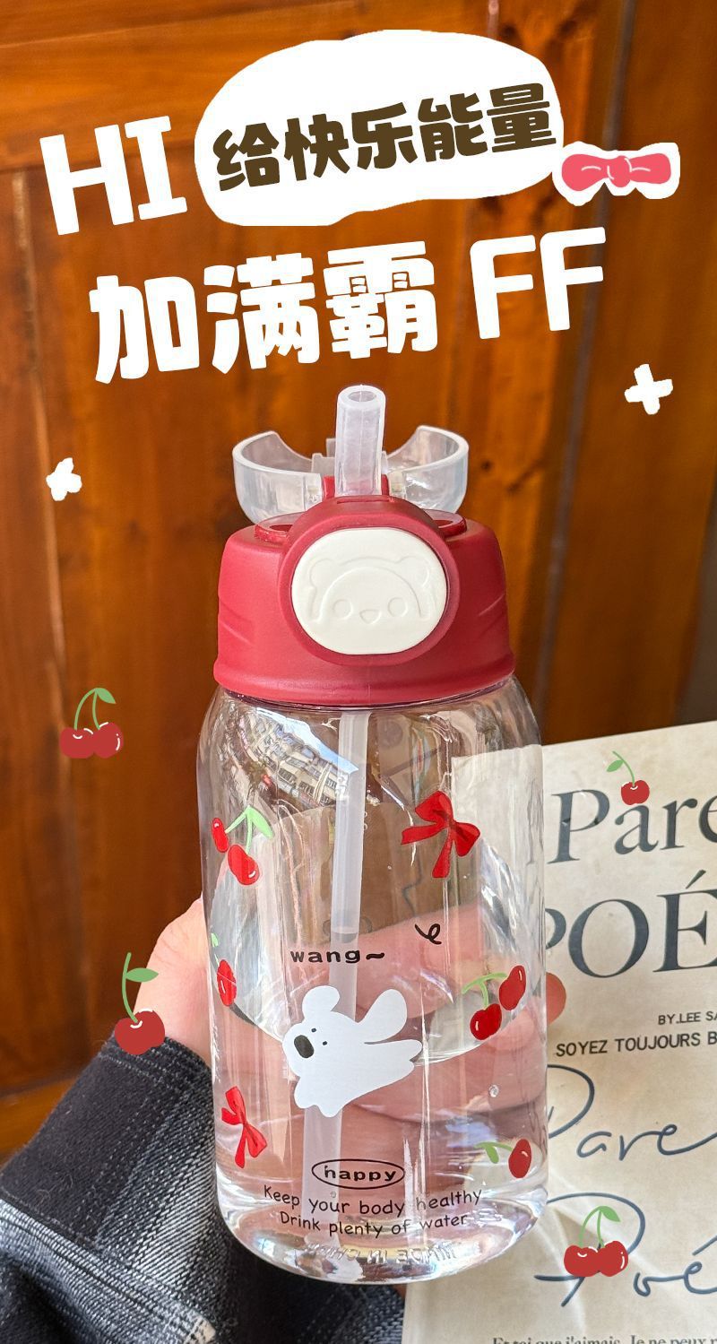 ins高顔值耐高溫塑膠杯吸琯杯女生學生可攜式水杯可愛兒童卡通杯子