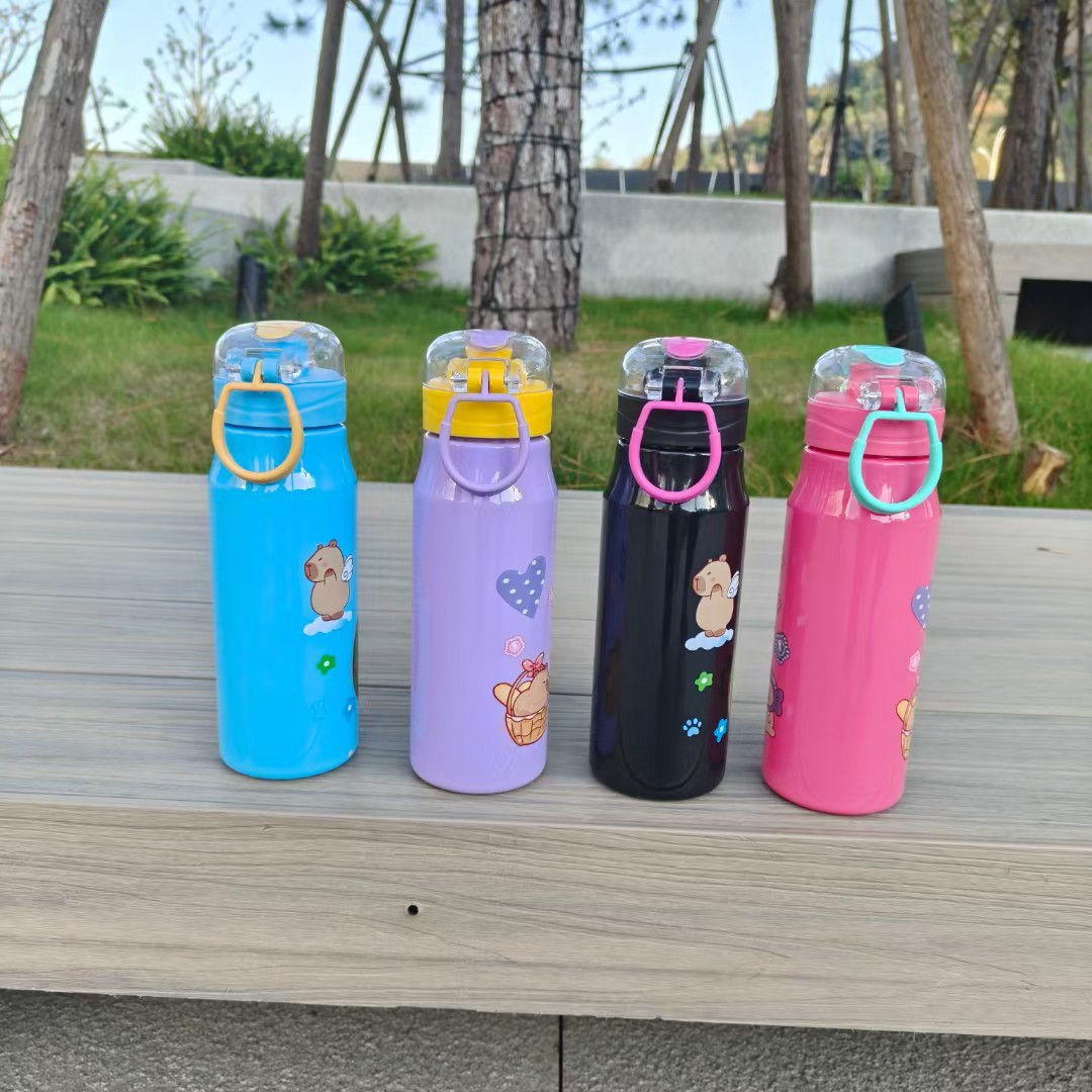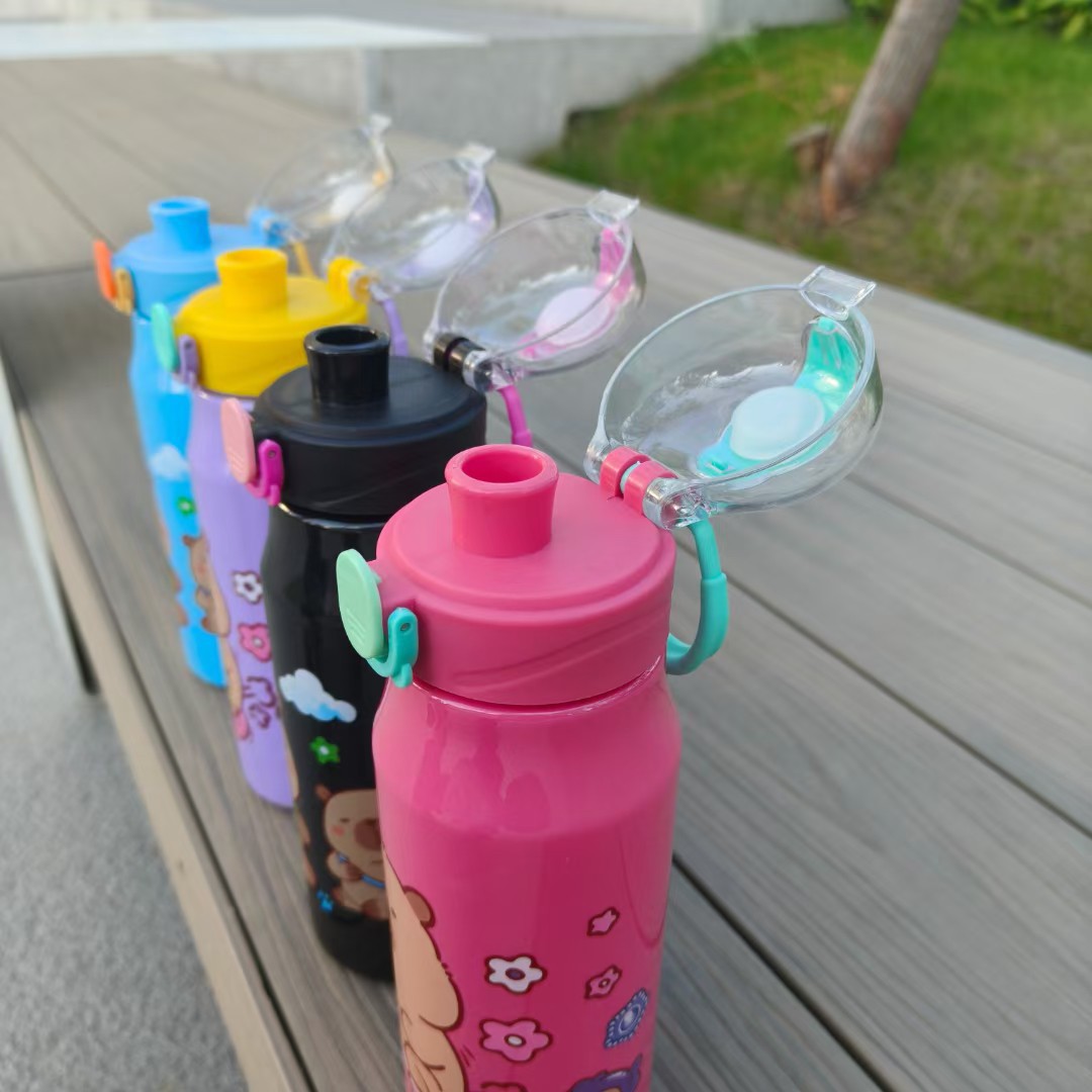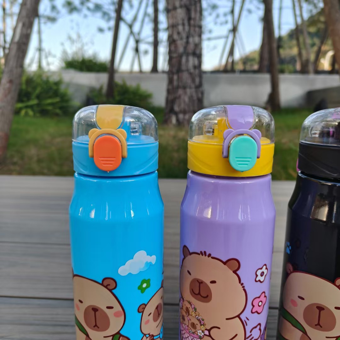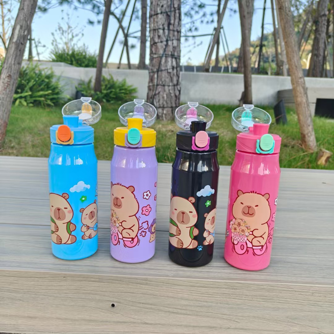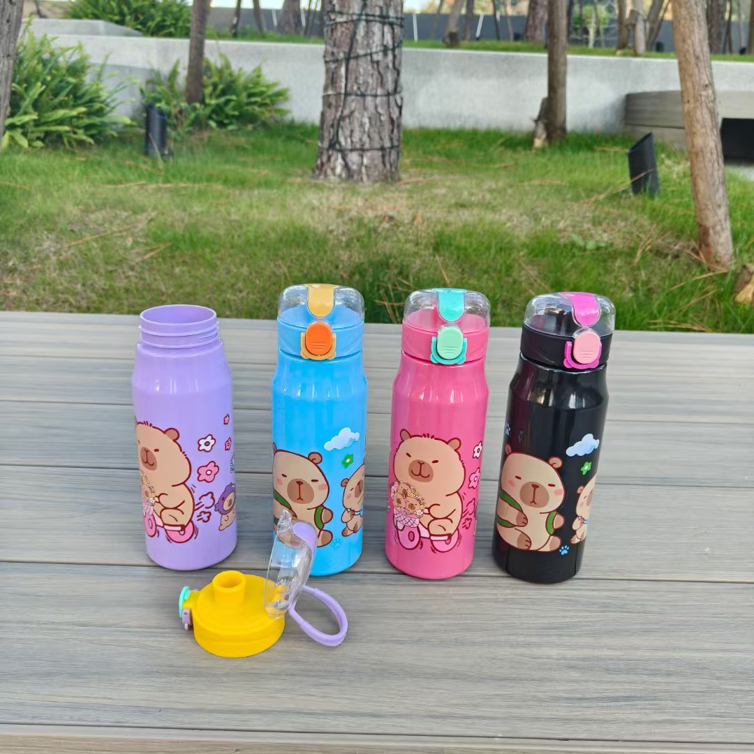 卡通卡皮巴拉實色塑膠杯彈跳鎖釦吸琯杯直身運動杯