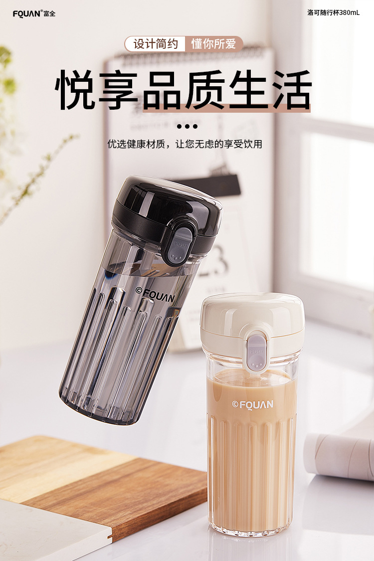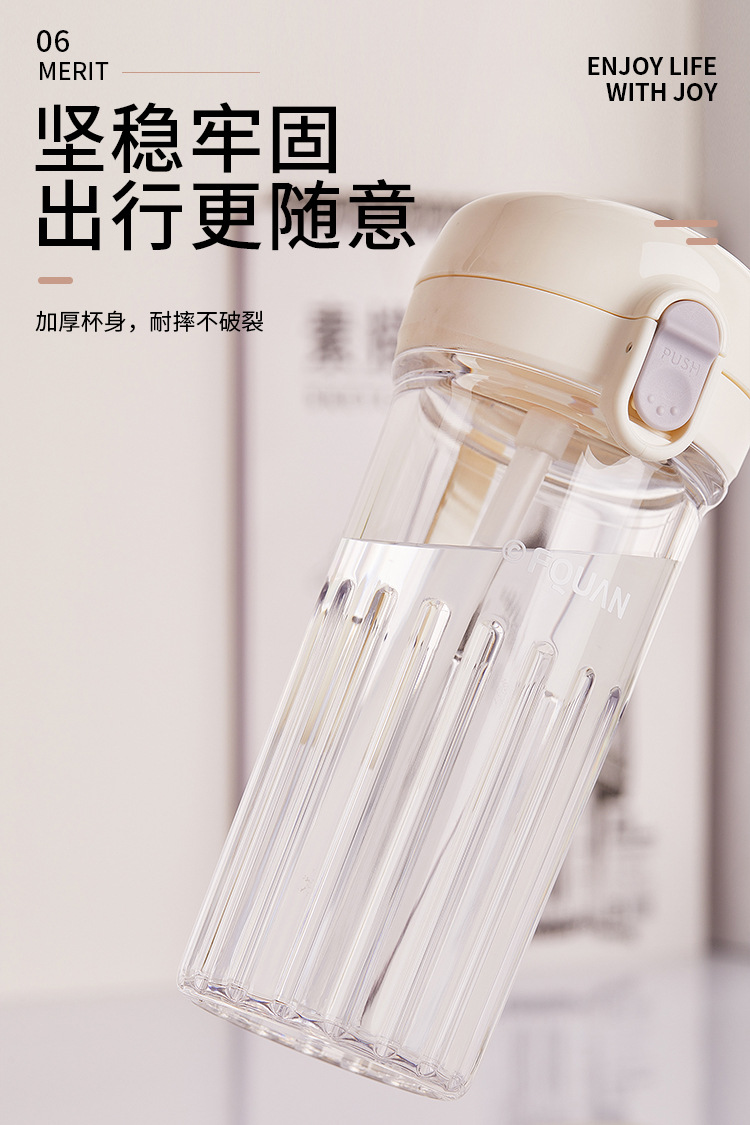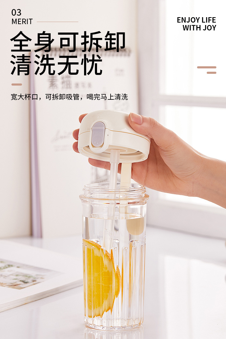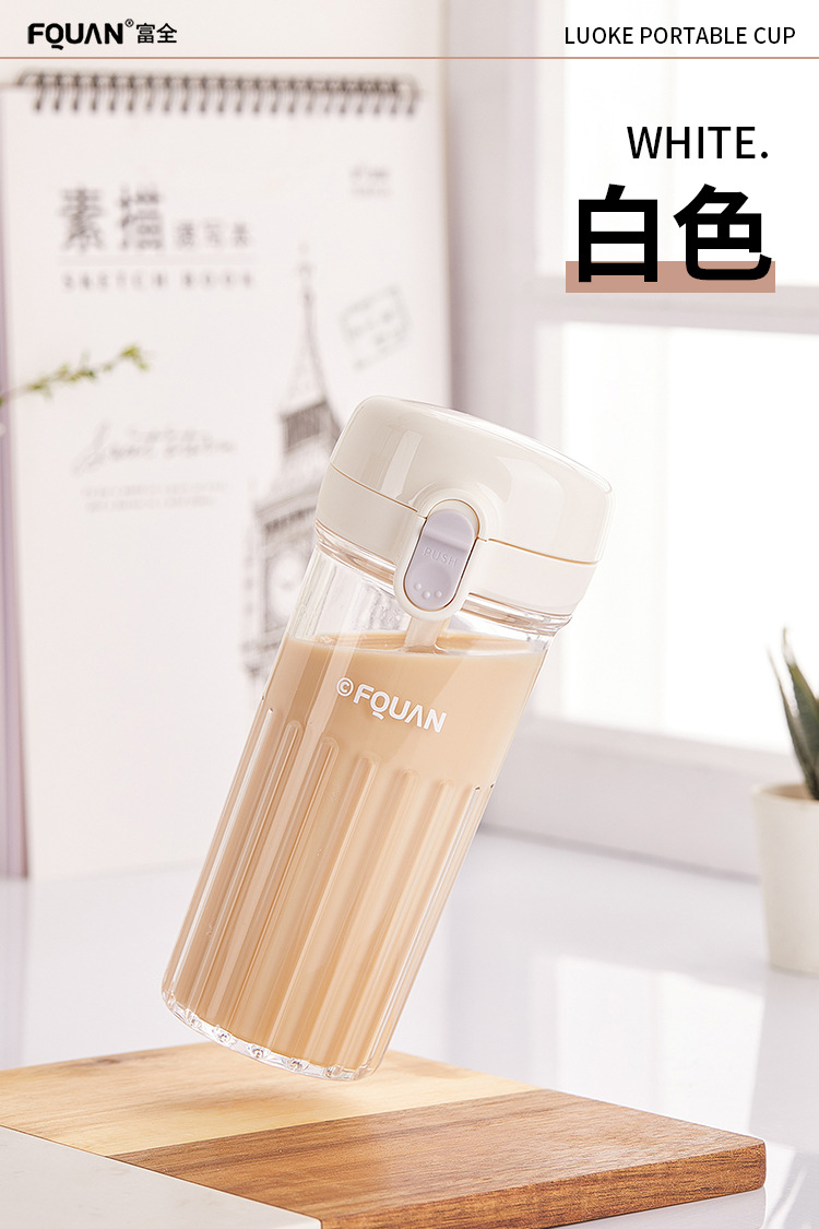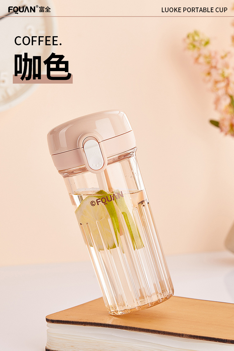 洛可彈蓋吸琯杯加厚透明塑膠杯耐高溫食品級簡約學生手提隨手杯
