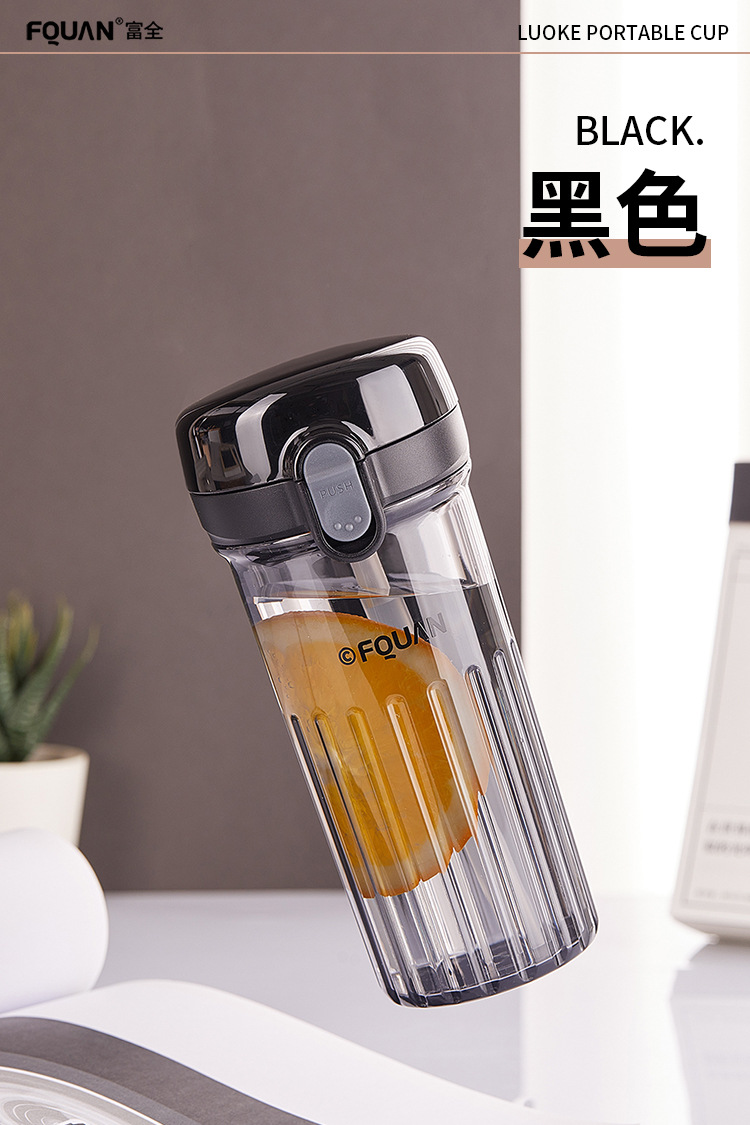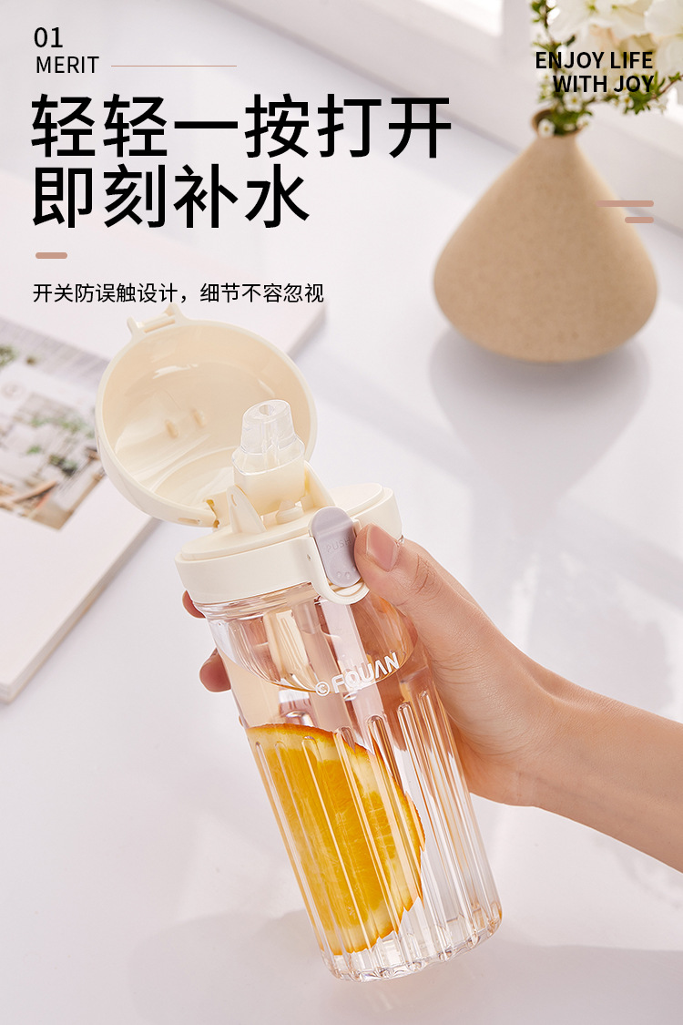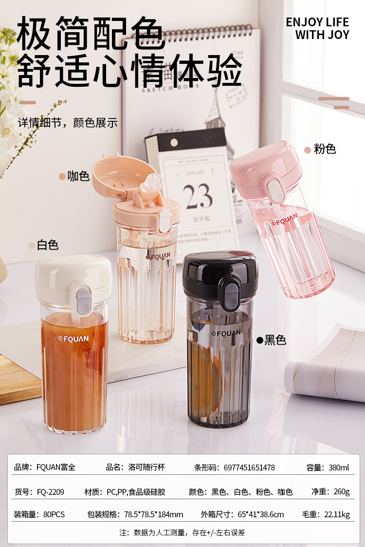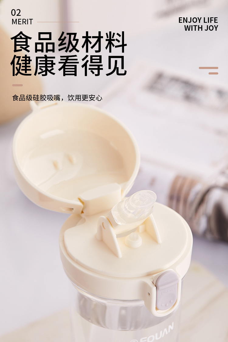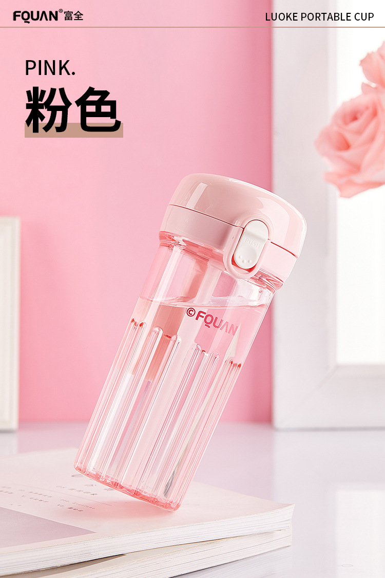 洛可彈蓋吸琯杯加厚透明塑膠杯耐高溫食品級簡約學生手提隨手杯