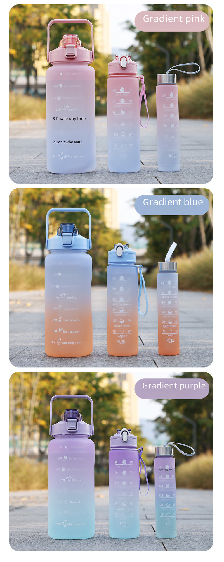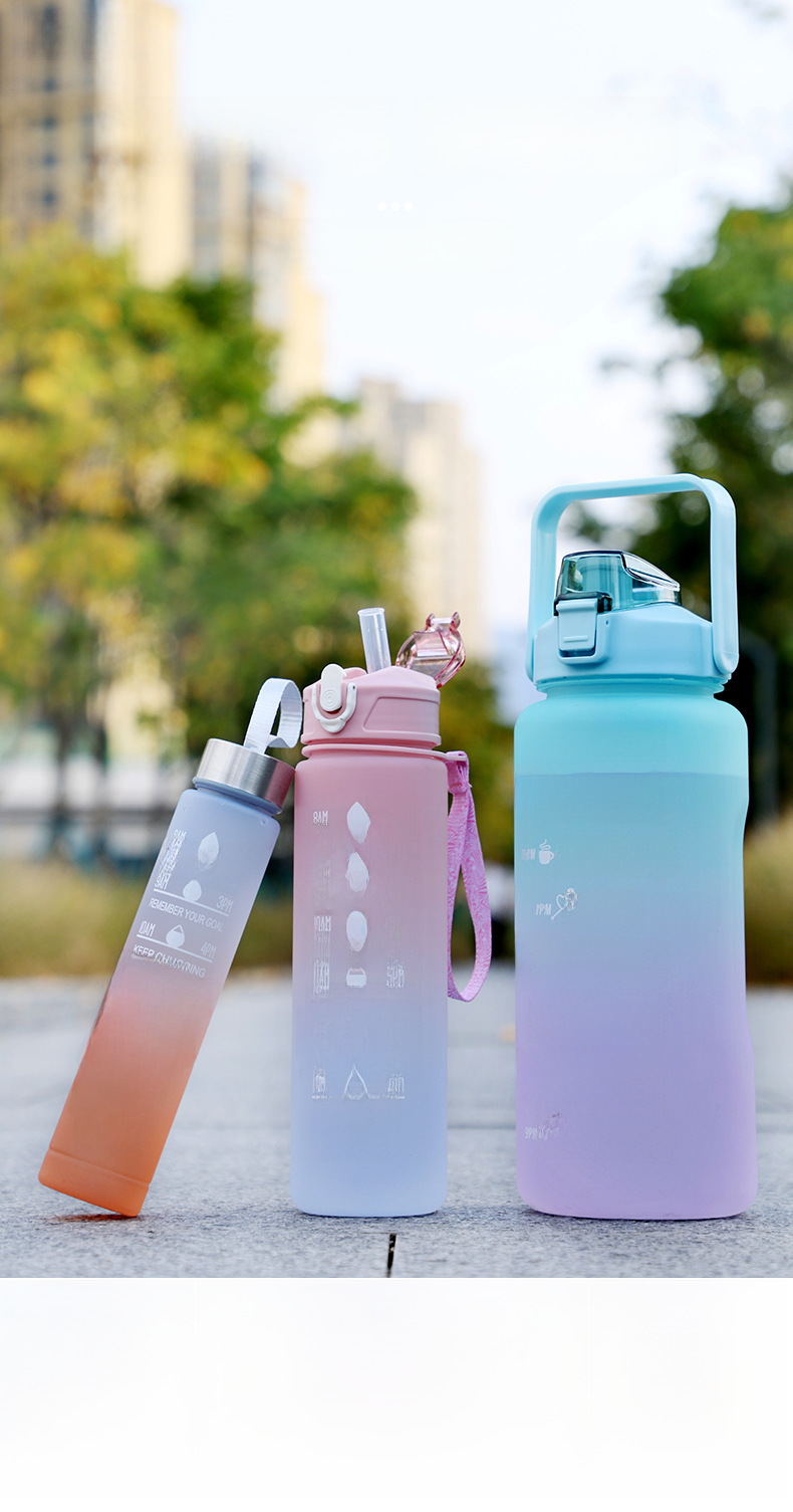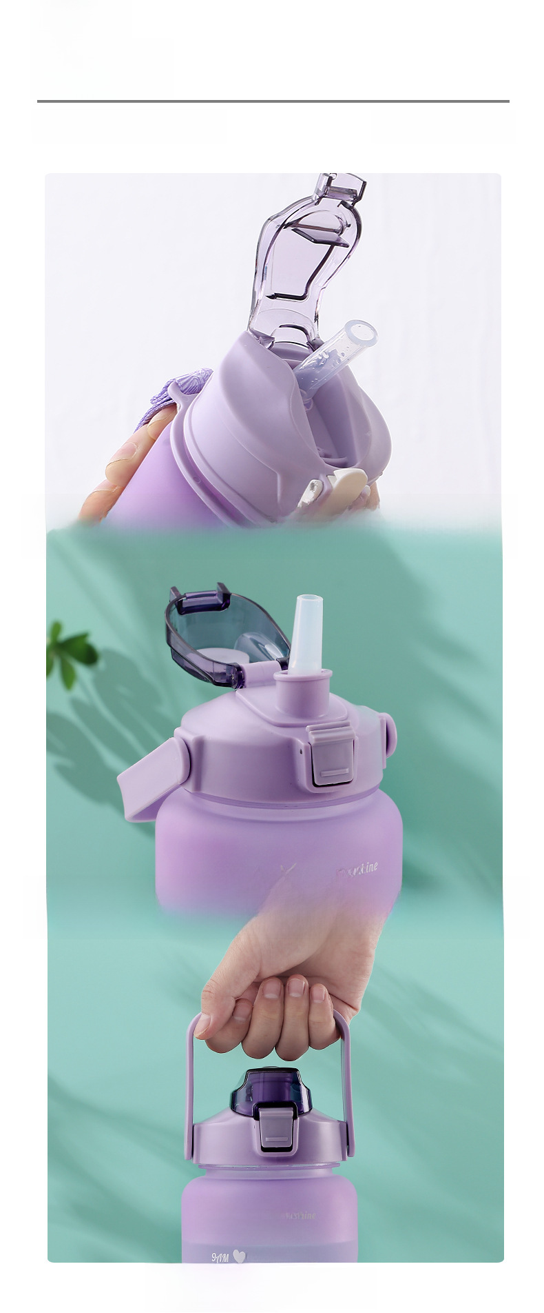 大容量可攜式磨砂刻度塑膠杯個性3套吸琯杯女生健身運動手提喝水壺
