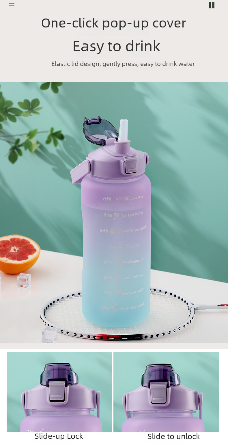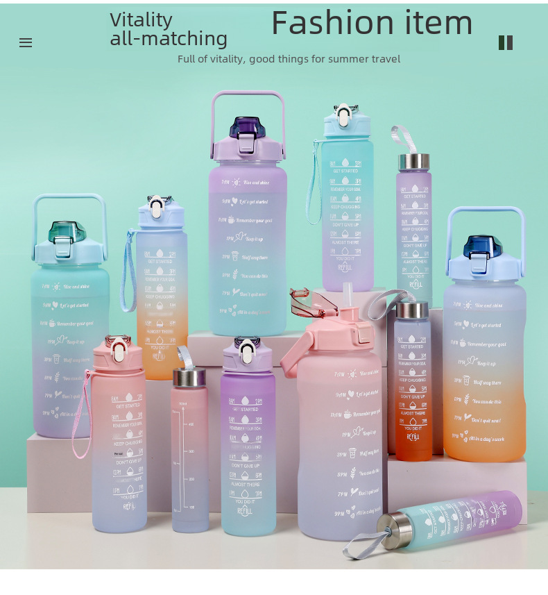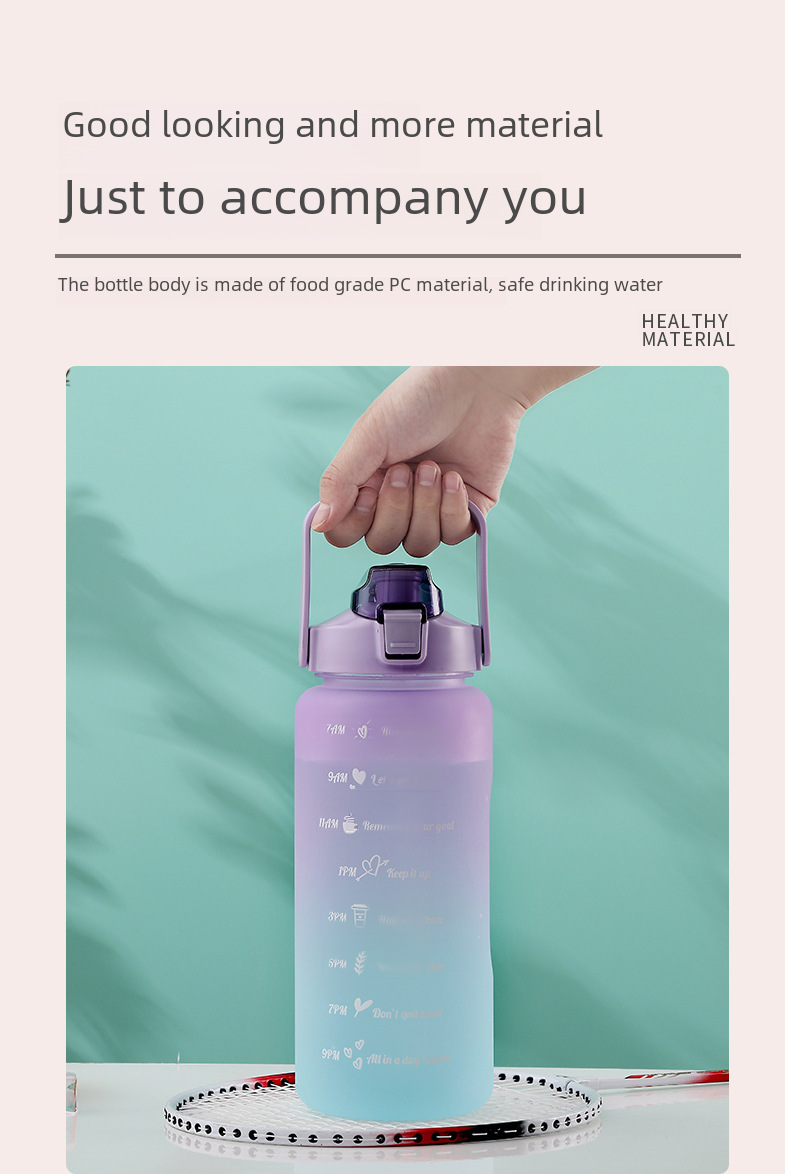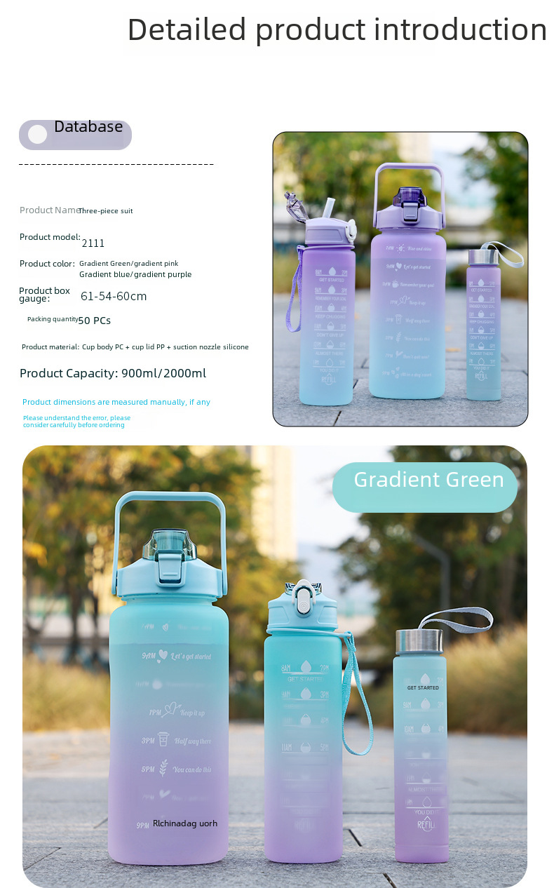 大容量可攜式磨砂刻度塑膠杯個性3套吸琯杯女生健身運動手提喝水壺