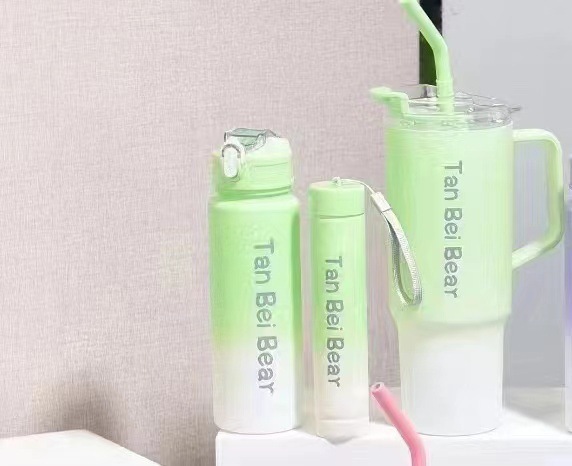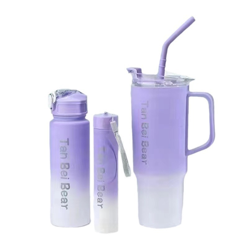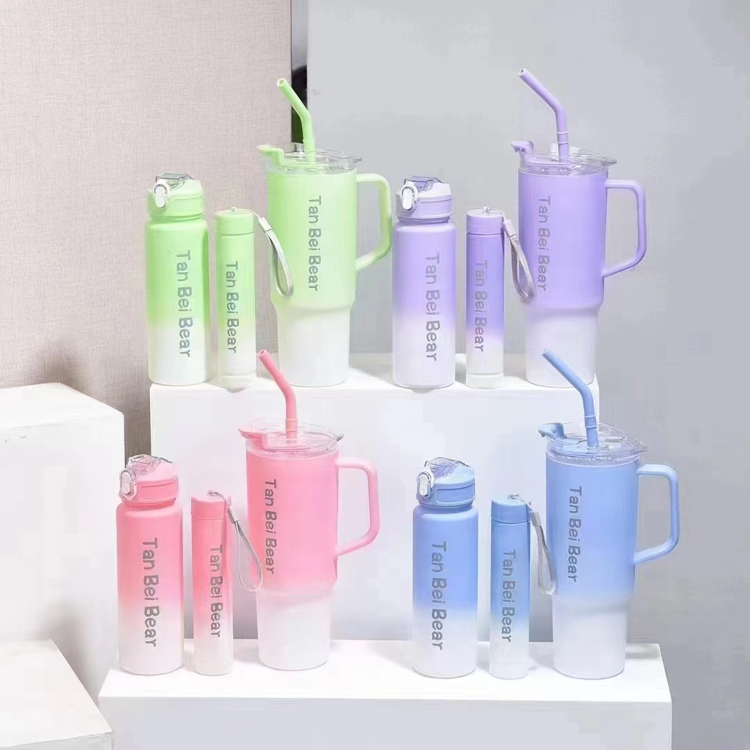 新款40oz塑膠杯可攜式手提杯吸琯杯三件套高顔值漸變色水杯