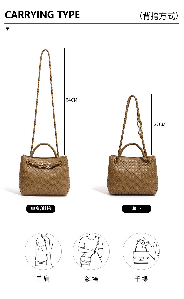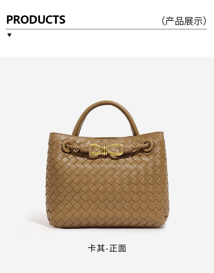 大容量手提包2024新款女編織包純手工編織百搭斜後背包金屬繩釦