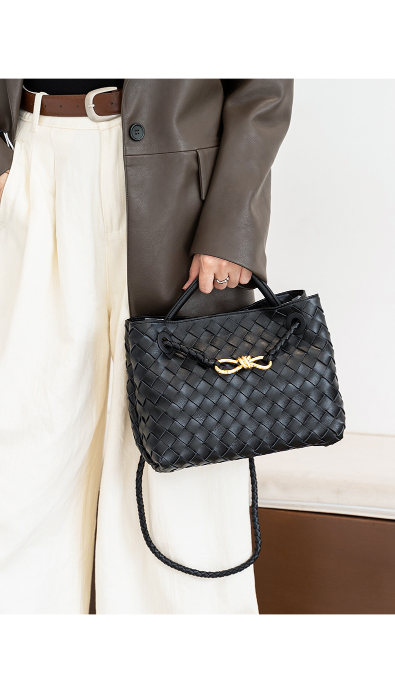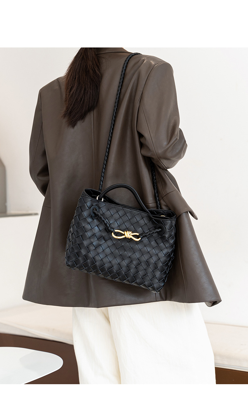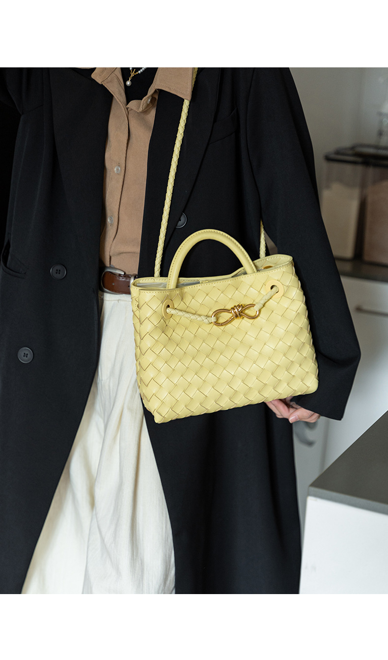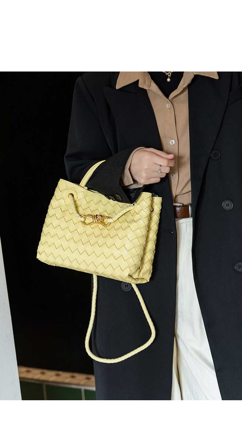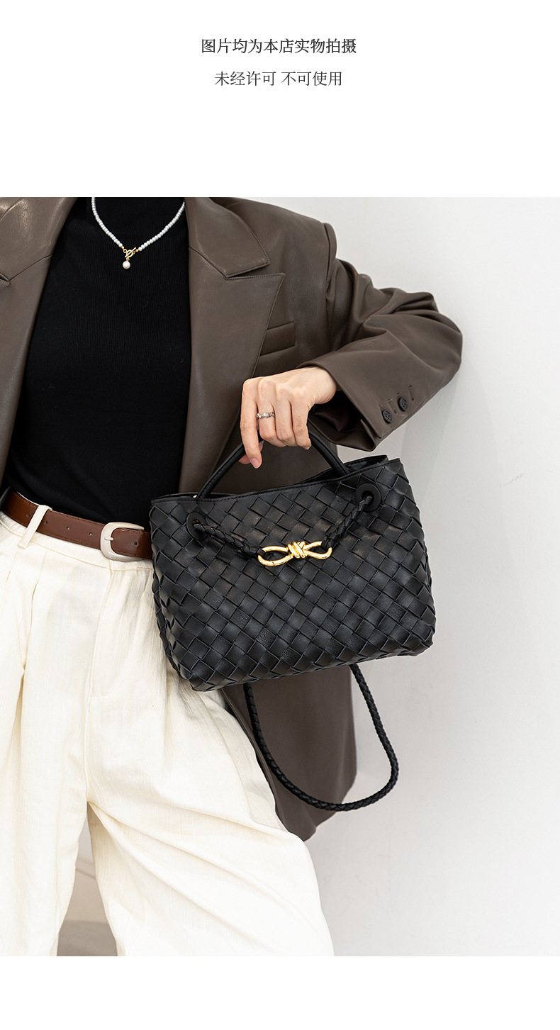 風潮新款編織女包手工雙層編織製作女士手提斜後背包質感編織包