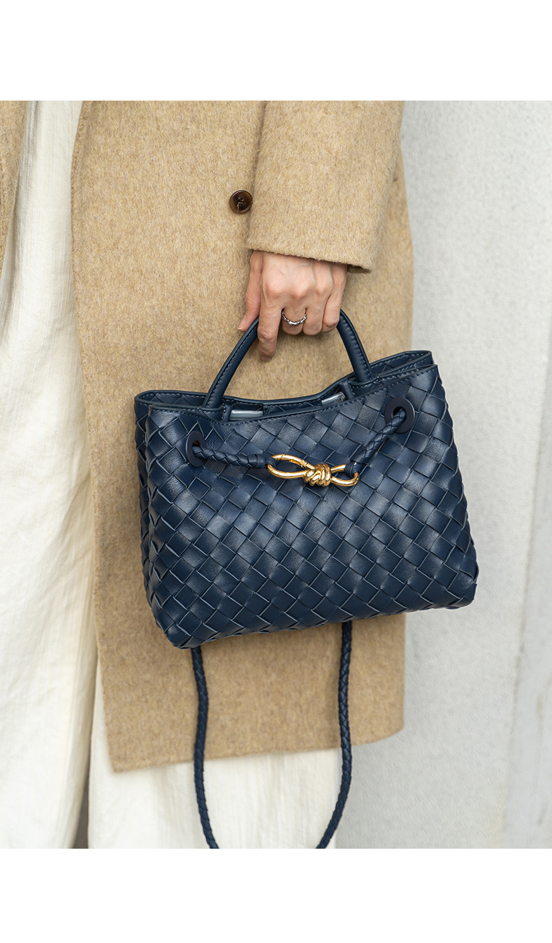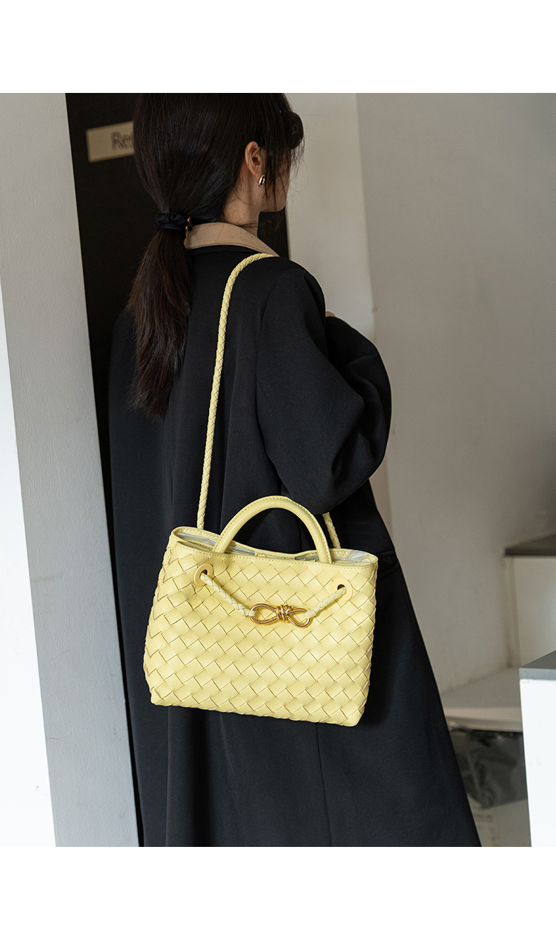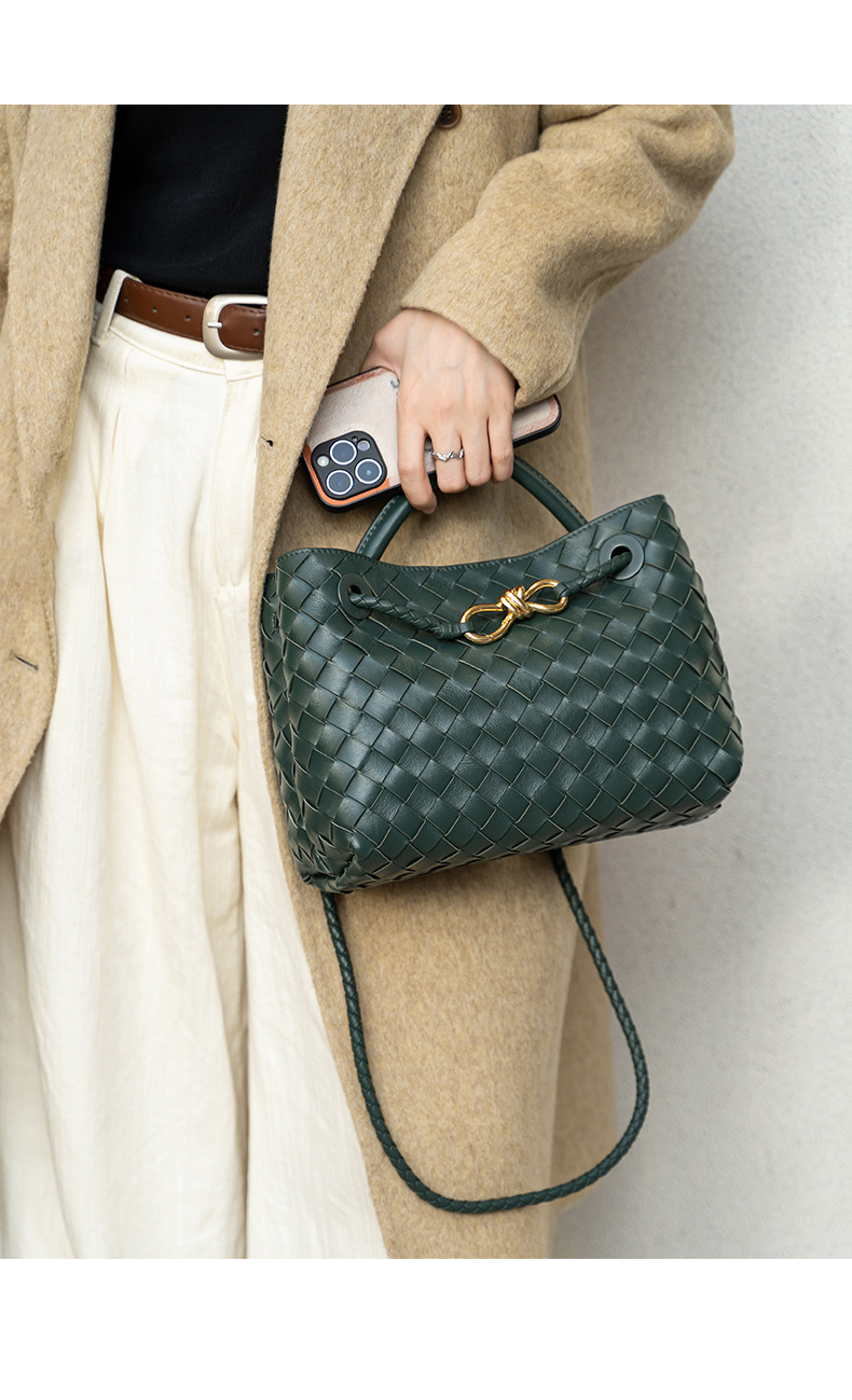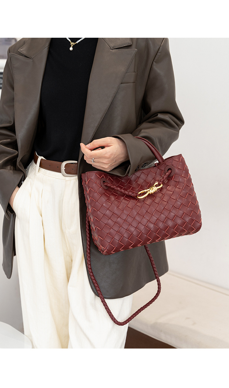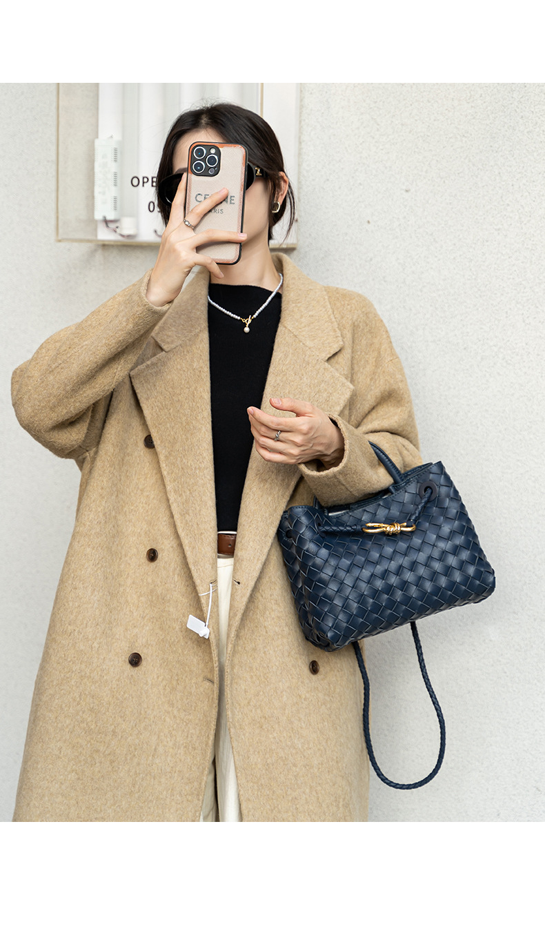 風潮新款編織女包手工雙層編織製作女士手提斜後背包質感編織包